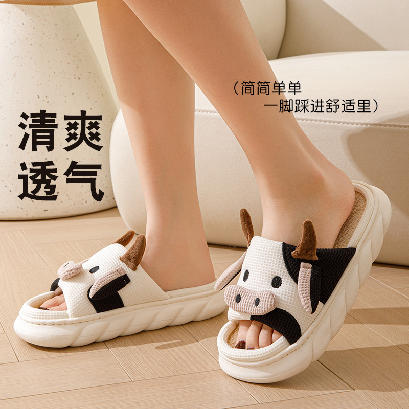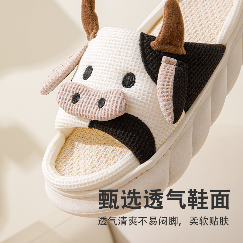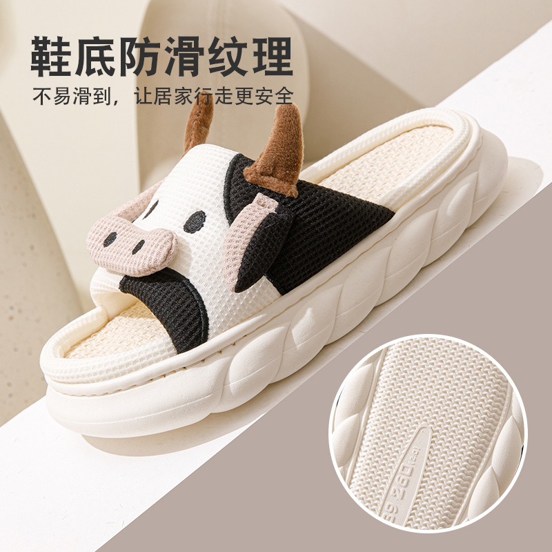 外穿亚麻拖鞋女士夏季软底踩屎感室内家居可爱家用防滑静音凉拖男