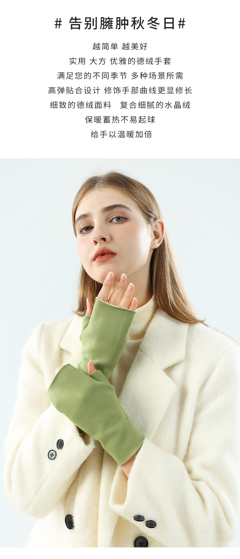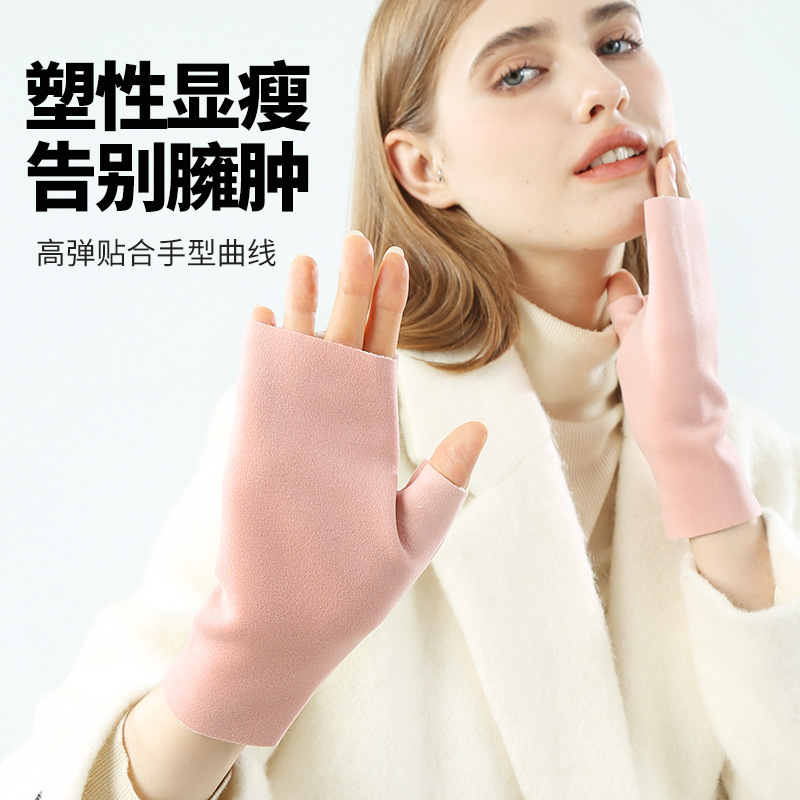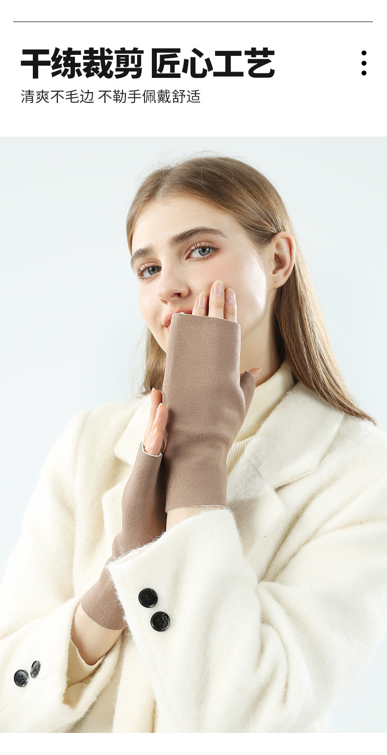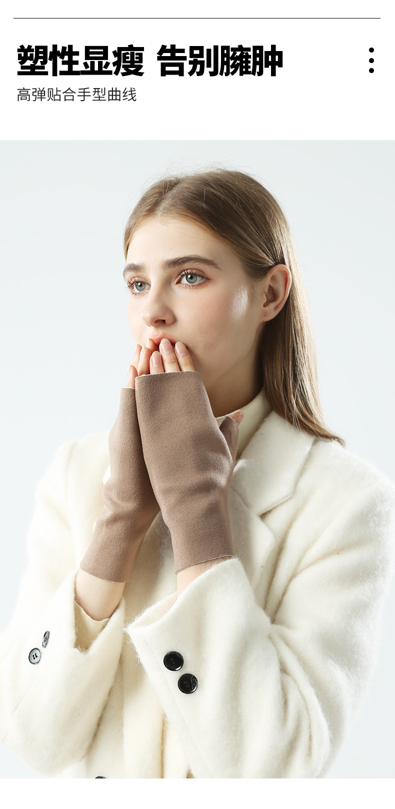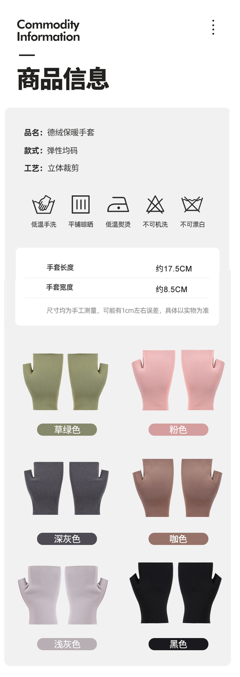 半指手套女冬季露指德绒薄款学生写字办公打字漏五指加绒保暖手套