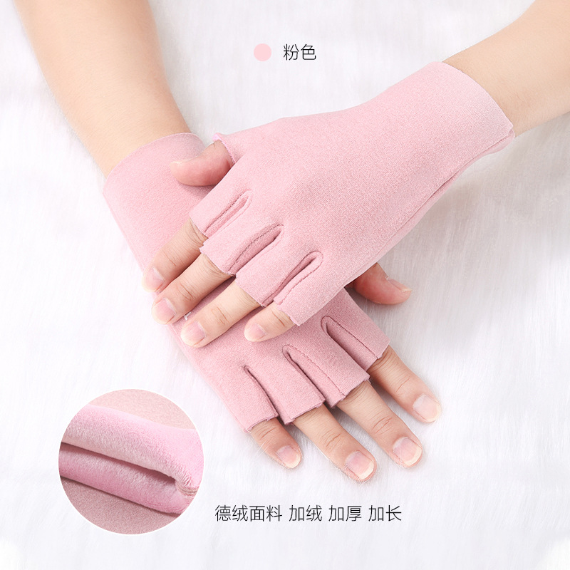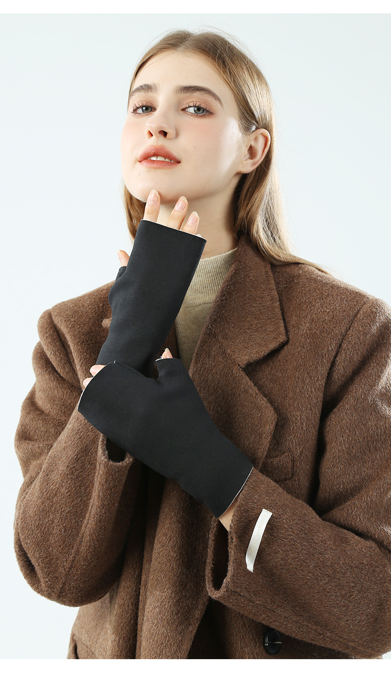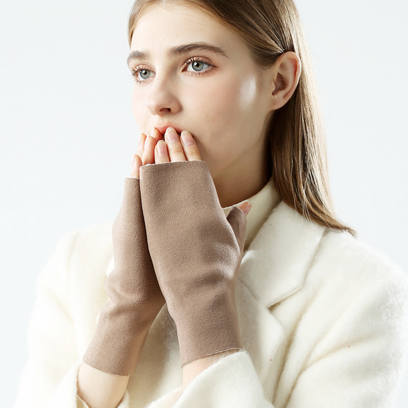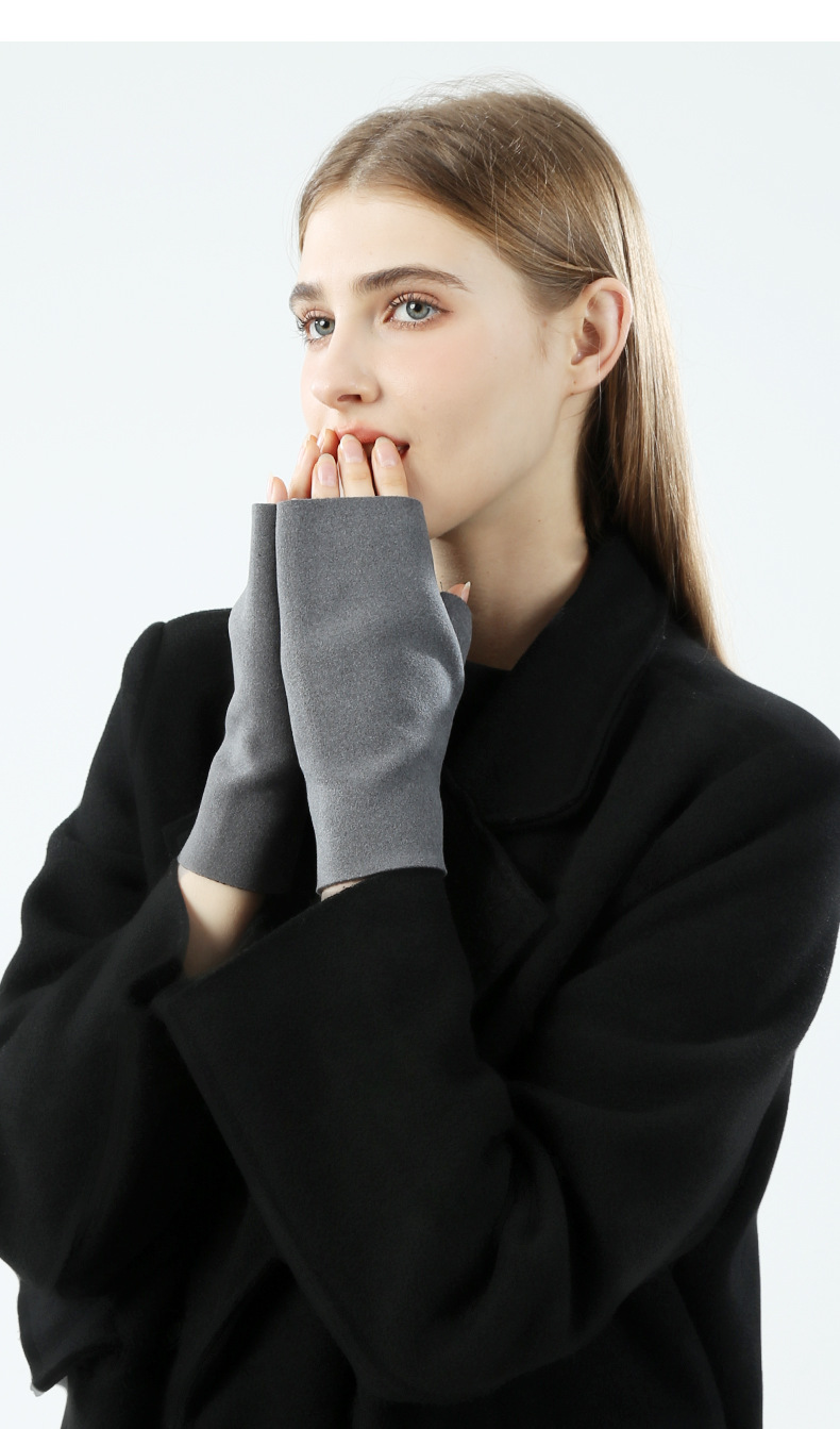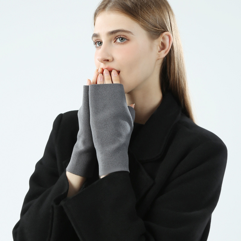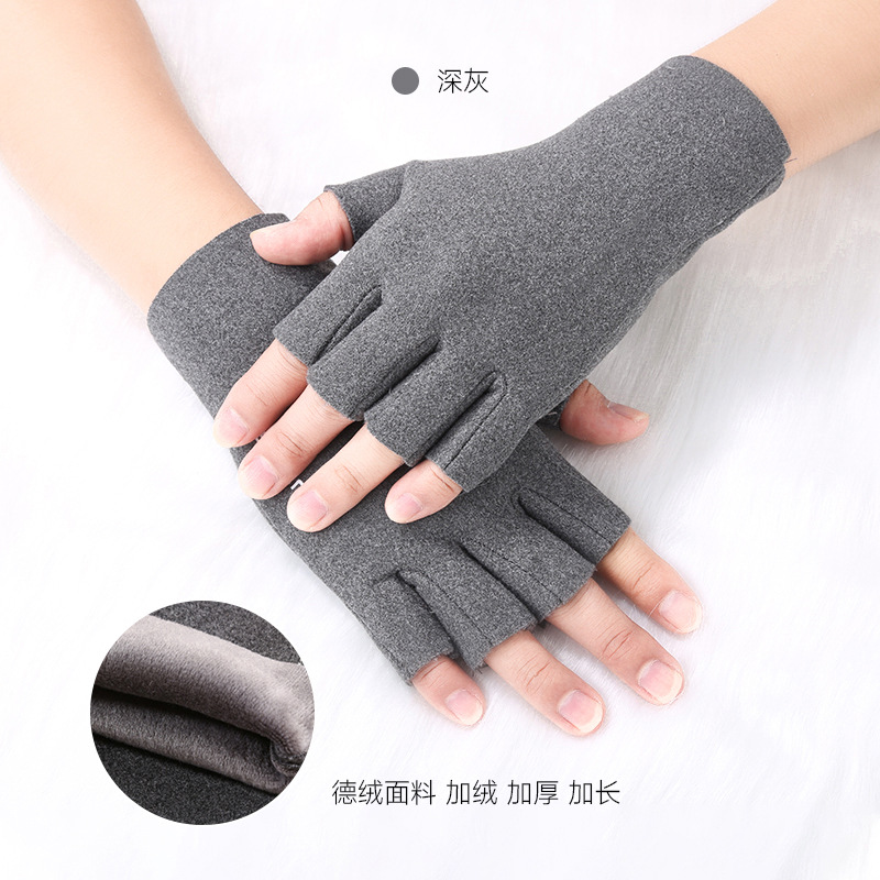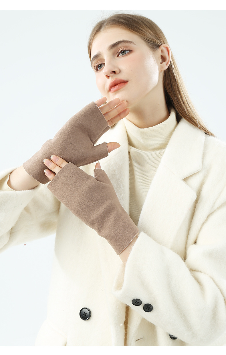 半指手套女冬季露指德绒薄款学生写字办公打字漏五指加绒保暖手套