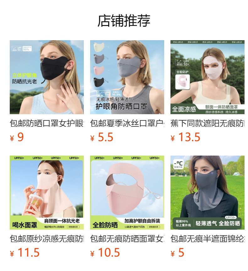 包邮 新款无痕防晒面罩 脸基尼 口罩防晒女防紫外线夏季遮阳脸罩