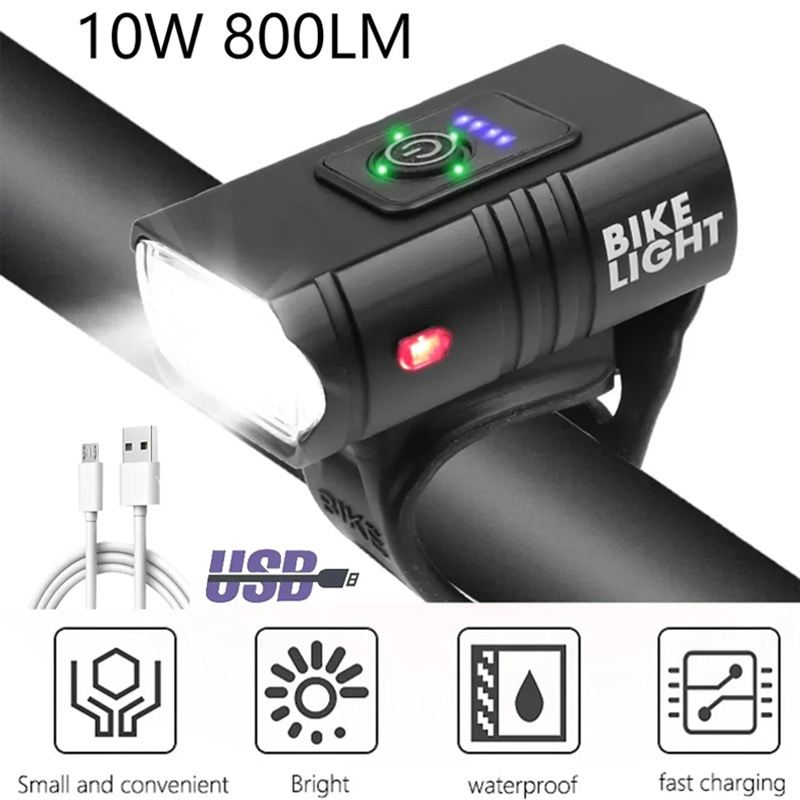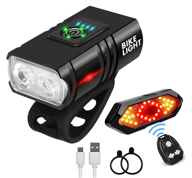 亚马逊自行车前灯T6带电量显示跨境车灯近远光山地自行车充电前灯