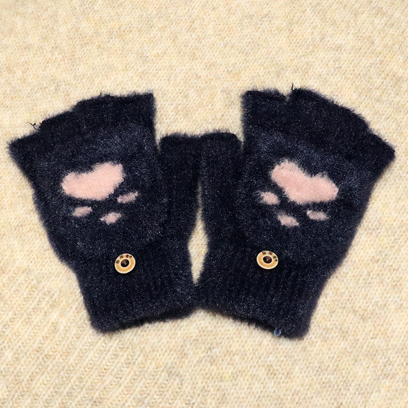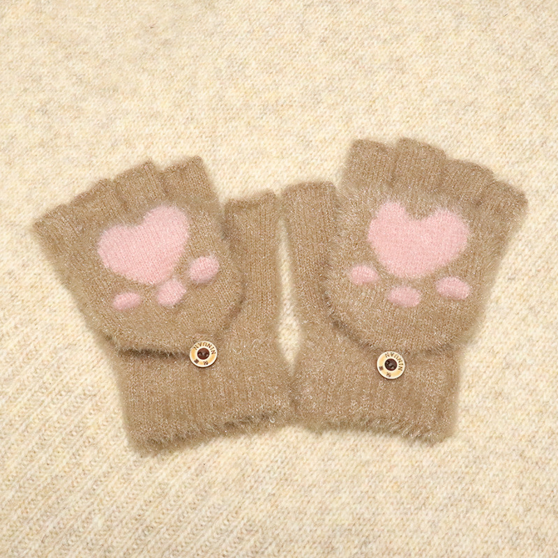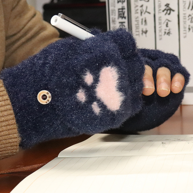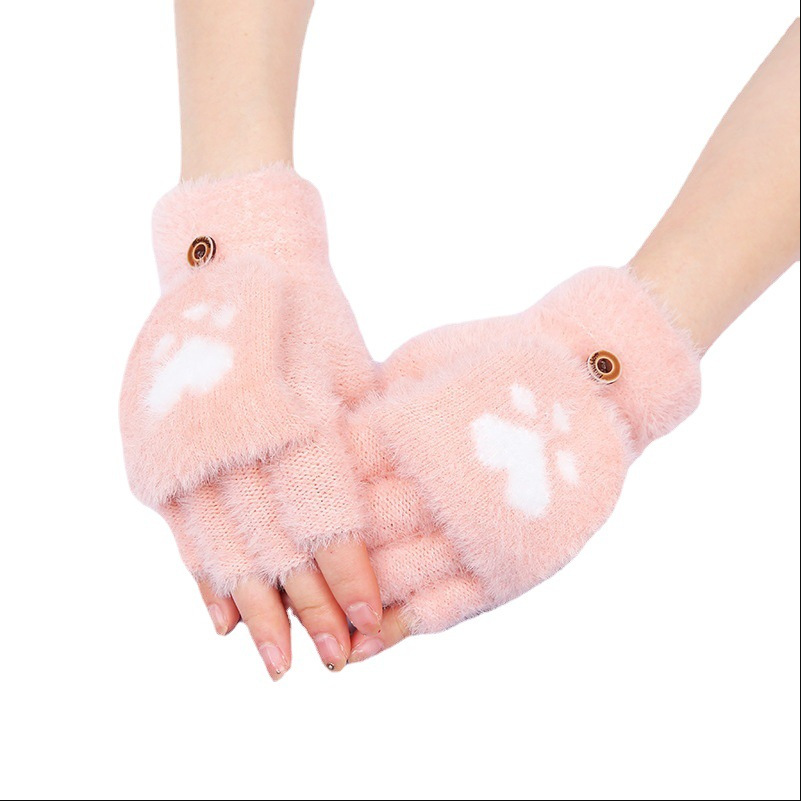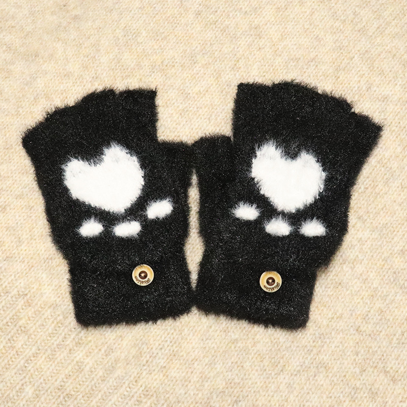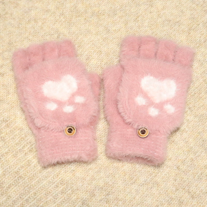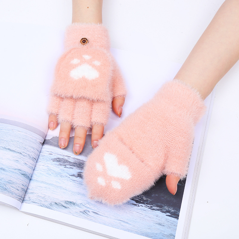 冬季爆款仿貂毛学生翻盖保暖手套 骑行半指防风防寒猫爪爱心手套