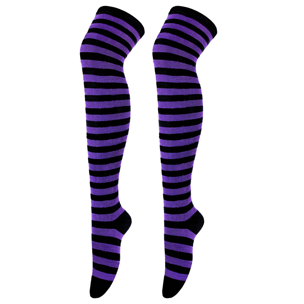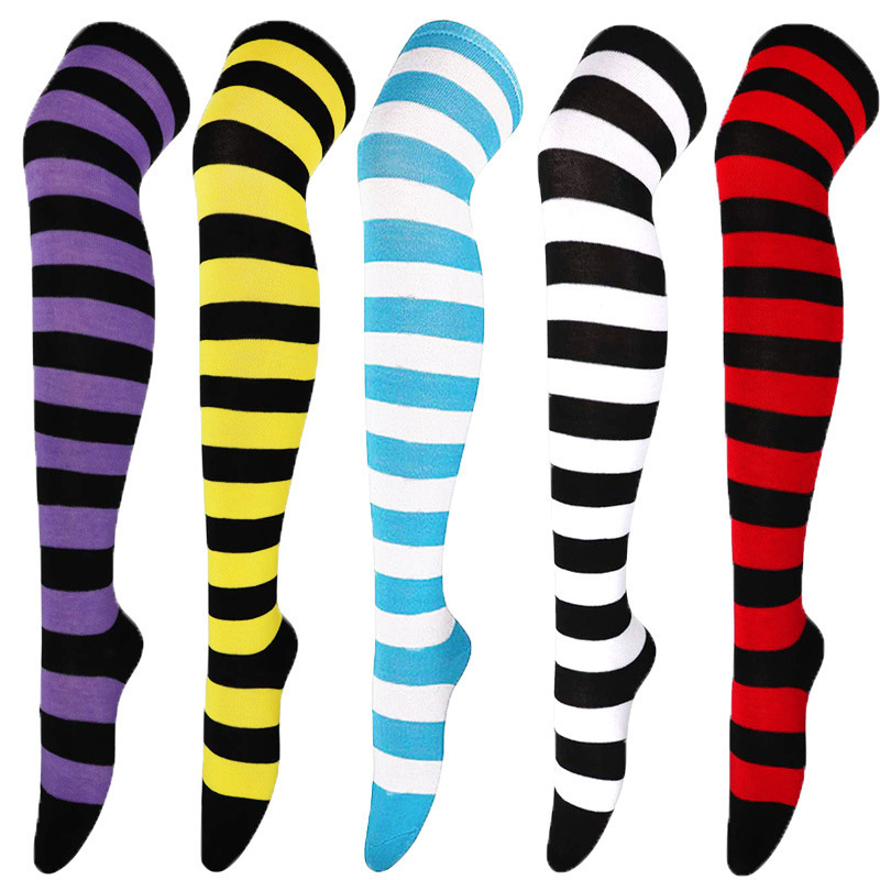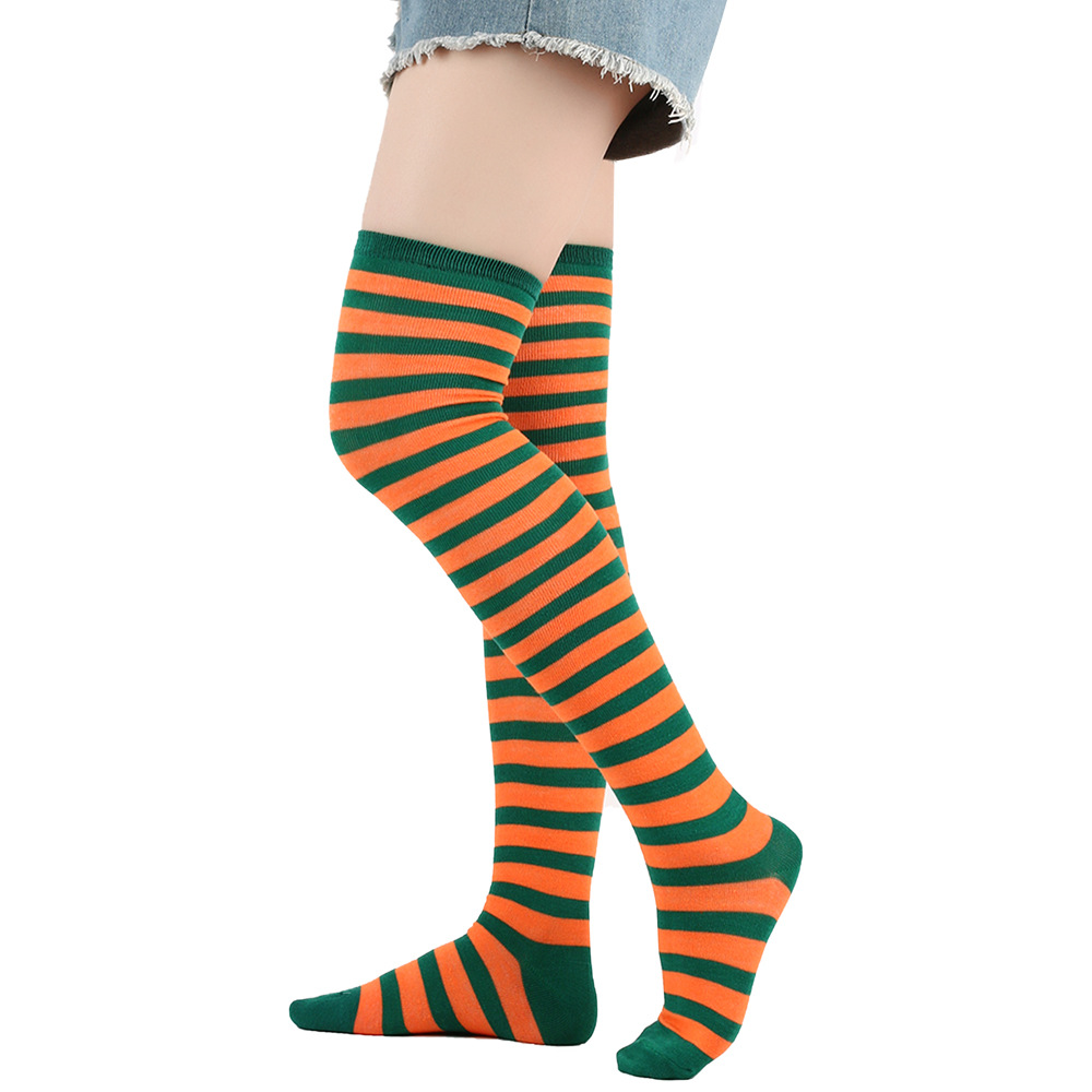 新 欧美袜子长筒袜女日系条纹过膝袜大腿袜COSPLAY动漫女袜圣诞袜