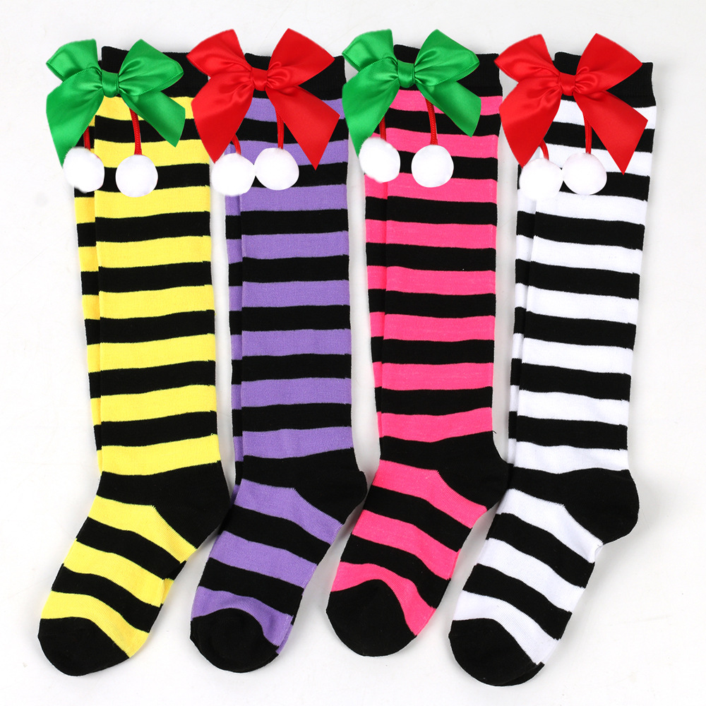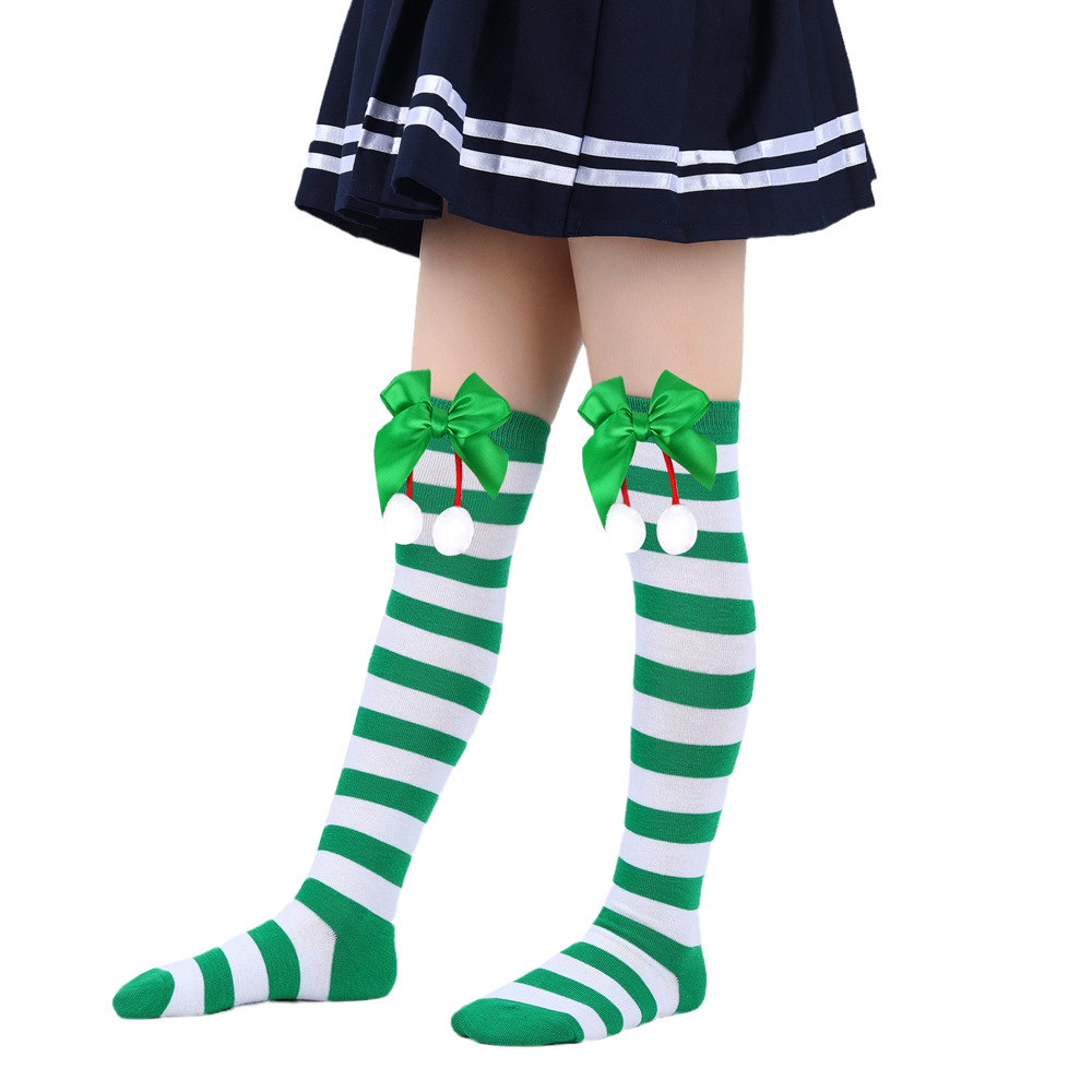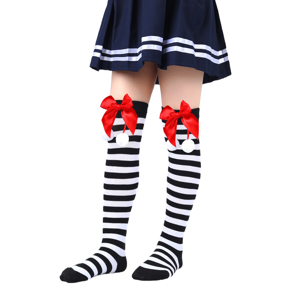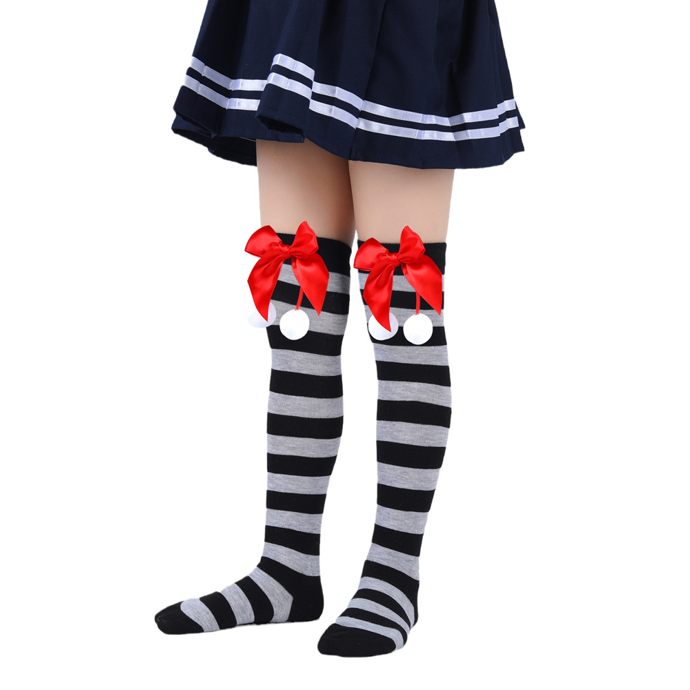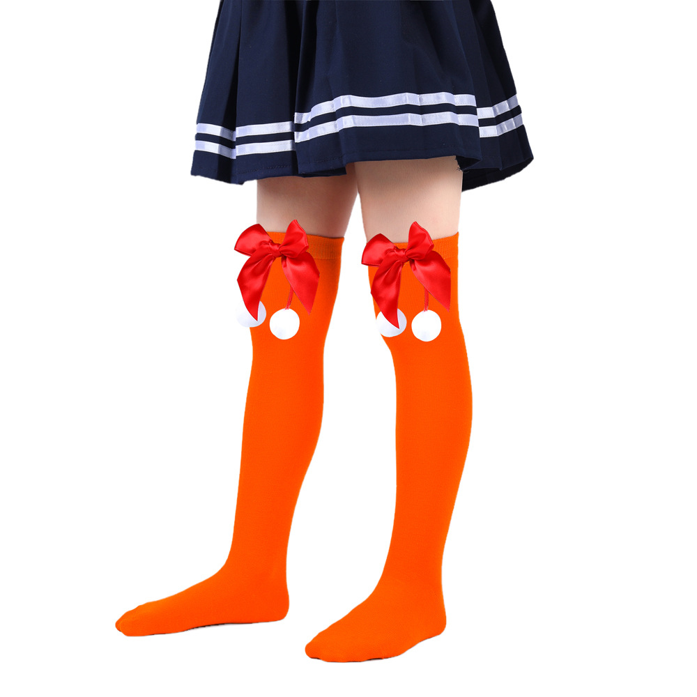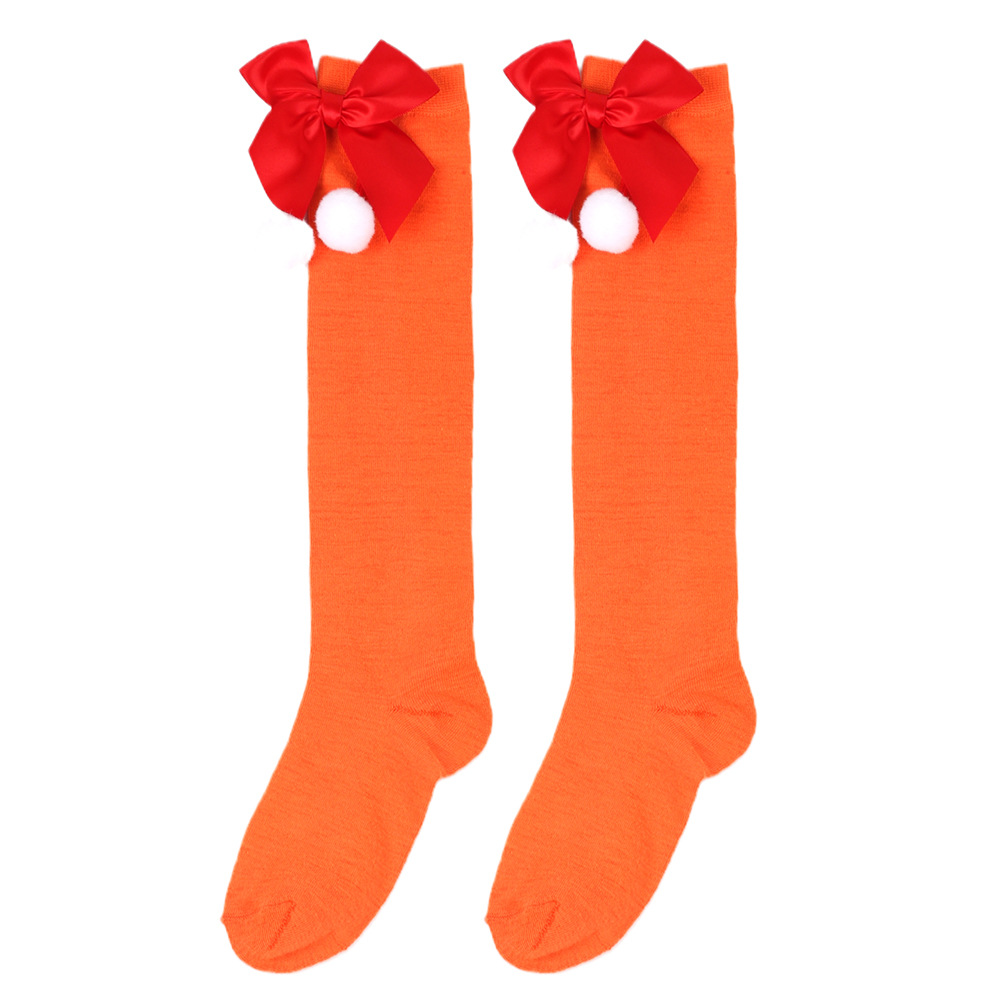 跨境儿童圣诞袜秋冬新款女童长筒袜欧美可爱蝴蝶结毛球圣诞节袜子