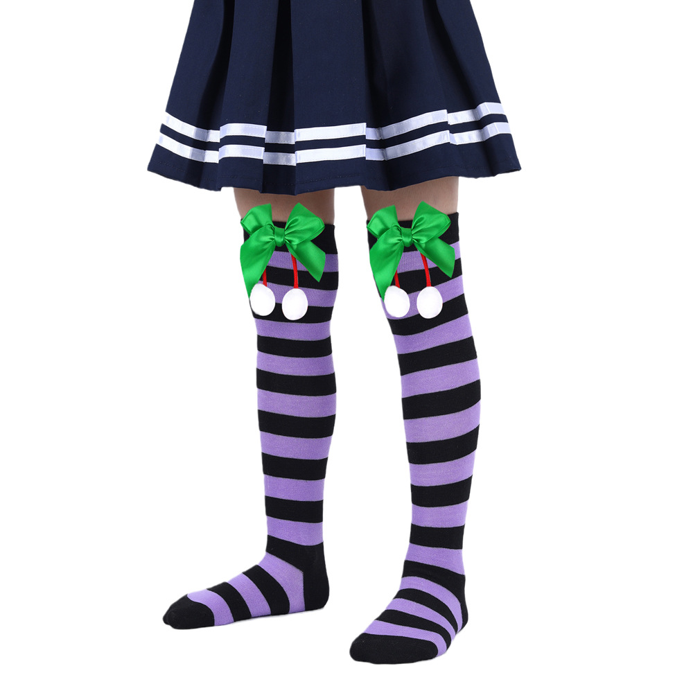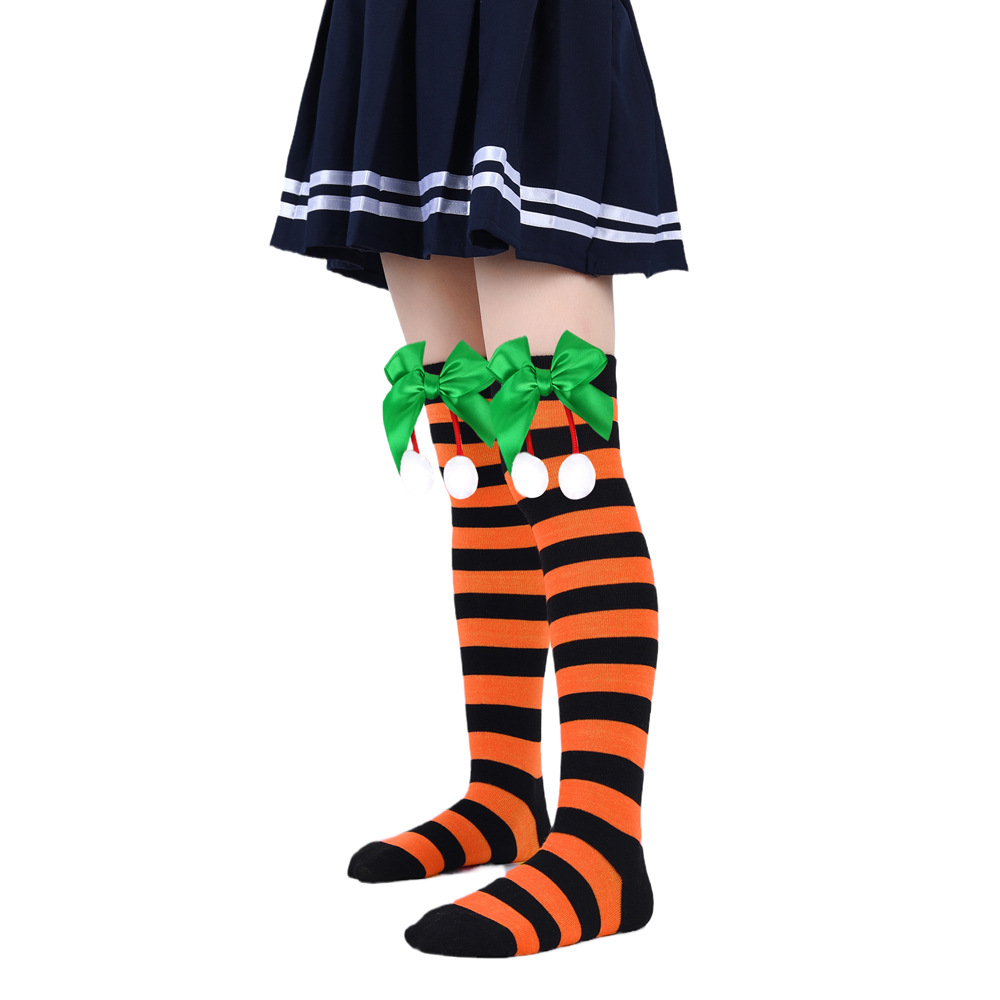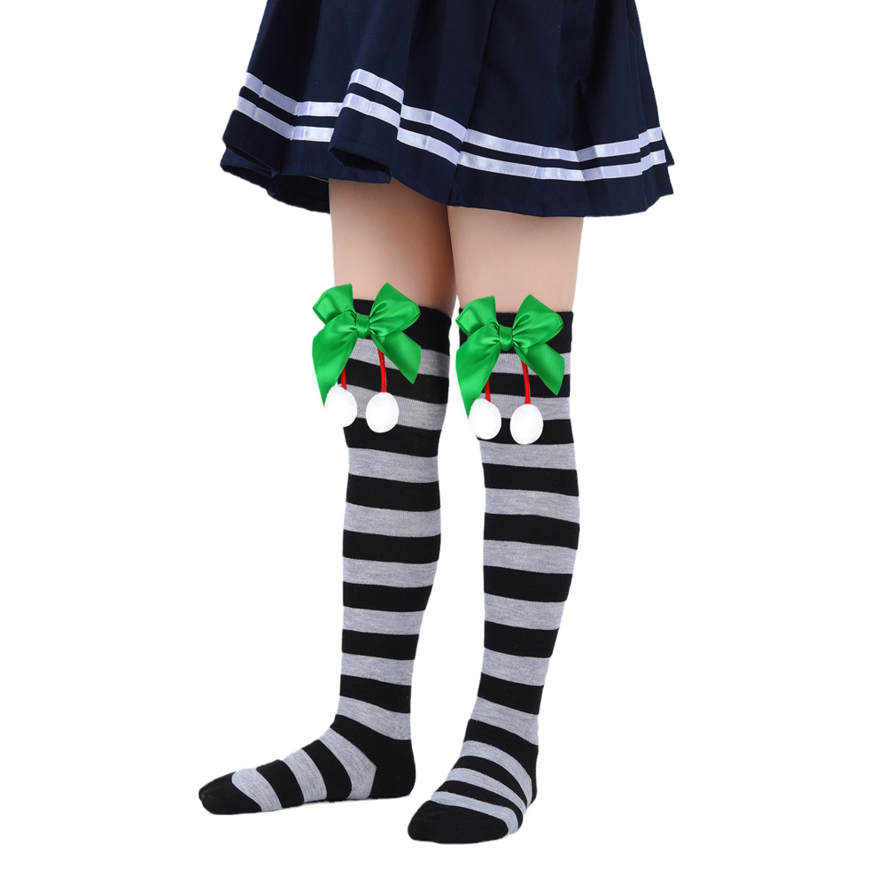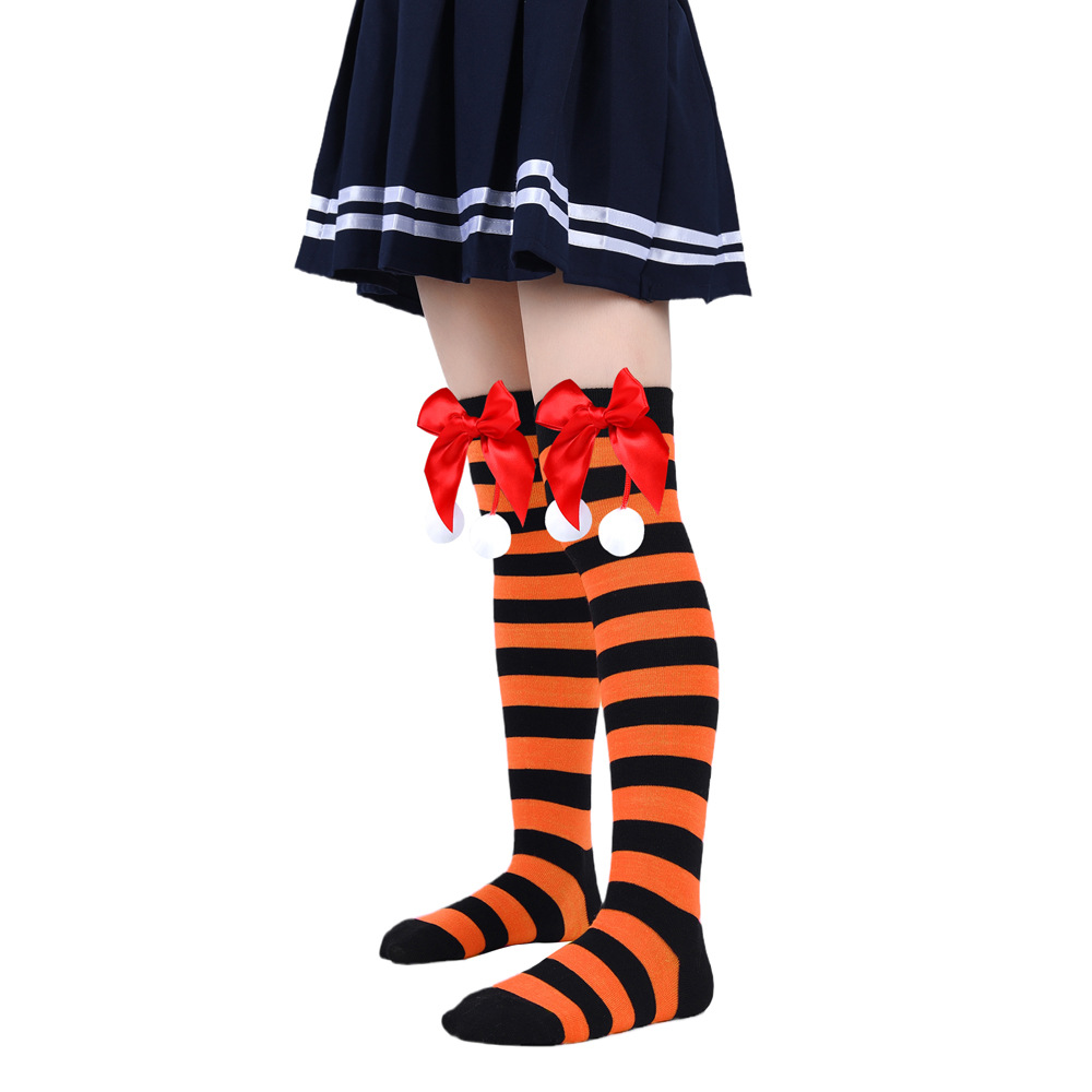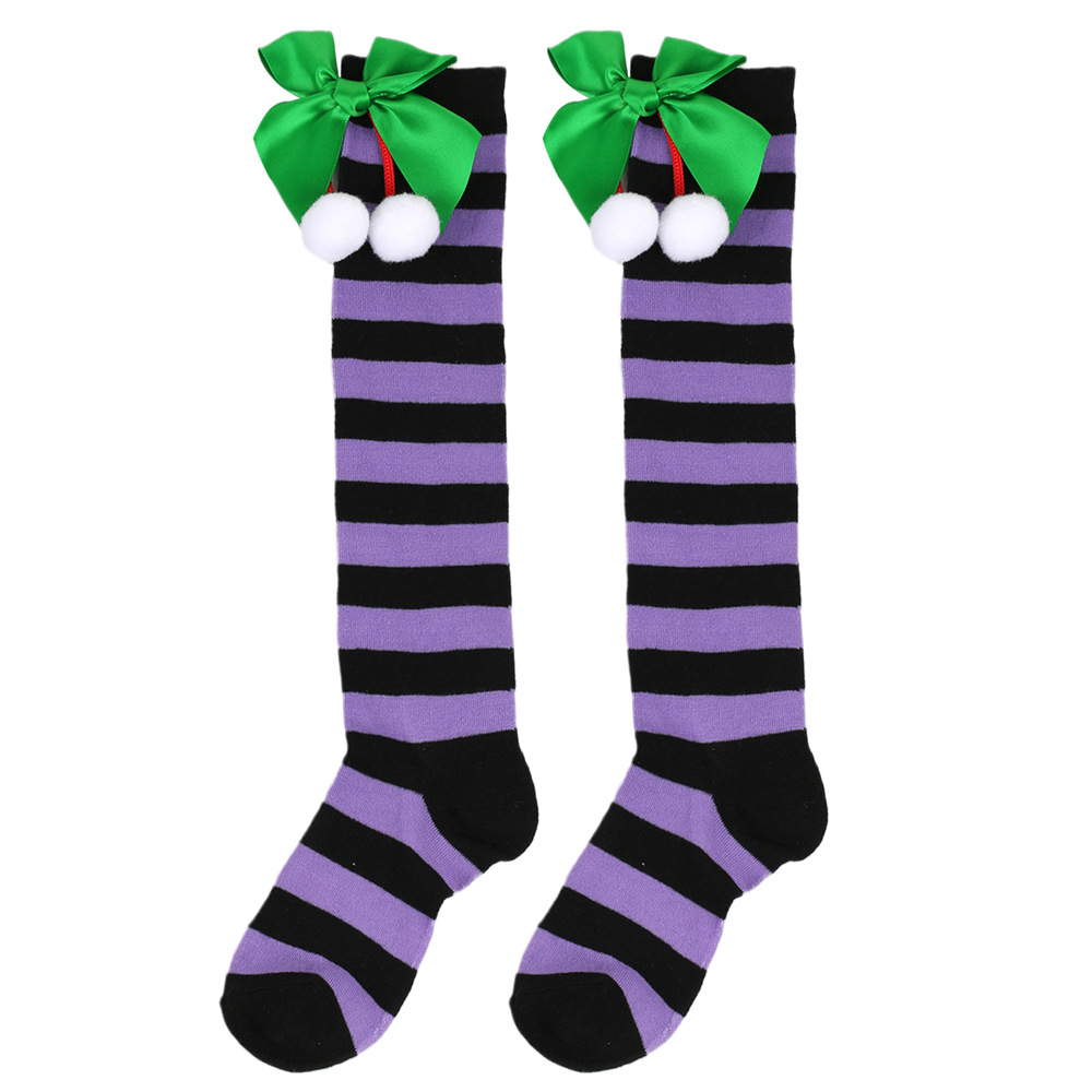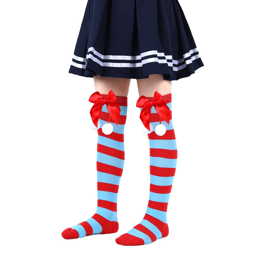 跨境儿童圣诞袜秋冬新款女童长筒袜欧美可爱蝴蝶结毛球圣诞节袜子