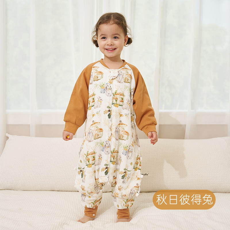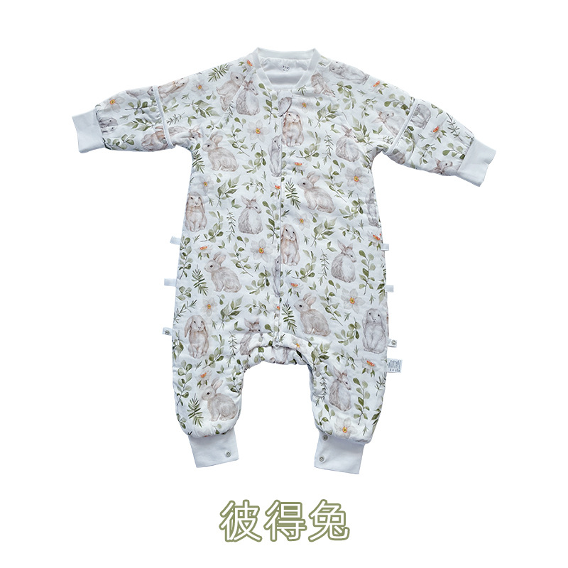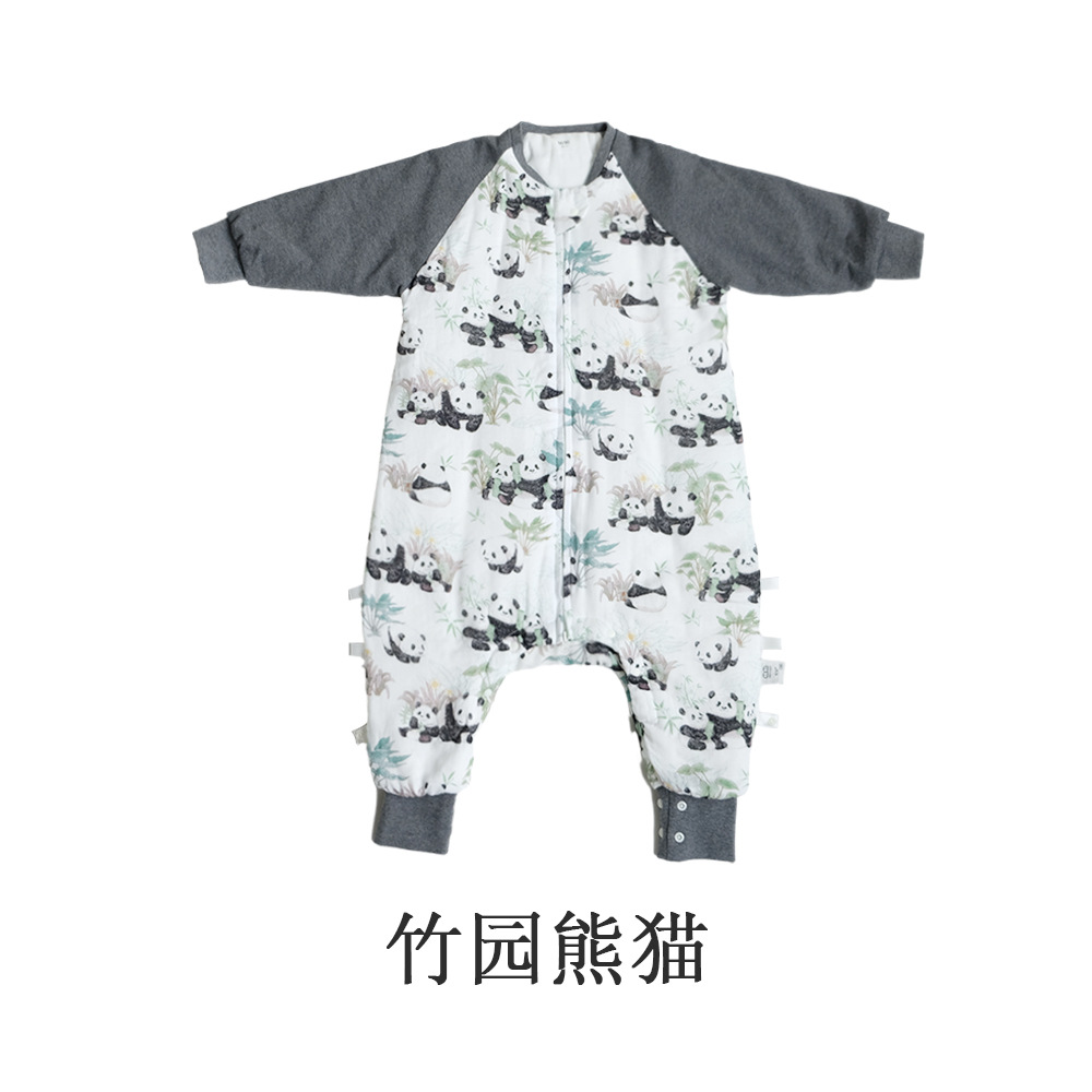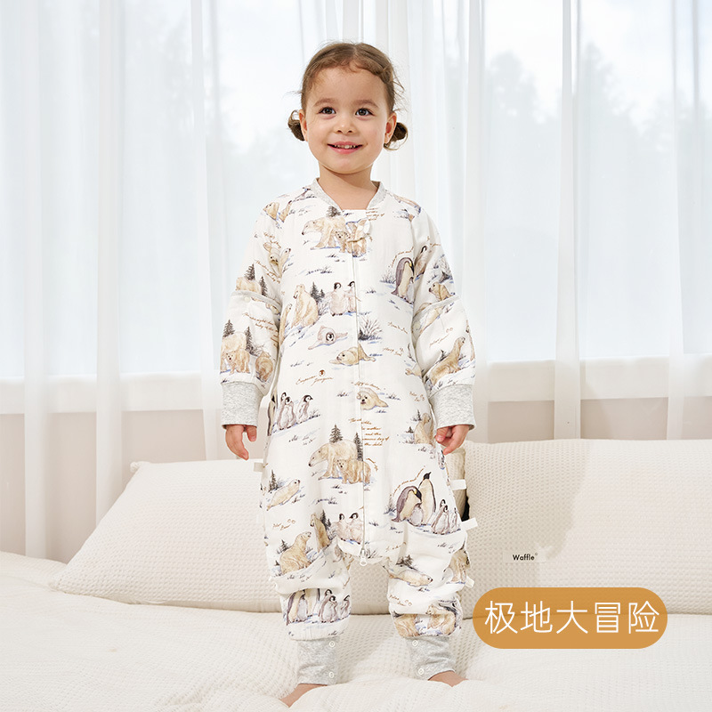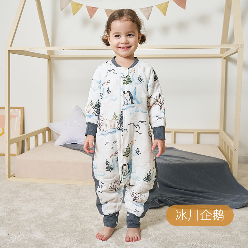 安旦24新款婴幼儿纱布睡袋轻芯杜邦棉秋冬季夹棉儿童长袖分腿睡袋
