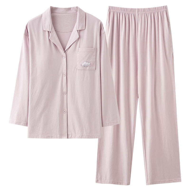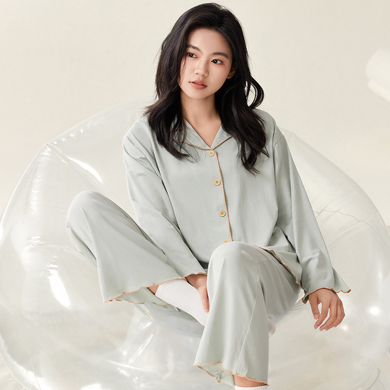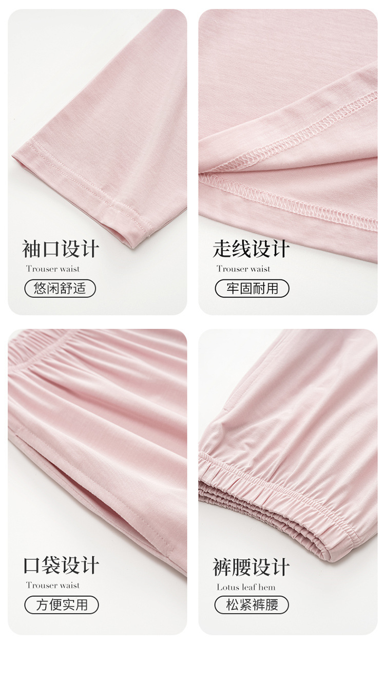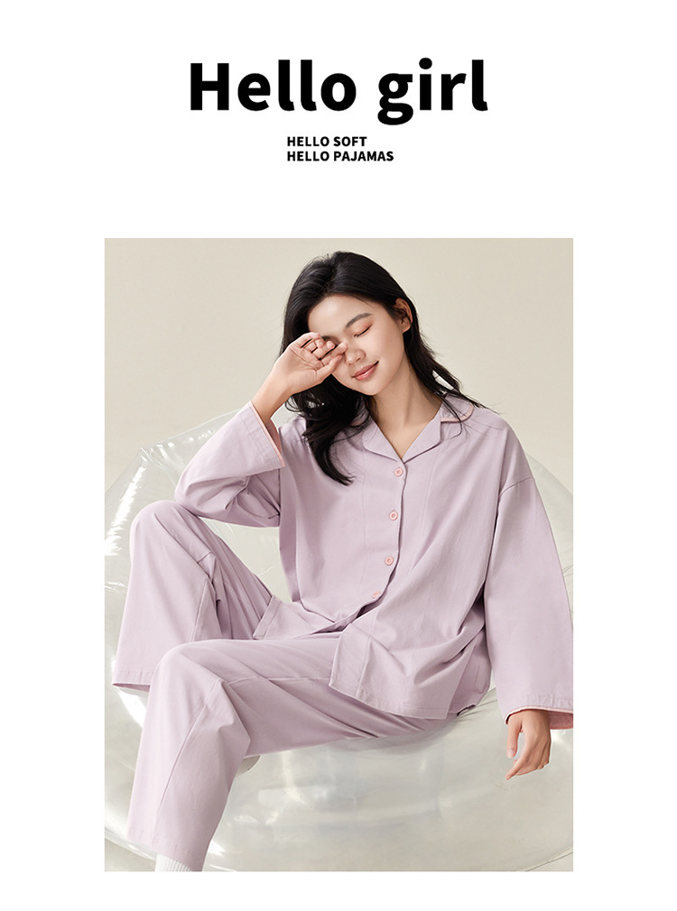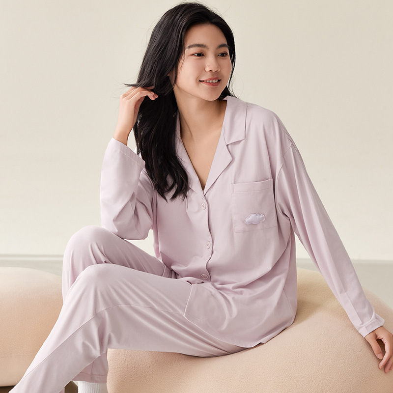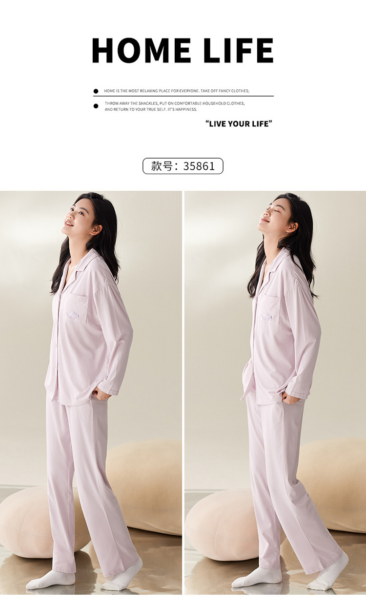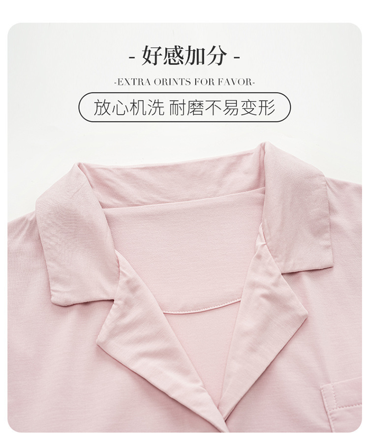 春秋季莫代尔睡衣女秋长袖开衫翻领宽松薄款女士家居服套装无印春