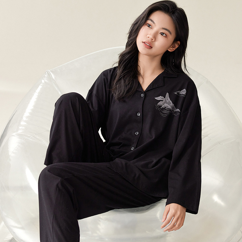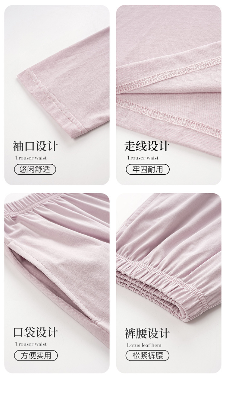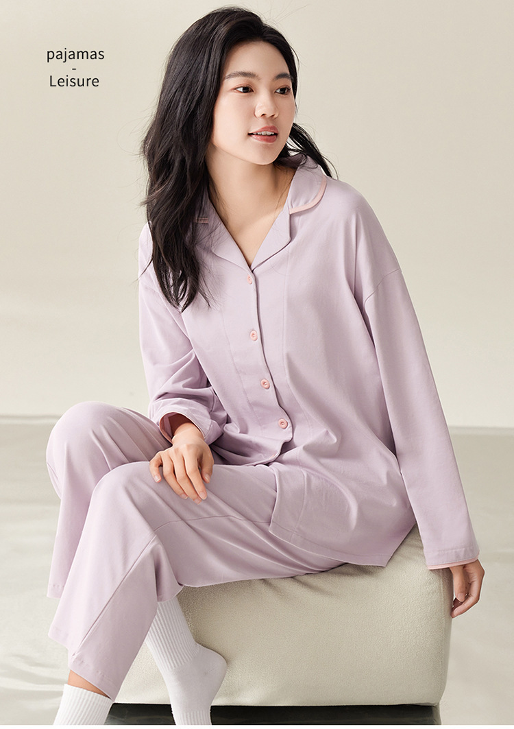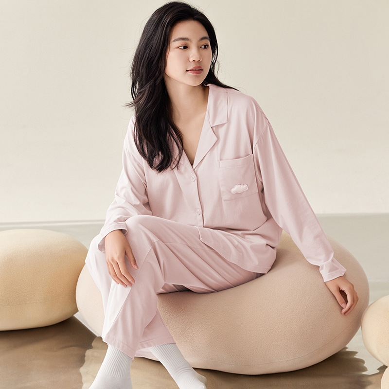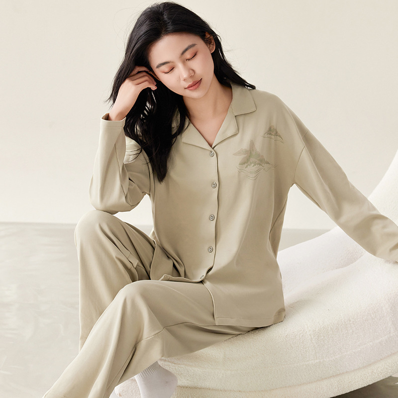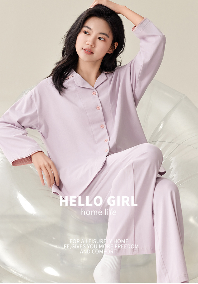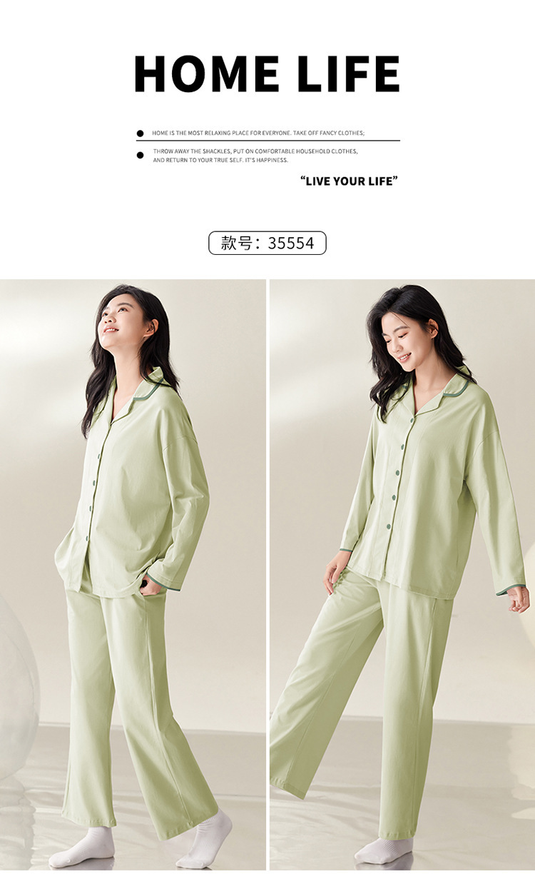 春秋季莫代尔睡衣女秋长袖开衫翻领宽松薄款女士家居服套装无印春