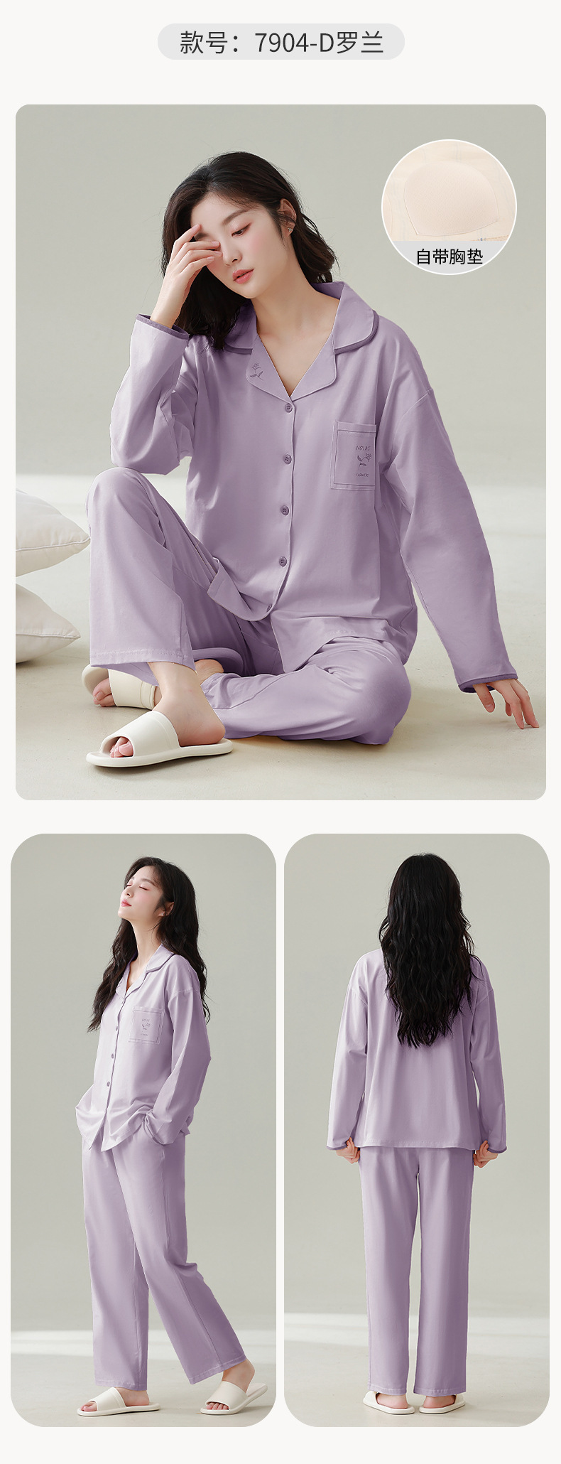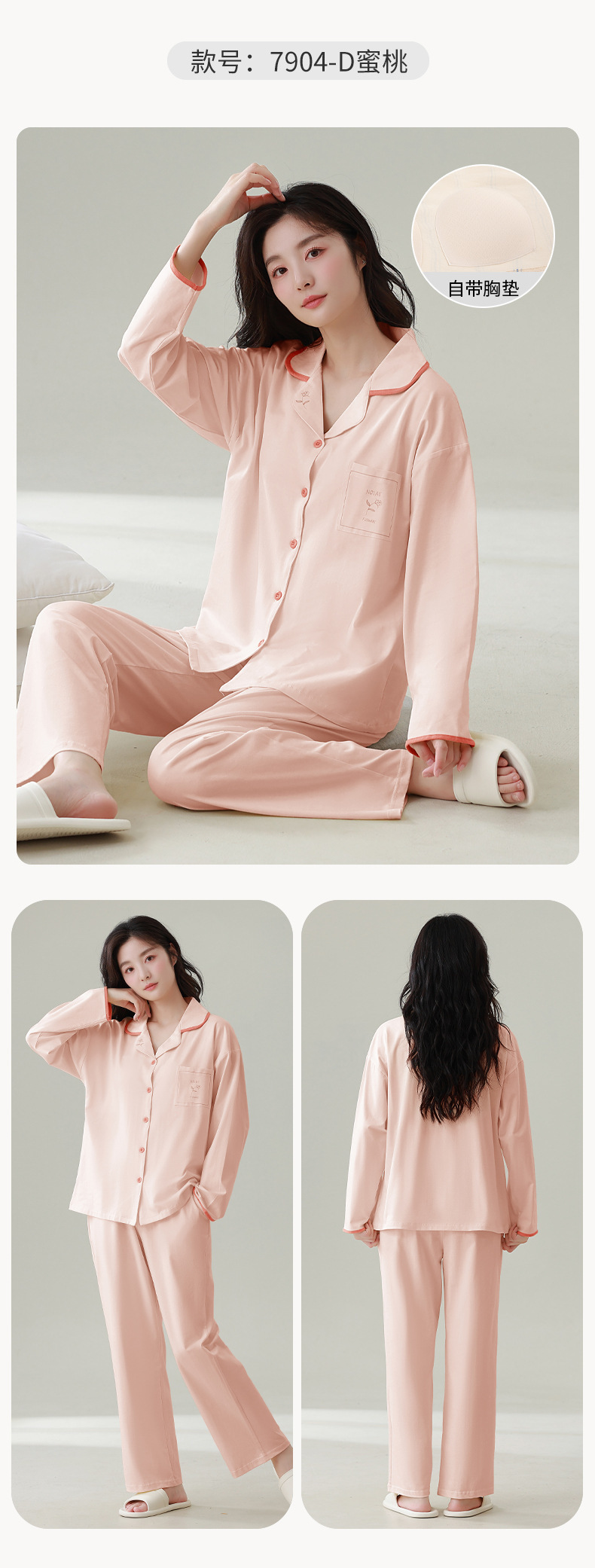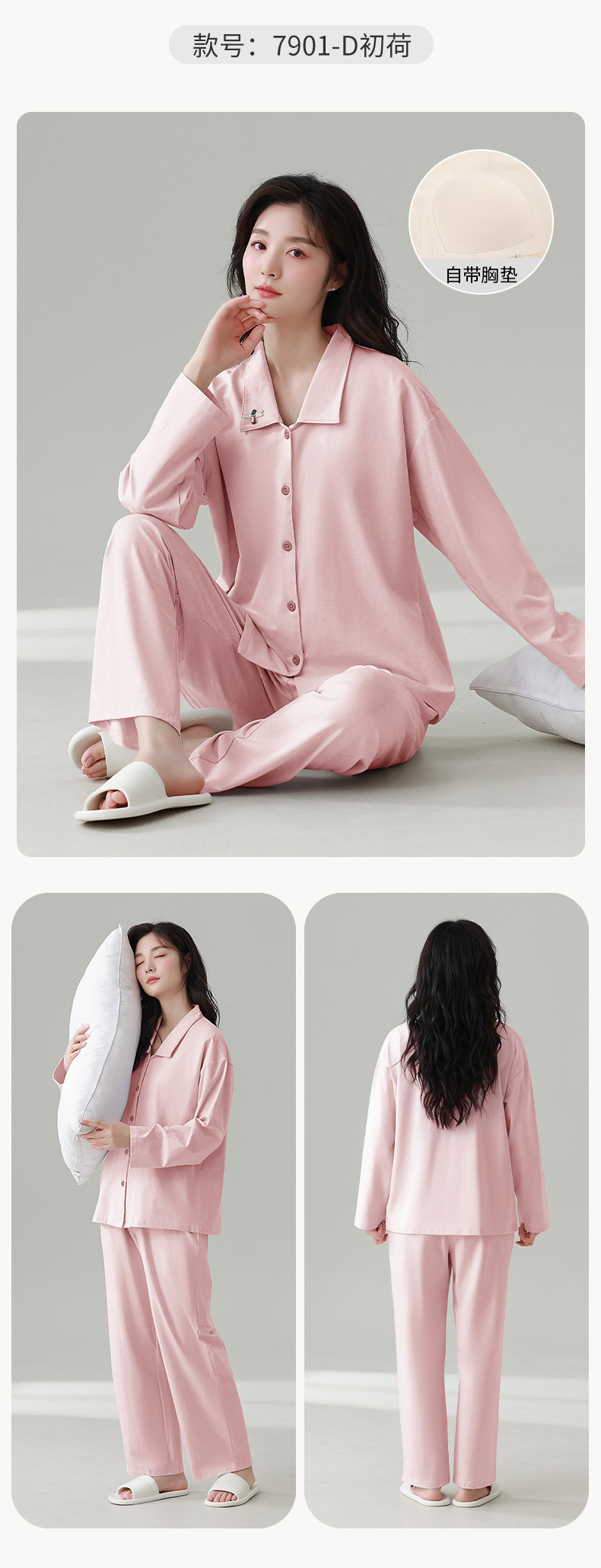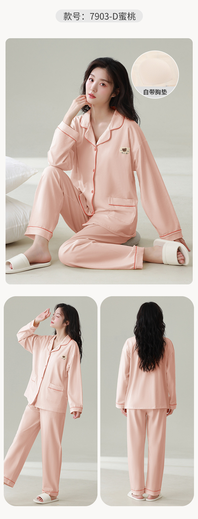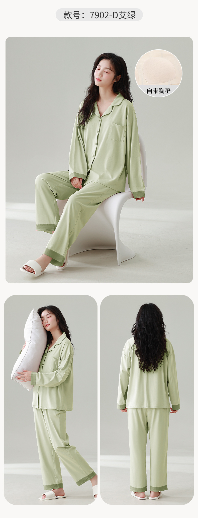睡衣女秋季纯棉带胸垫长袖拉架爽棉开衫休闲可外穿女士全棉家居服
