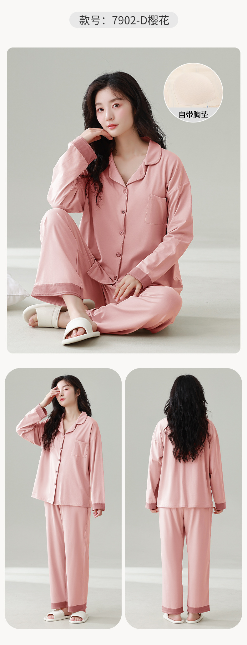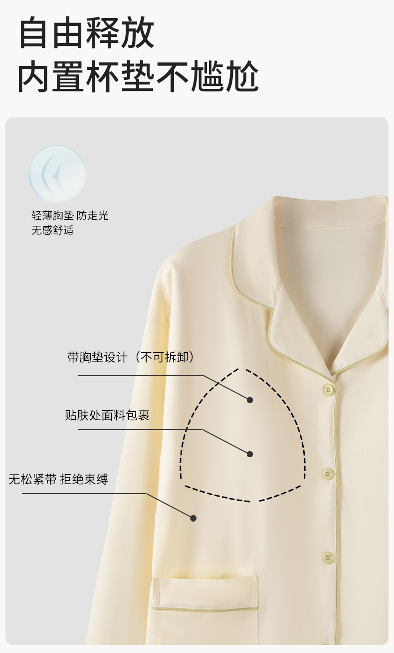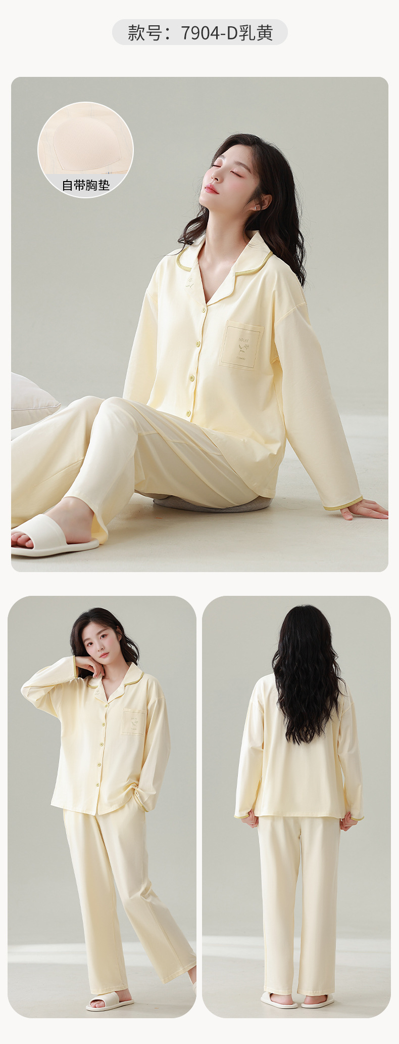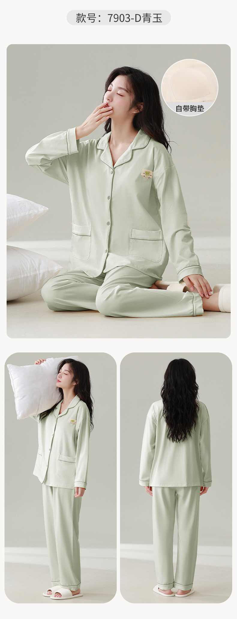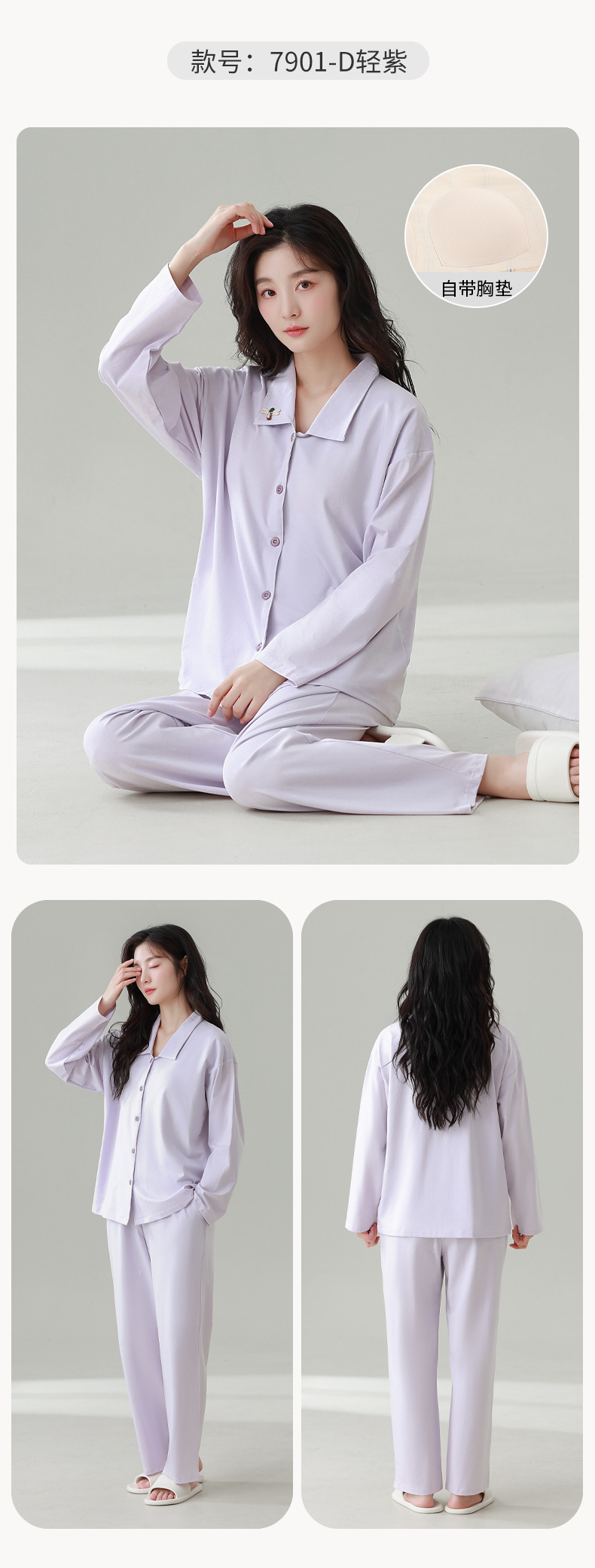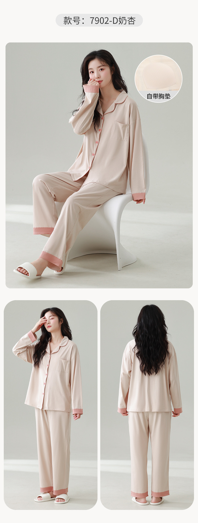 睡衣女秋季纯棉带胸垫长袖拉架爽棉开衫休闲可外穿女士全棉家居服