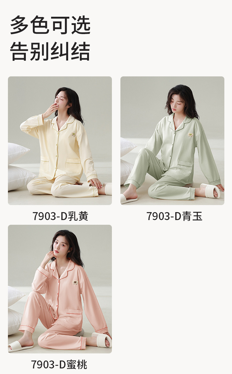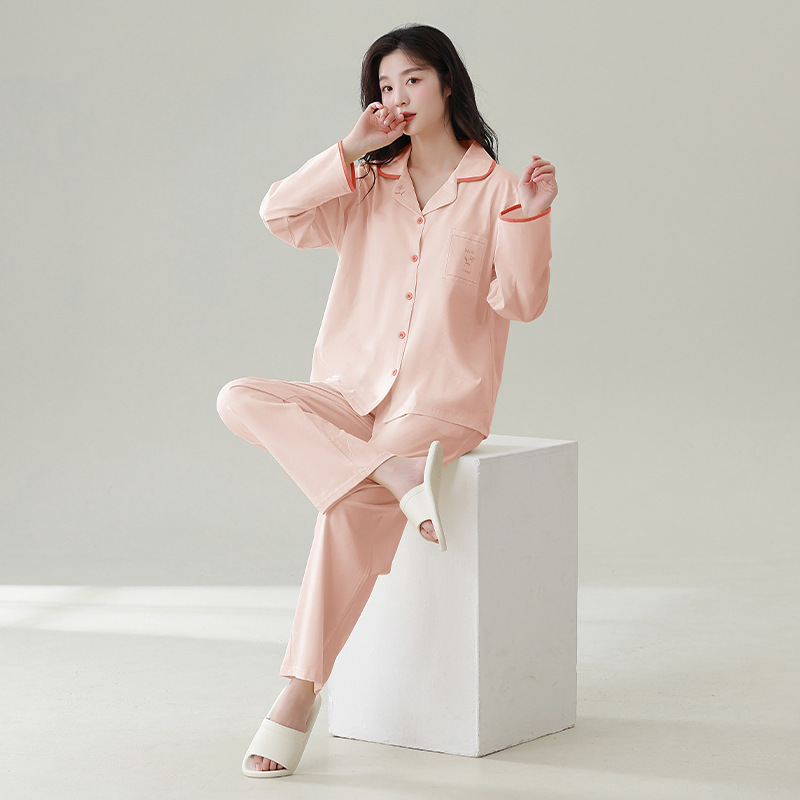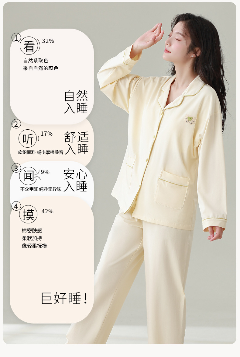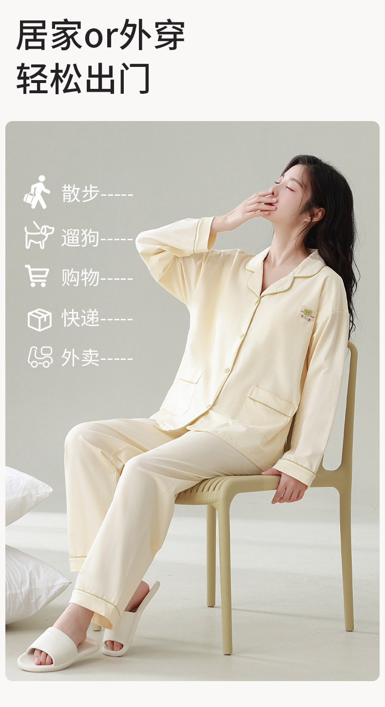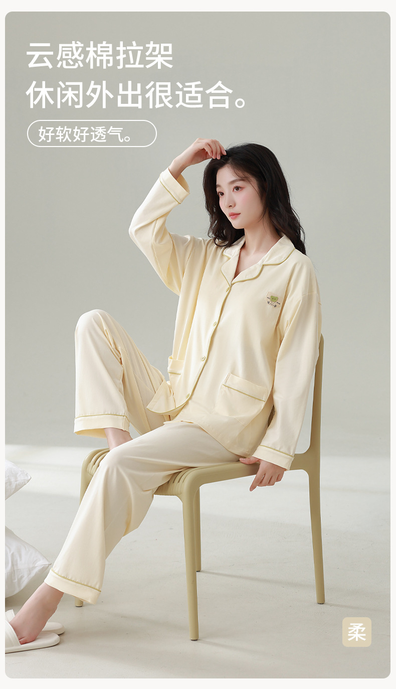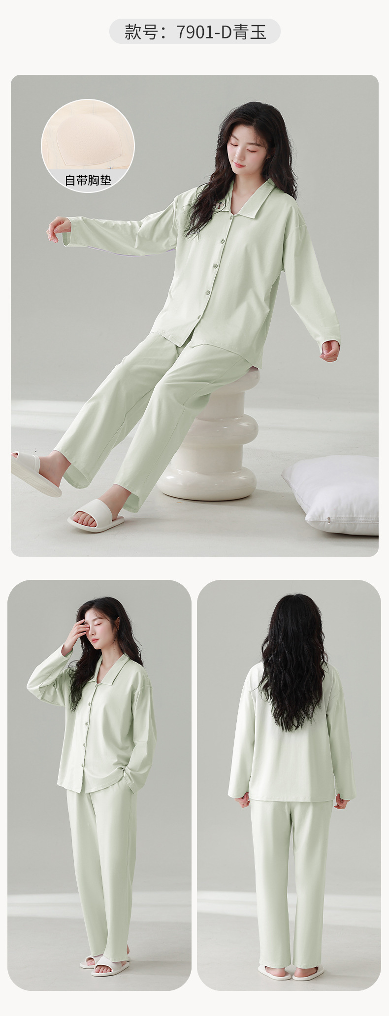 睡衣女秋季纯棉带胸垫长袖拉架爽棉开衫休闲可外穿女士全棉家居服