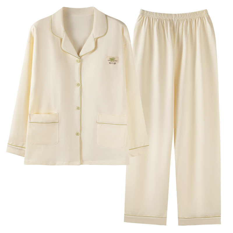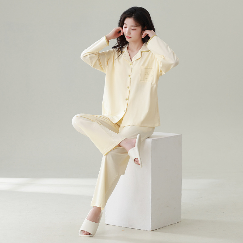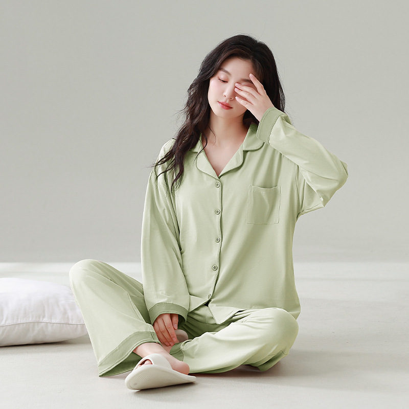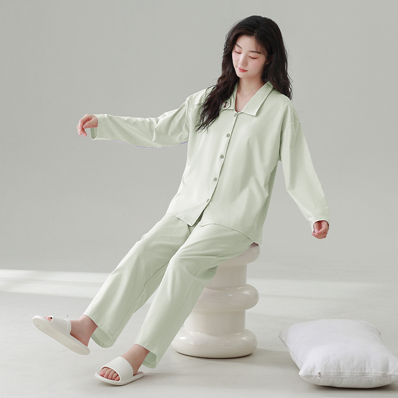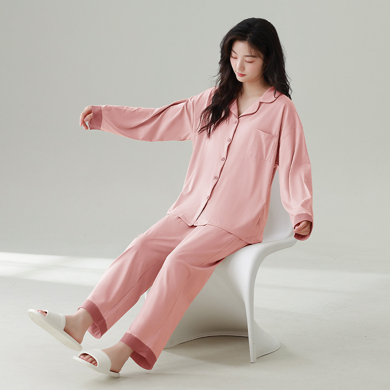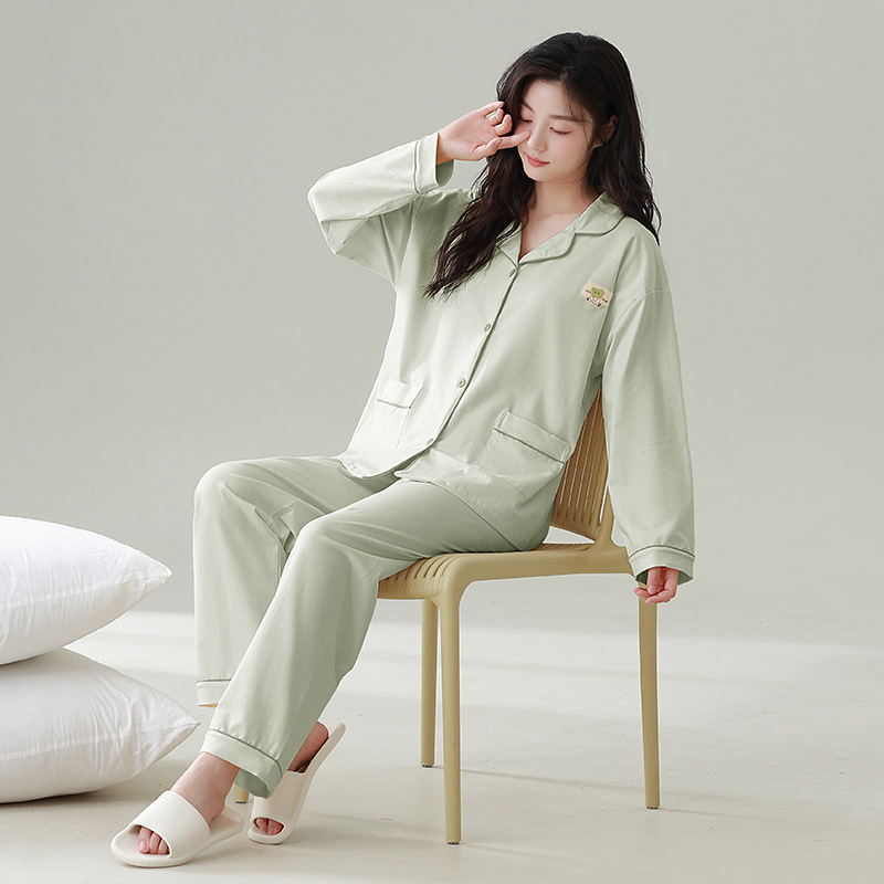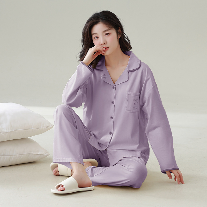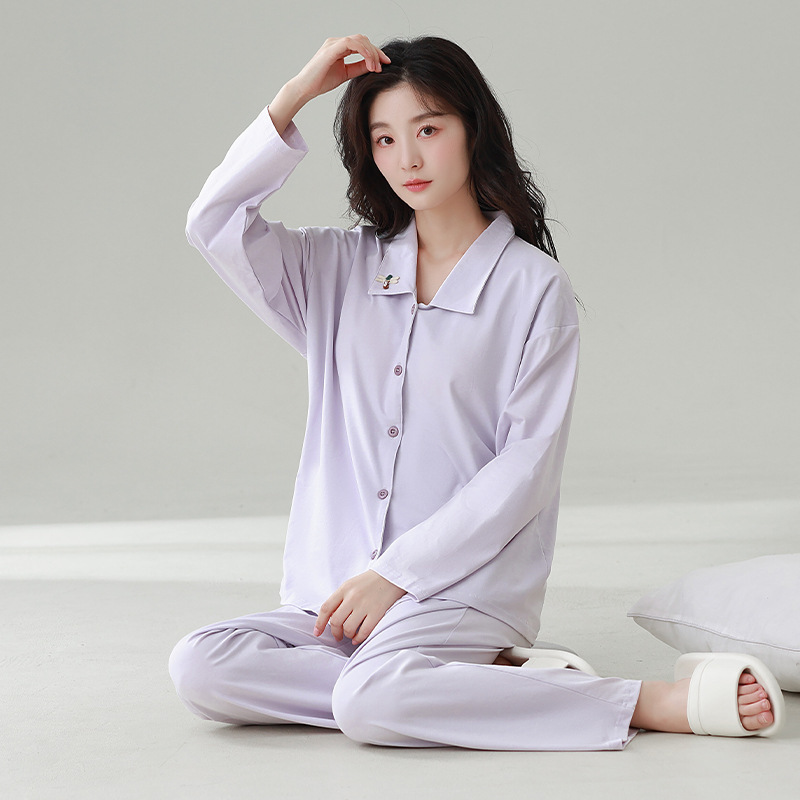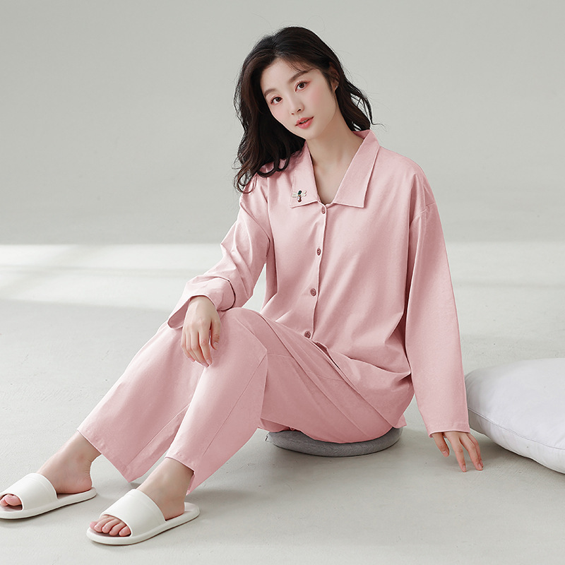 睡衣女秋季纯棉带胸垫长袖拉架爽棉开衫休闲可外穿女士全棉家居服