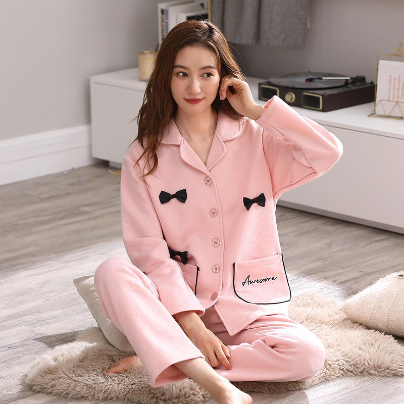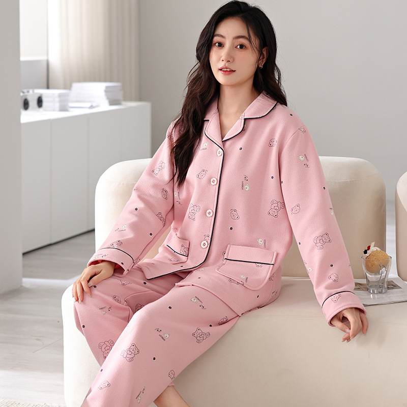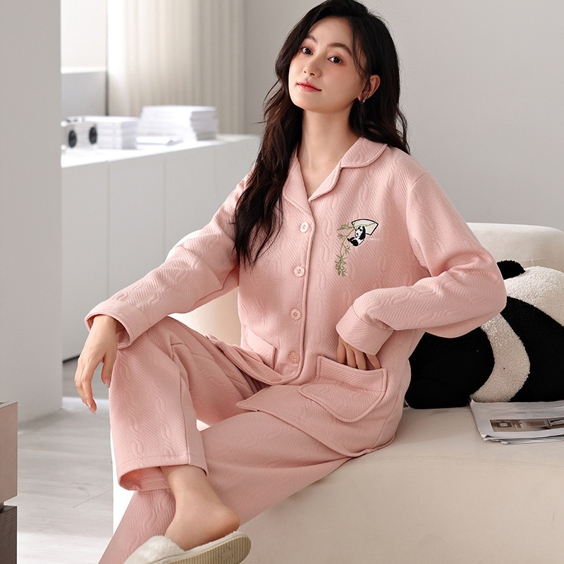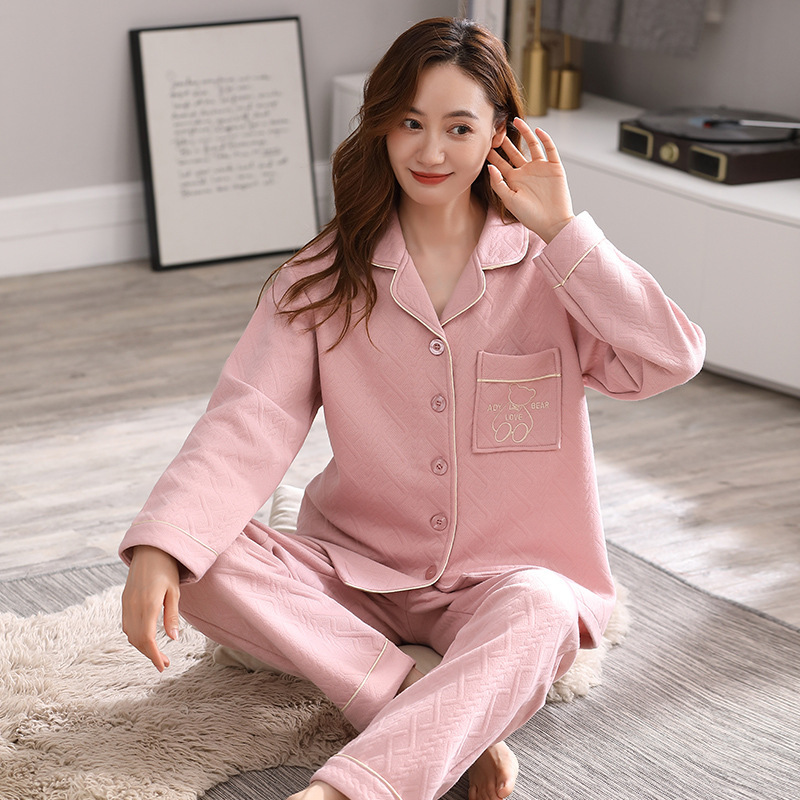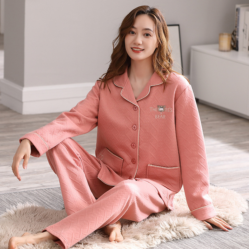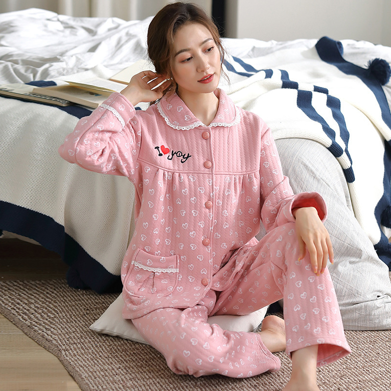 空气棉睡衣女秋冬季中青年纯棉夹层套装秋冬款薄夹棉可外穿家居服