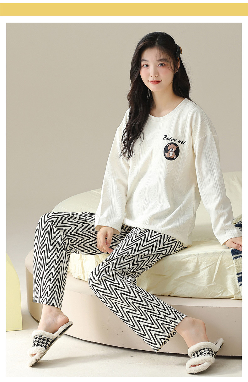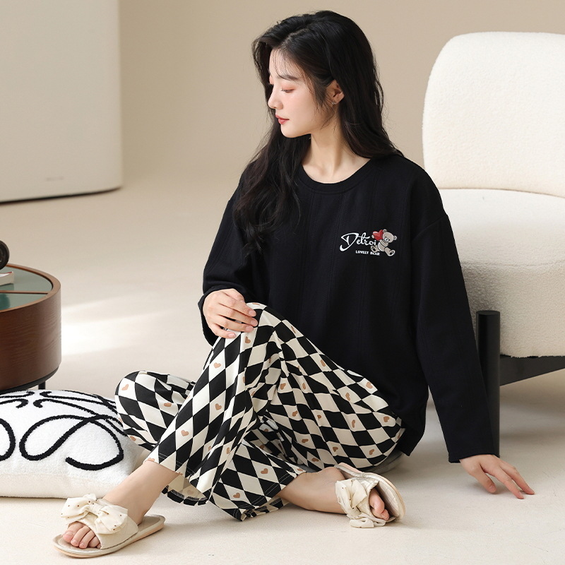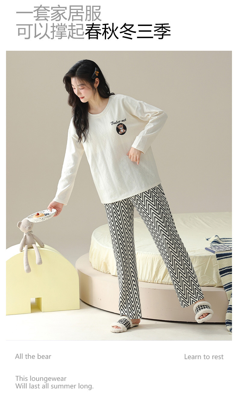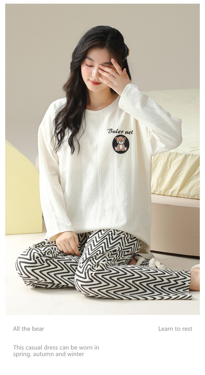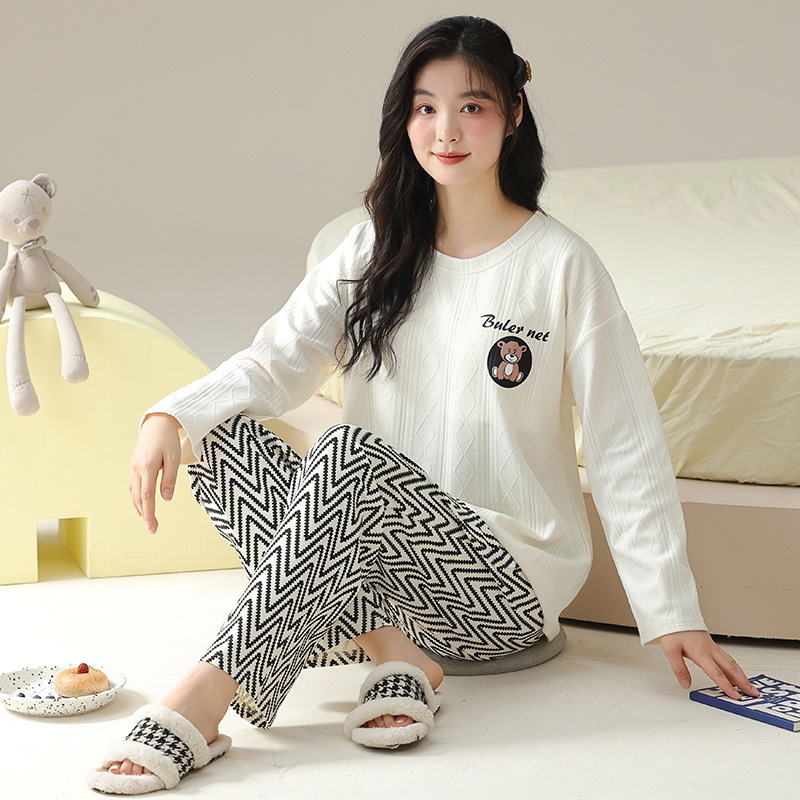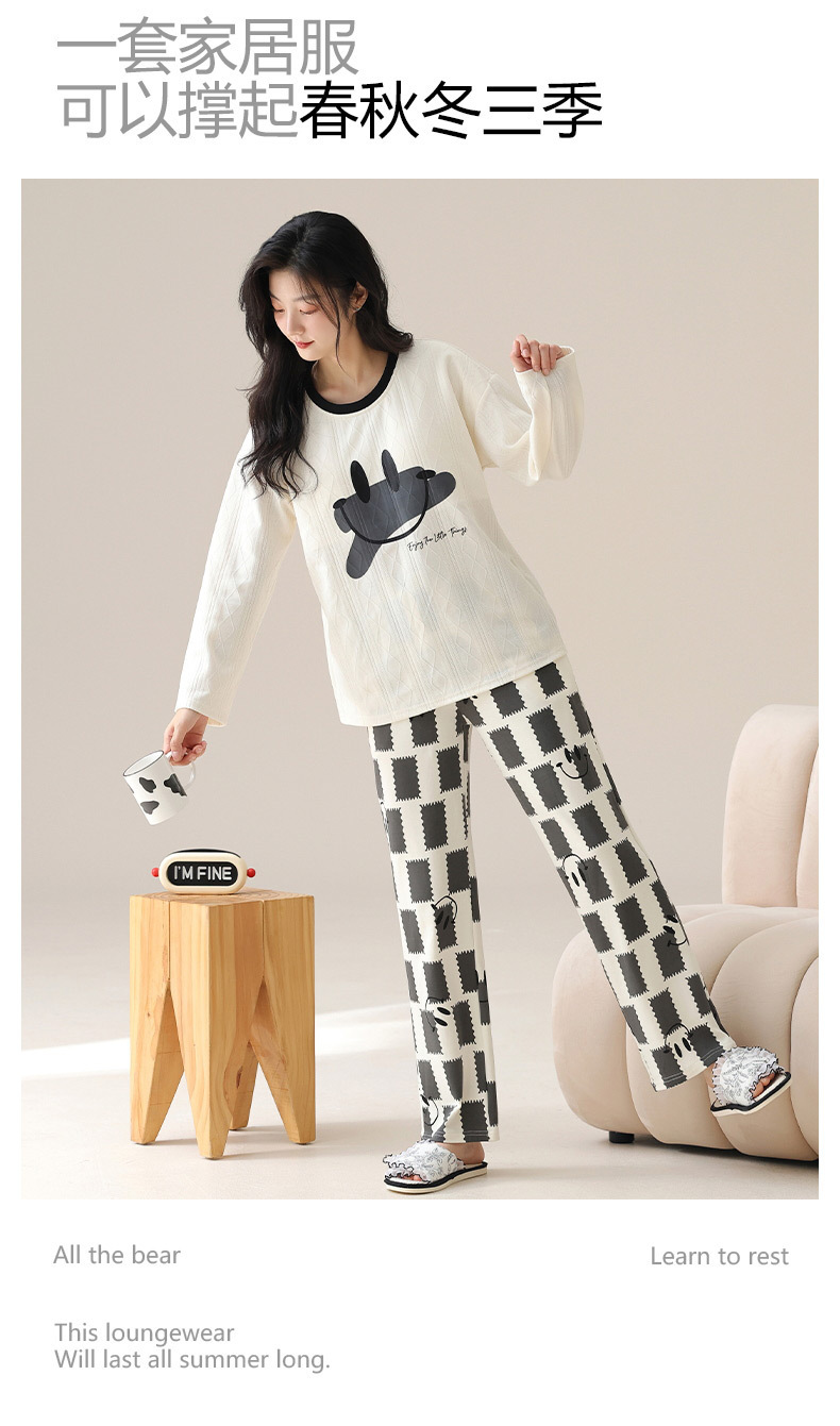 新款卡通睡衣女秋冬长袖睡衣带胸垫高颜值舒适薄款外穿家居服套装