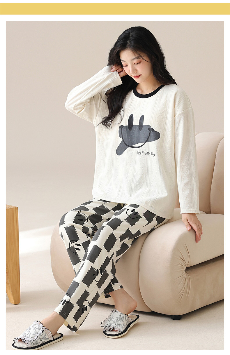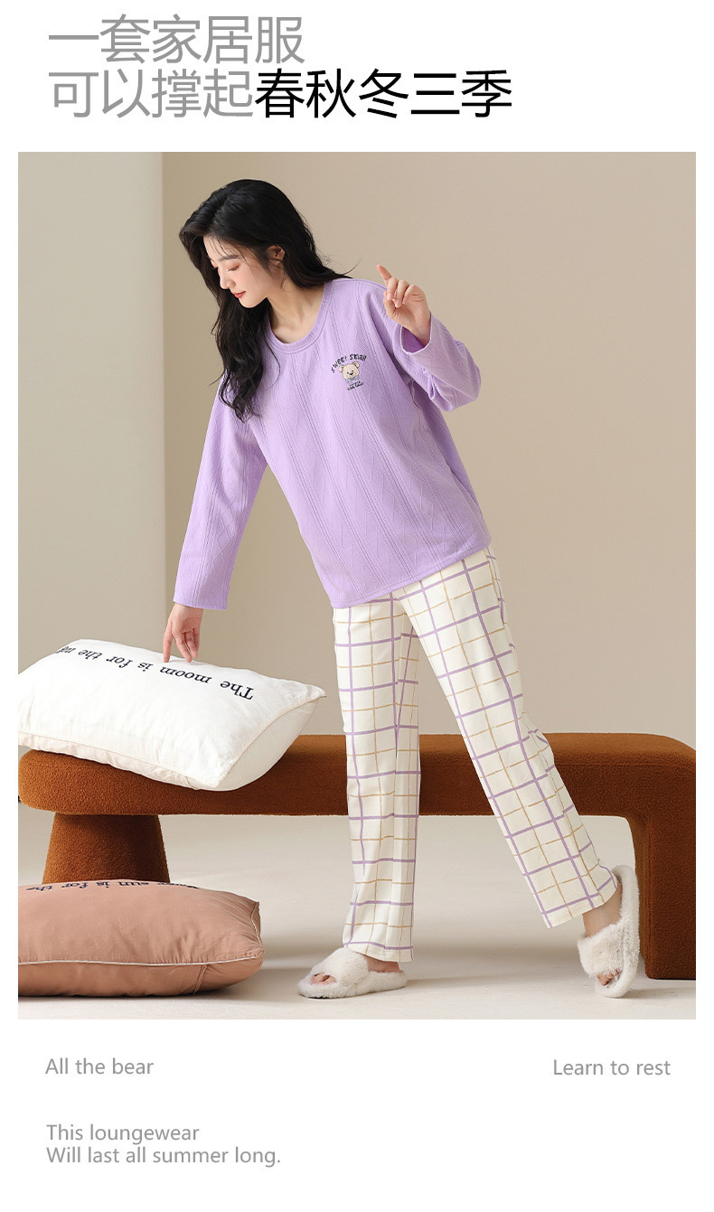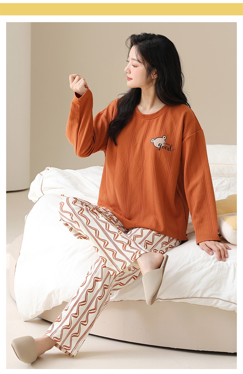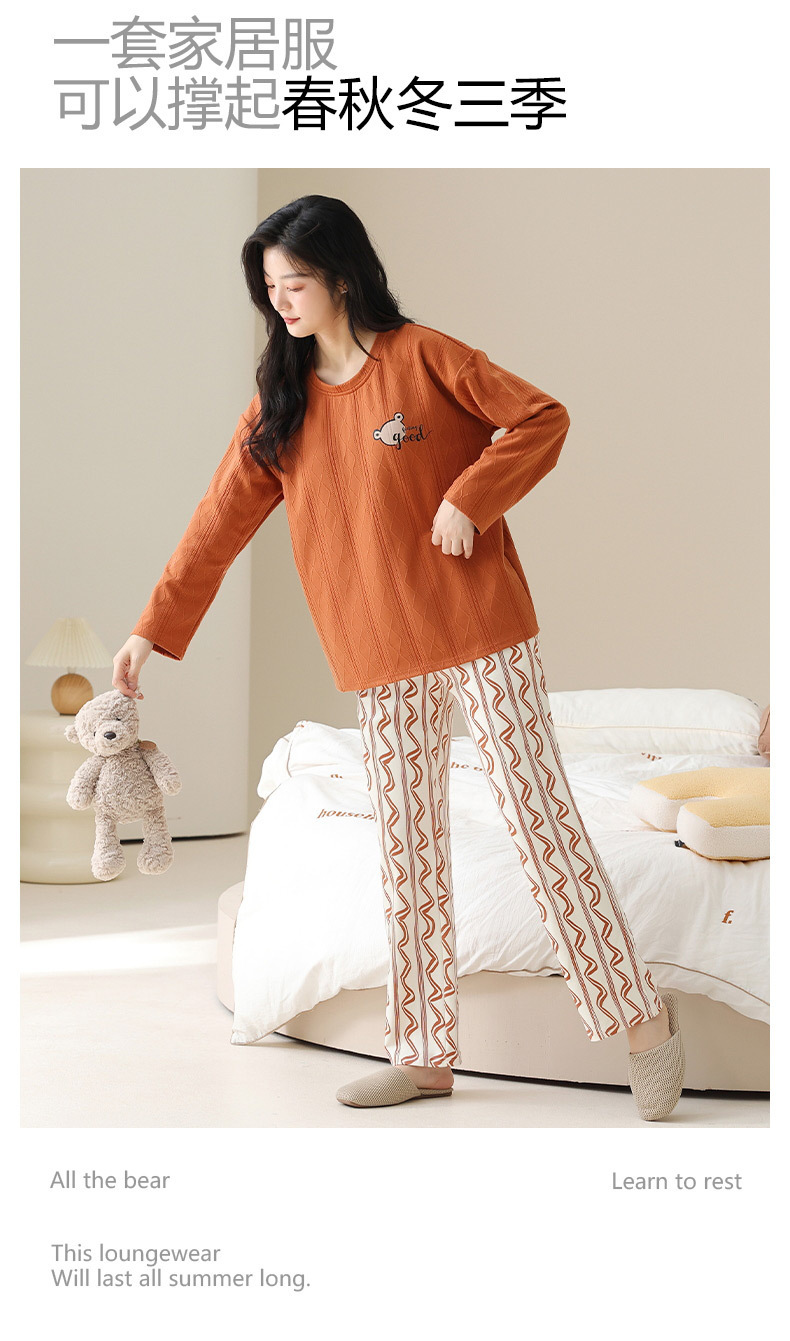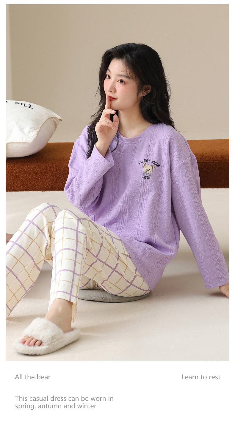 新款卡通睡衣女秋冬长袖睡衣带胸垫高颜值舒适薄款外穿家居服套装