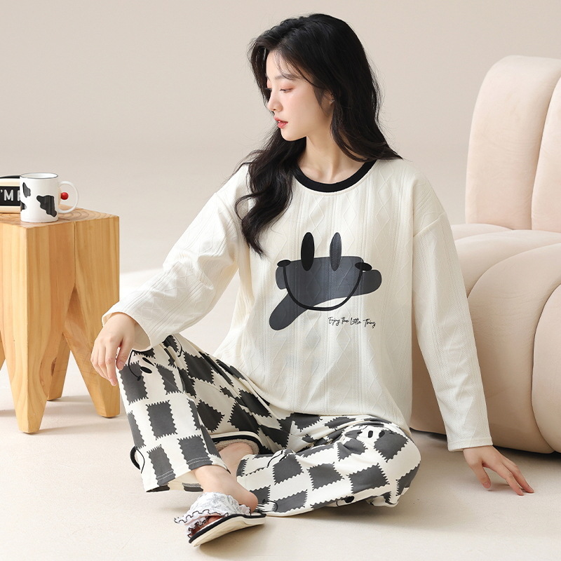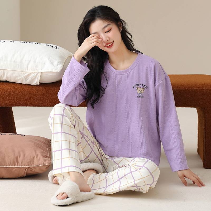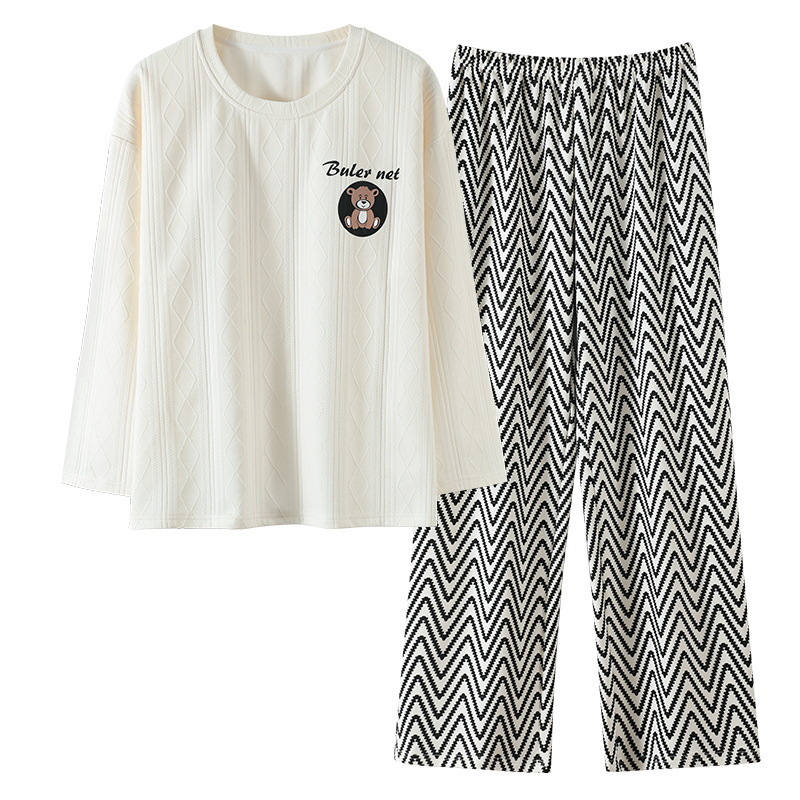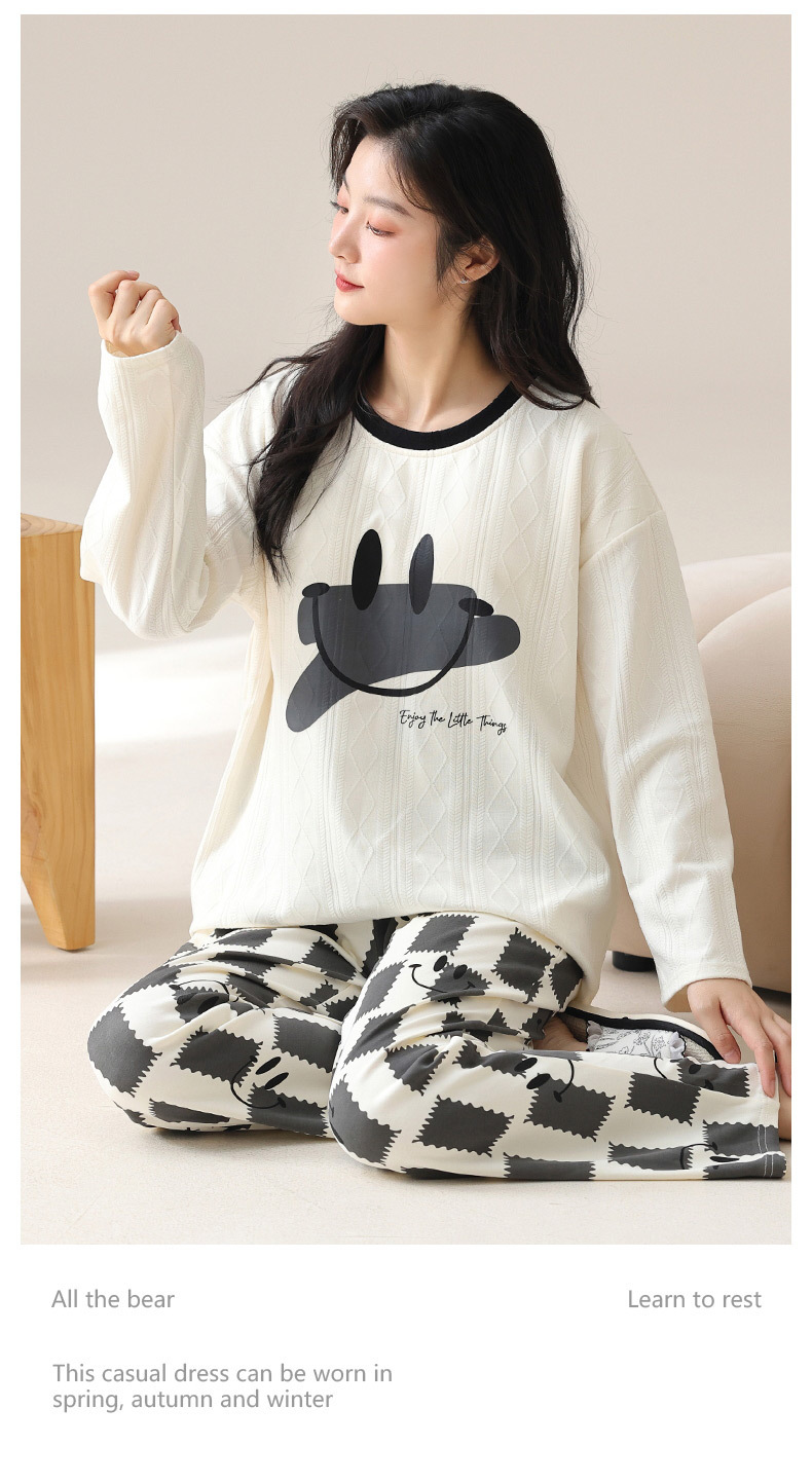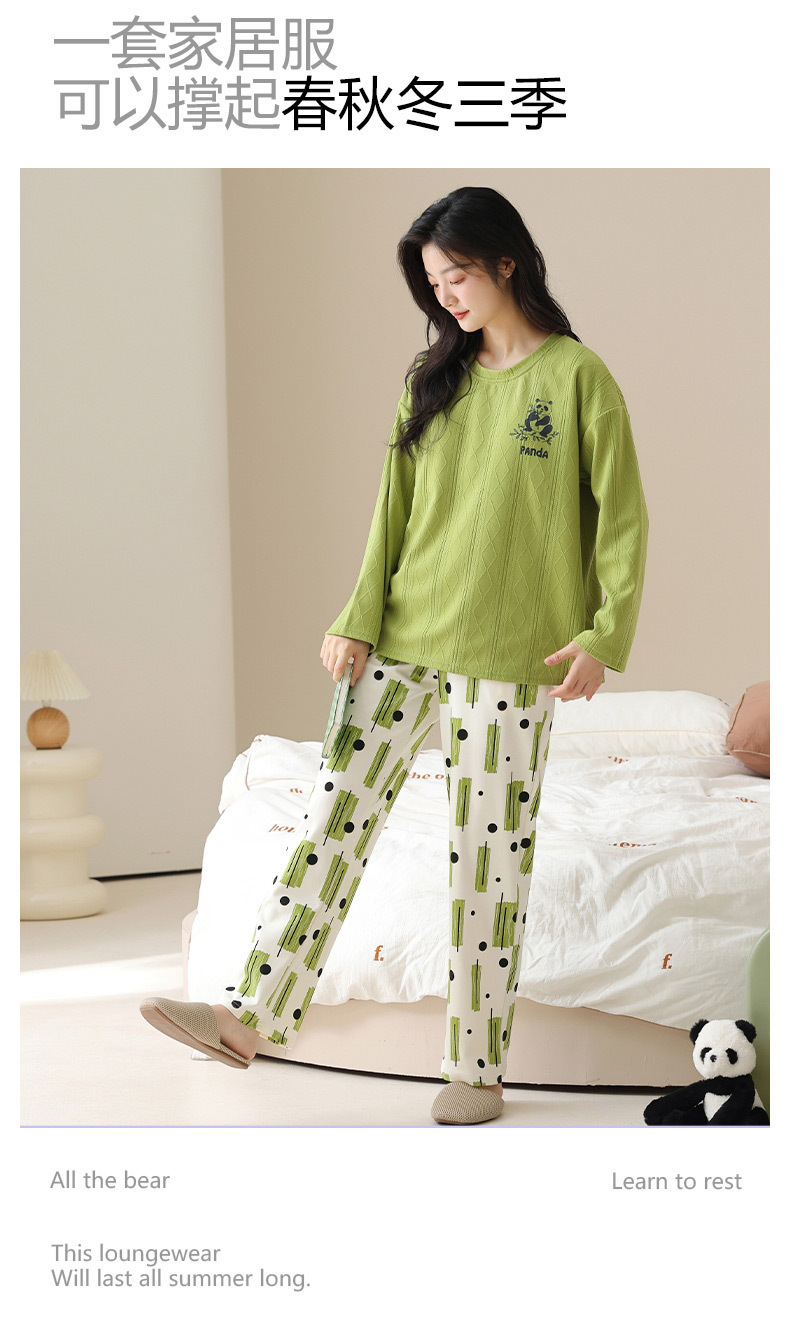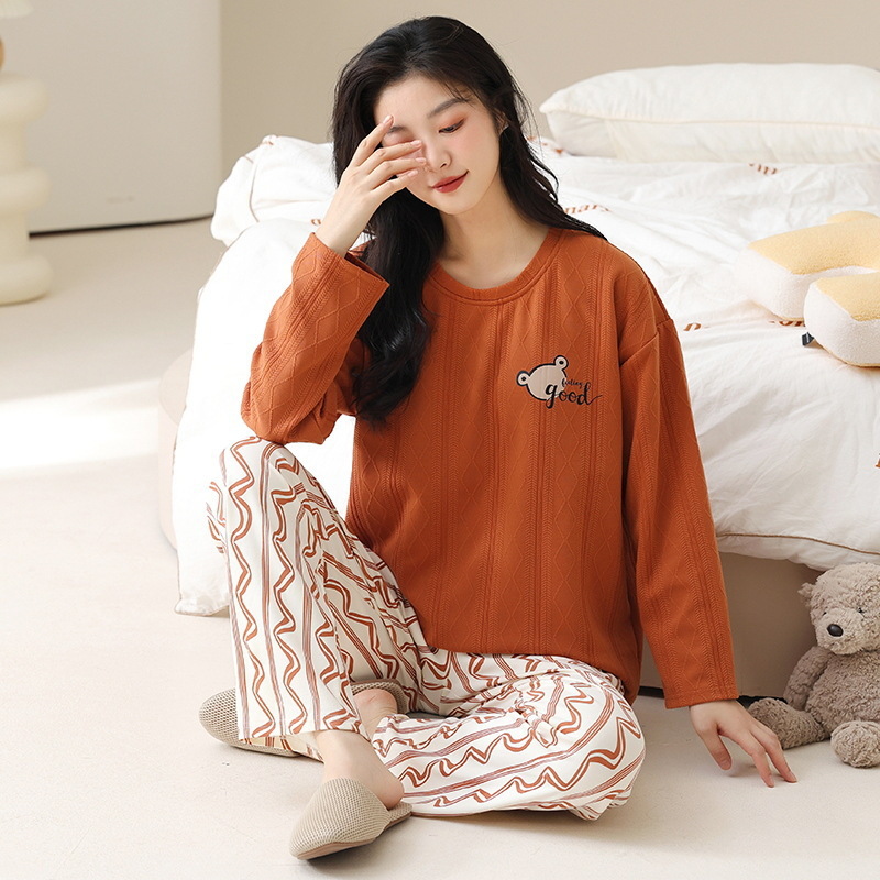 新款卡通睡衣女秋冬长袖睡衣带胸垫高颜值舒适薄款外穿家居服套装