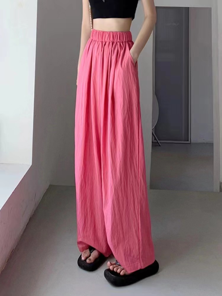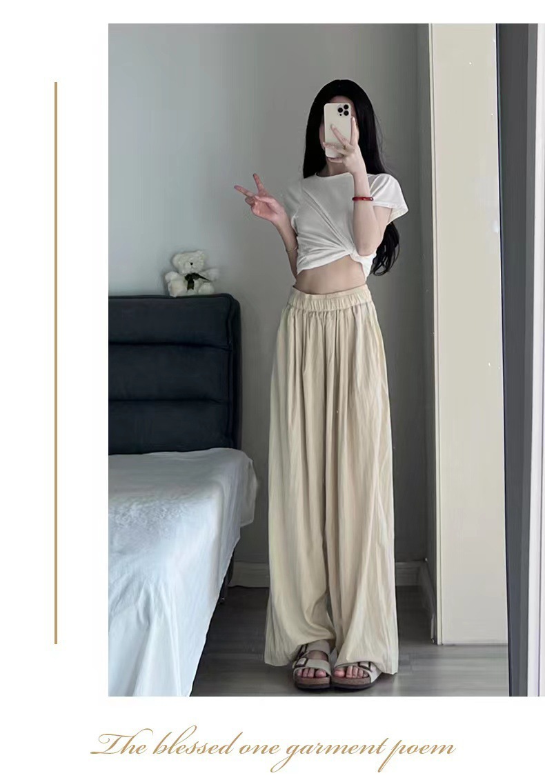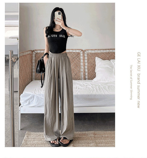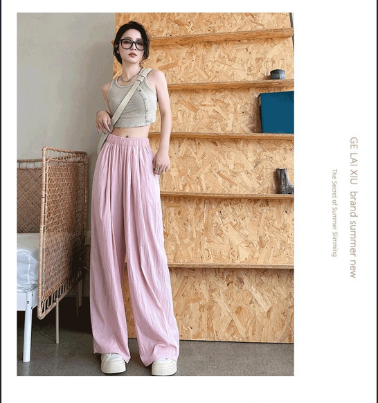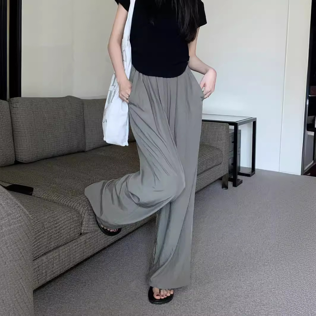 冰丝褶皱山本裤女春夏慵懒风休闲显瘦百搭裤子高腰垂感直筒阔腿裤