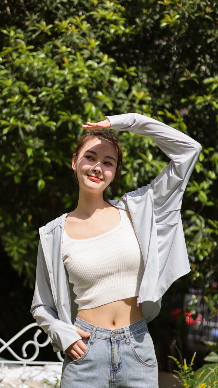 upf50+黑胶帽檐防晒衣女斗篷披肩夏季瑜伽修身原纱型冰丝防晒服女