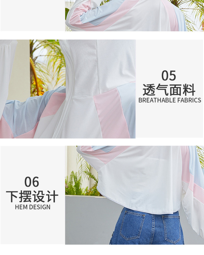 拼色防晒衣女士2024夏季连帽斗篷防晒服防紫外线冰丝防晒披肩罩衫