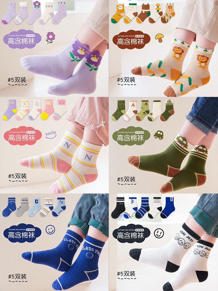 2024儿童袜秋季卡通宝宝袜子中大童男女童袜1-15岁时尚潮袜批发棉