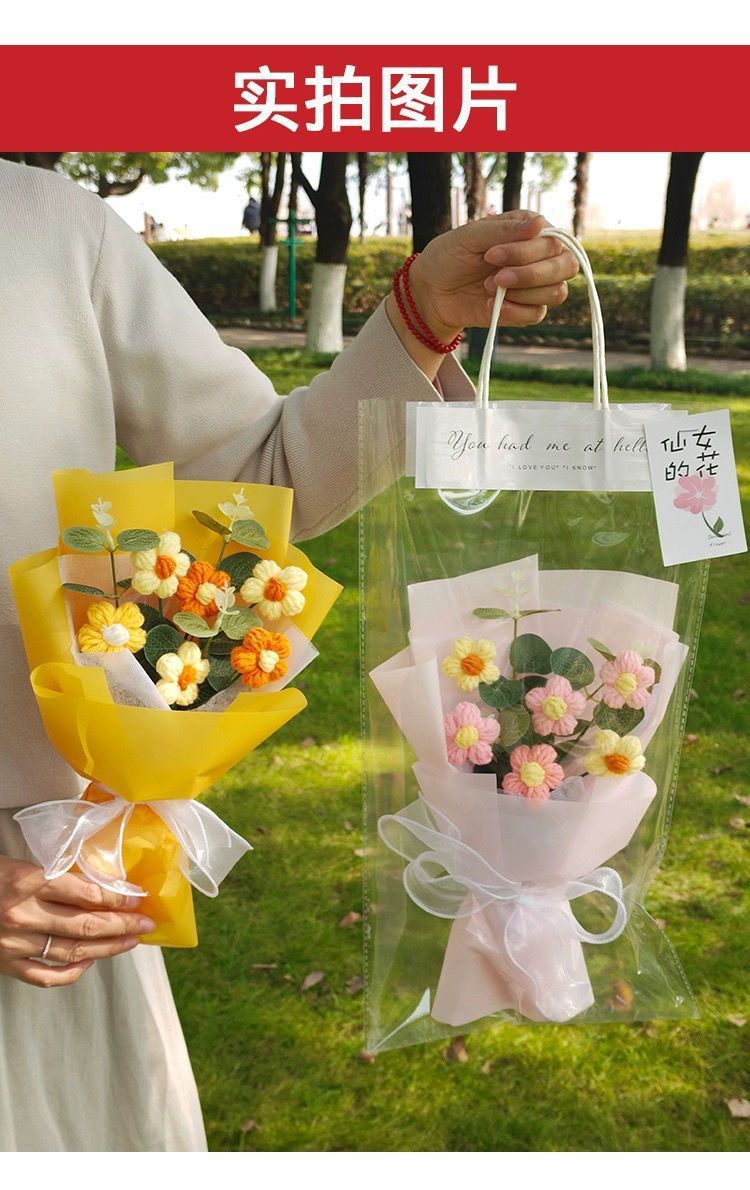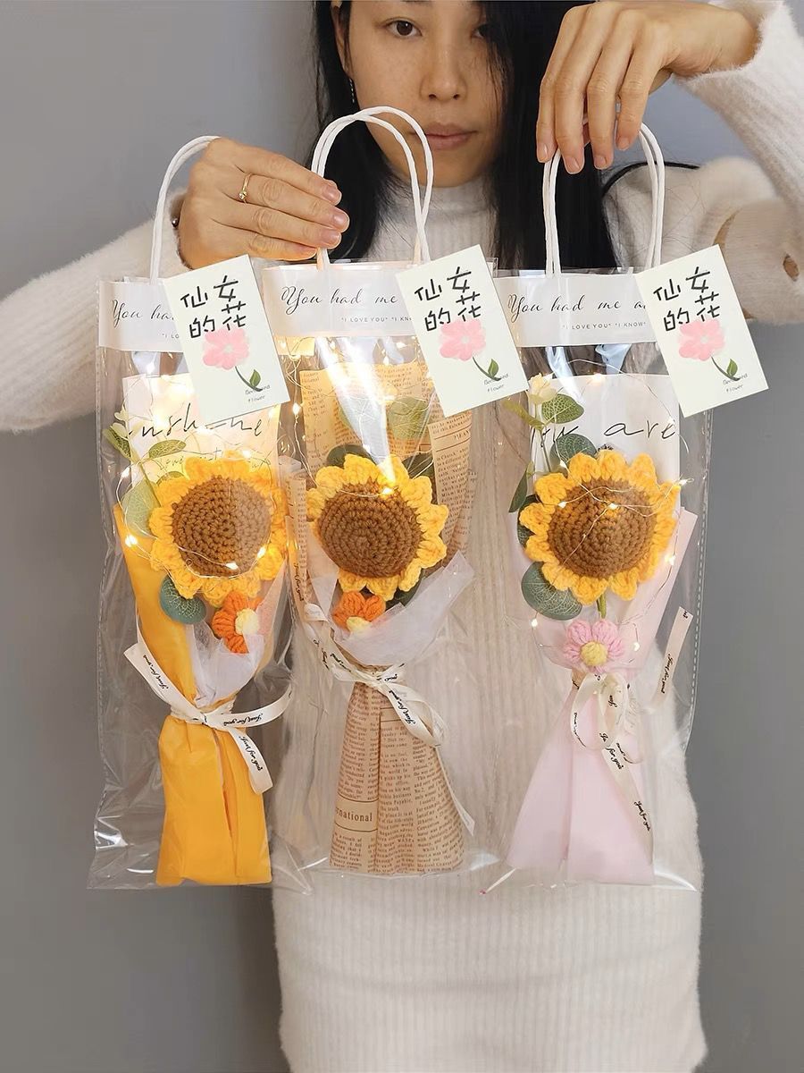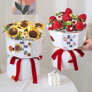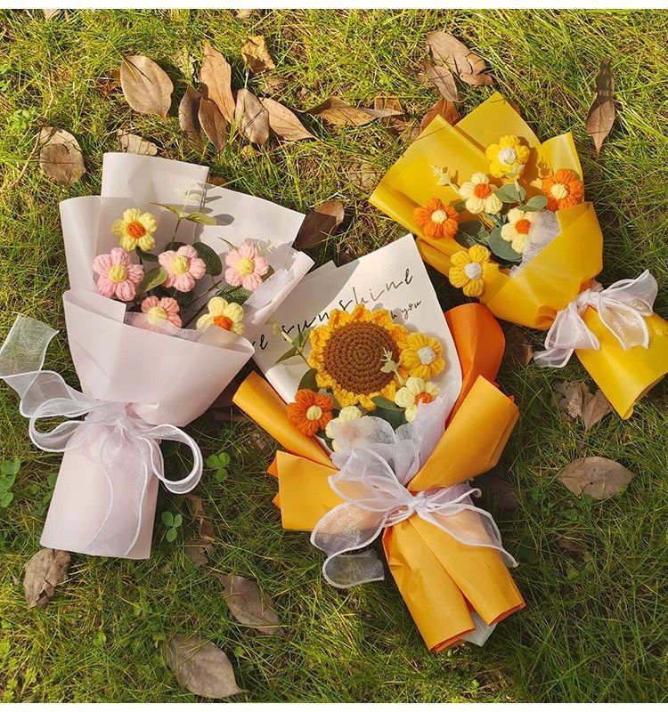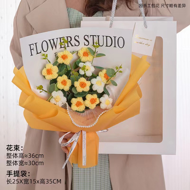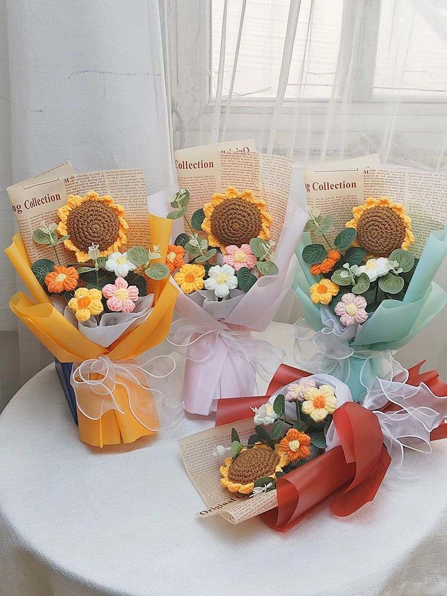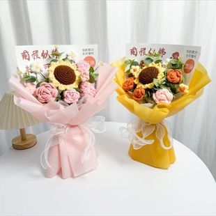 针织向日葵毛线花束花手工编织花束女生闺蜜生日礼物手捧花