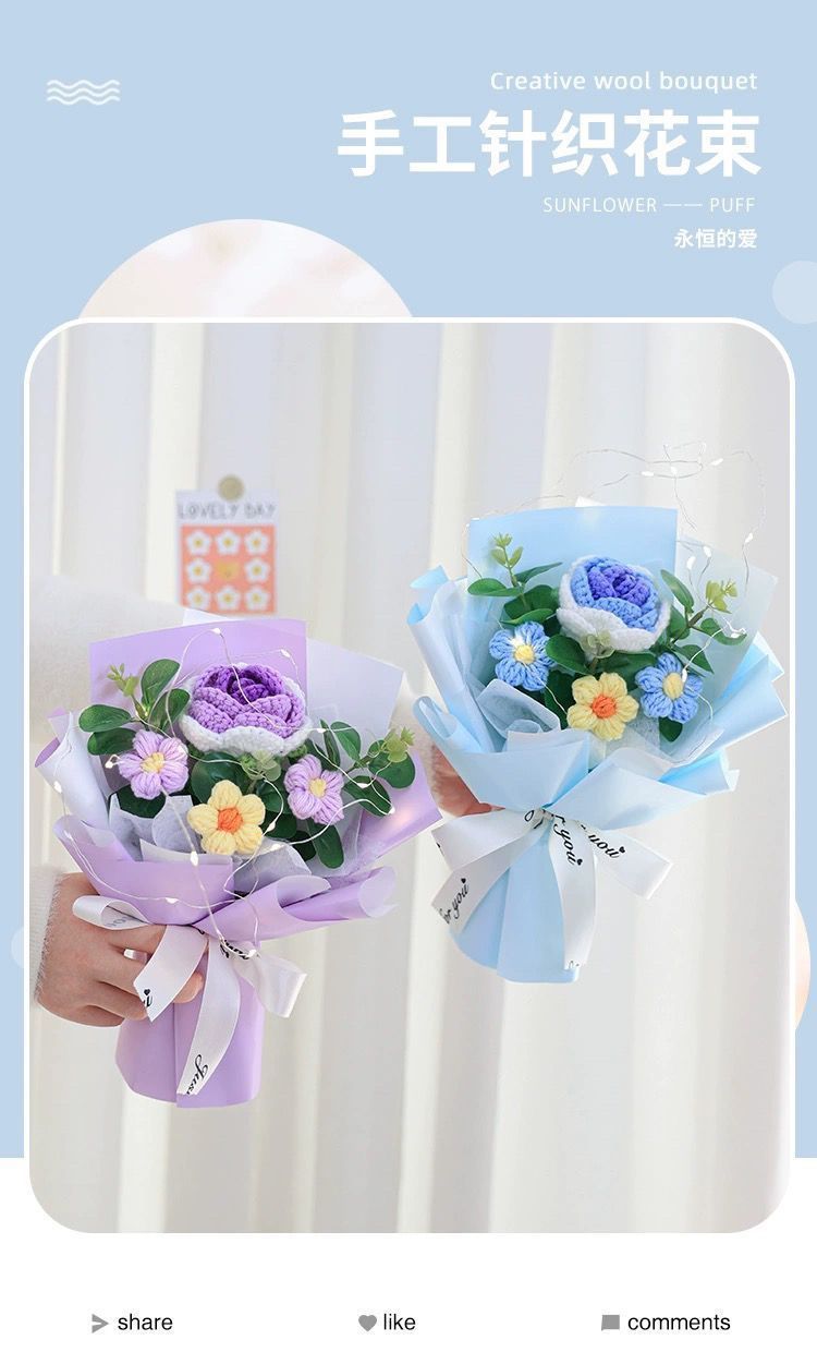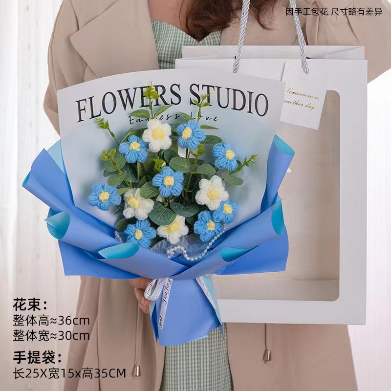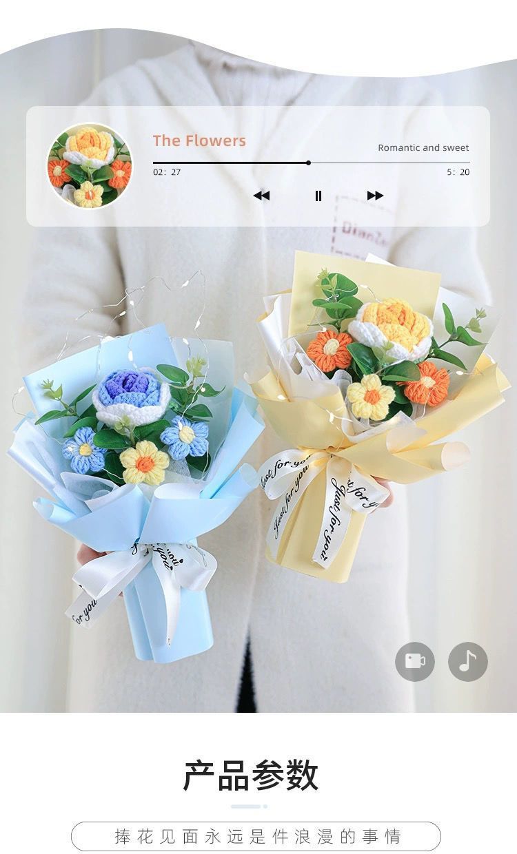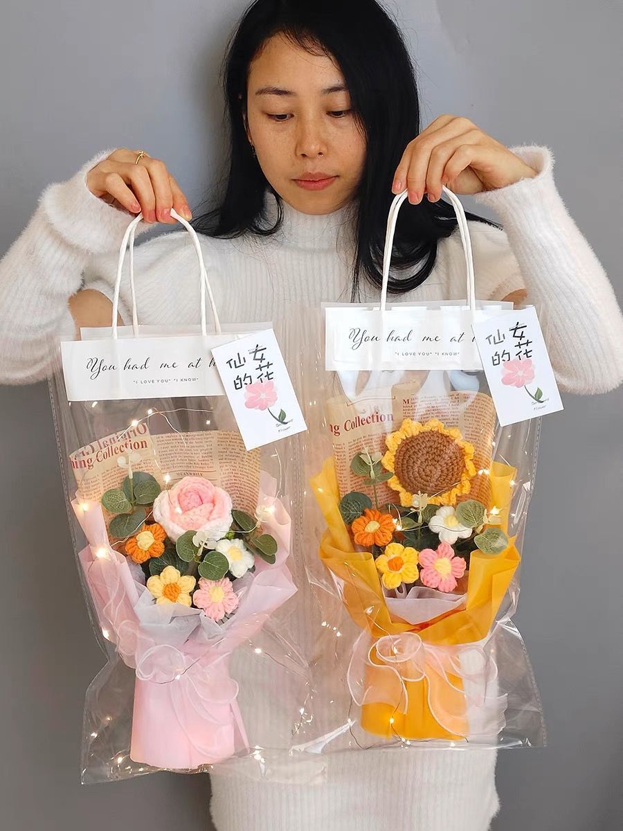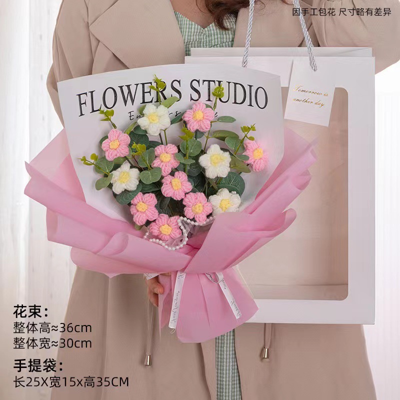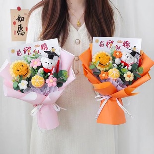 针织向日葵毛线花束花手工编织花束女生闺蜜生日礼物手捧花
