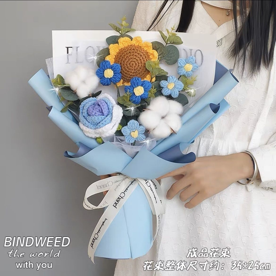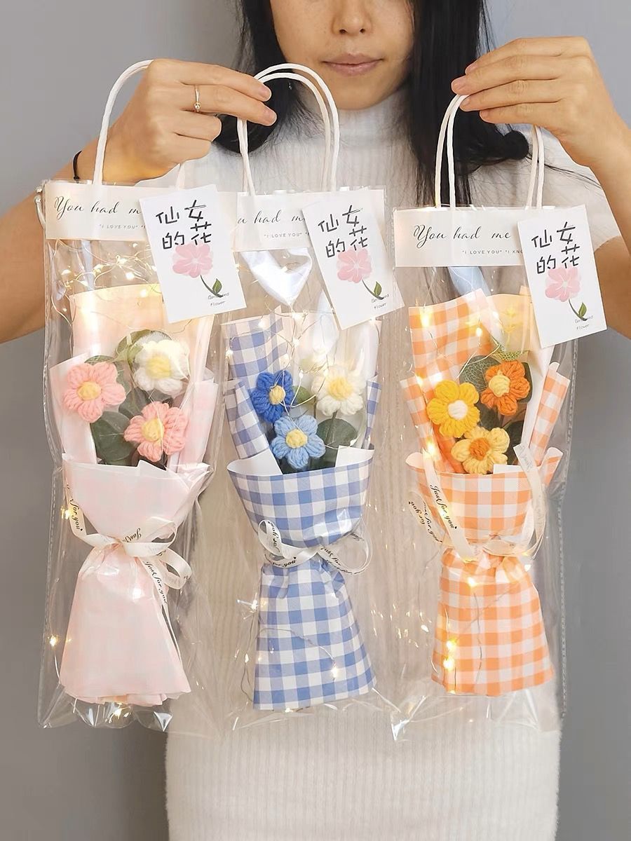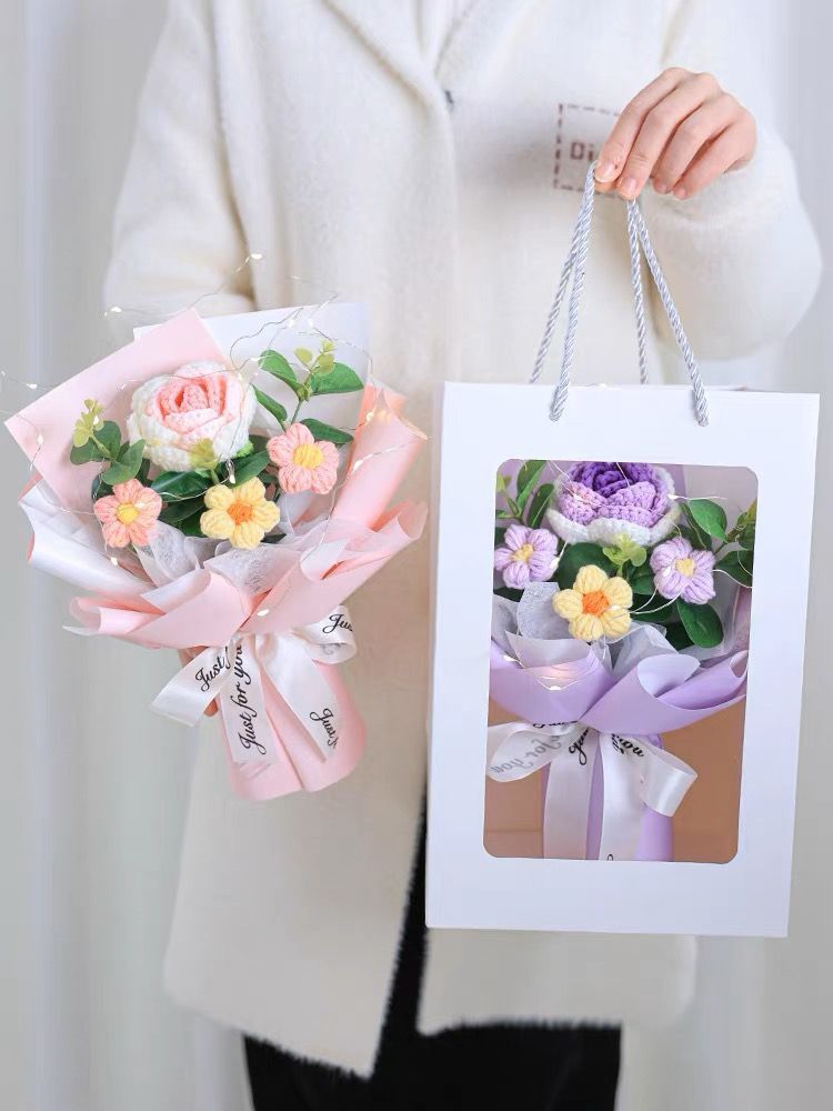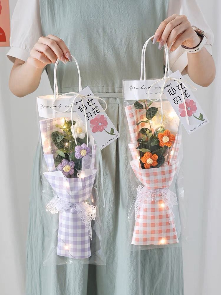 针织向日葵毛线花束花手工编织花束女生闺蜜生日礼物手捧花