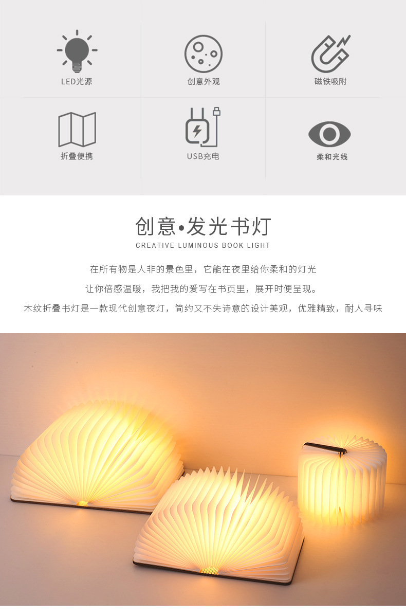 跨境折叠书本灯创意小夜灯企业文化节日礼品客卧室台灯七彩氛围灯