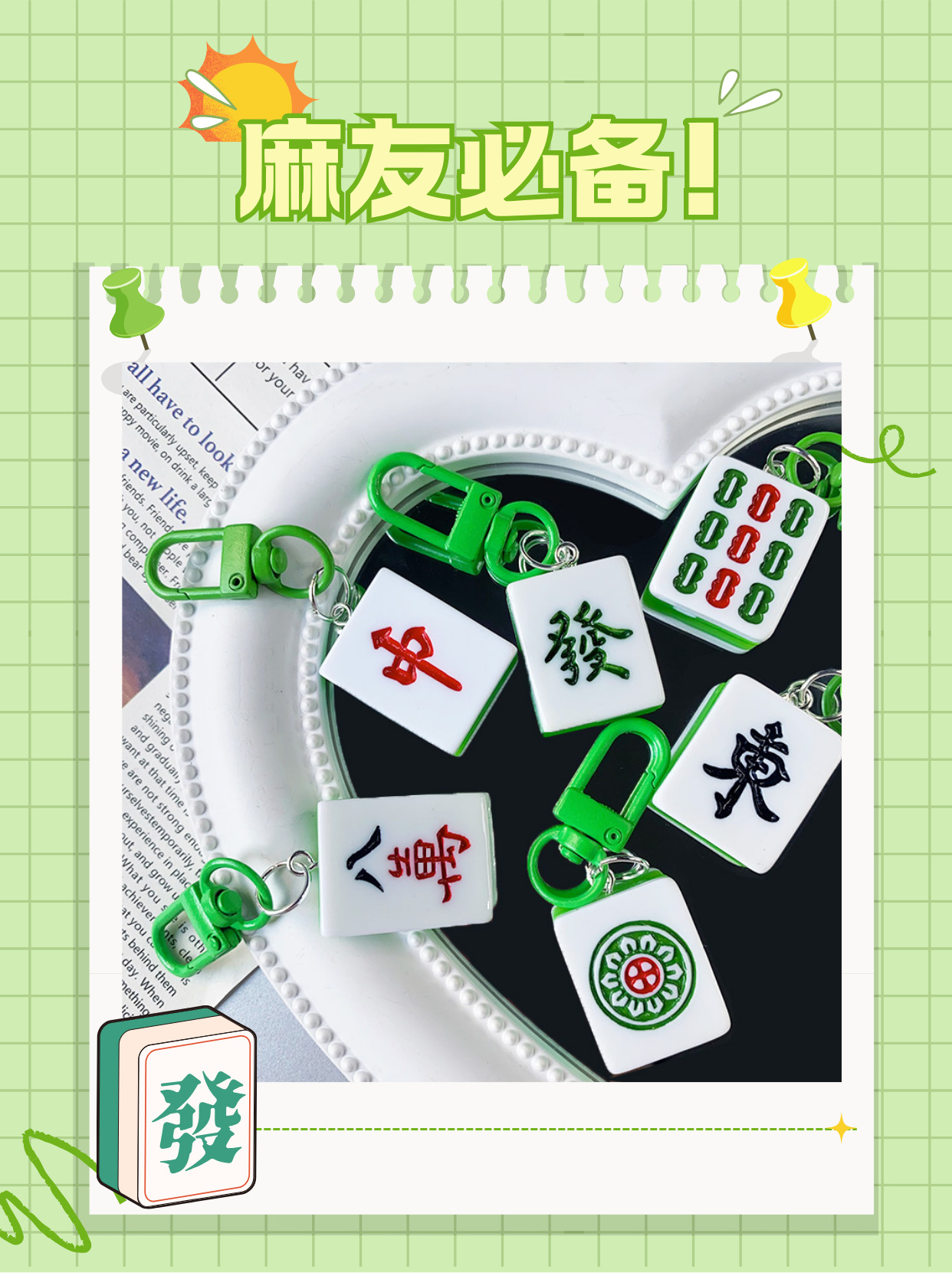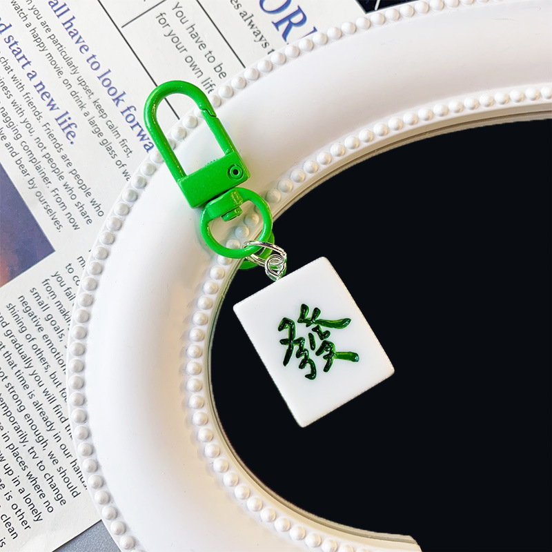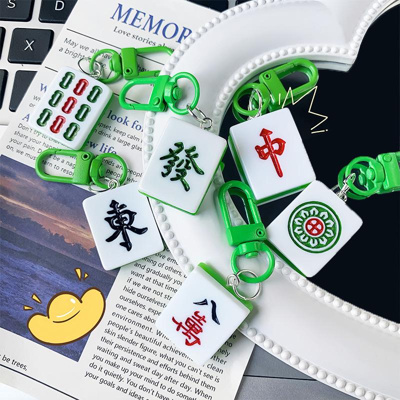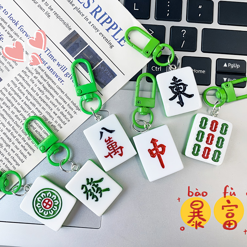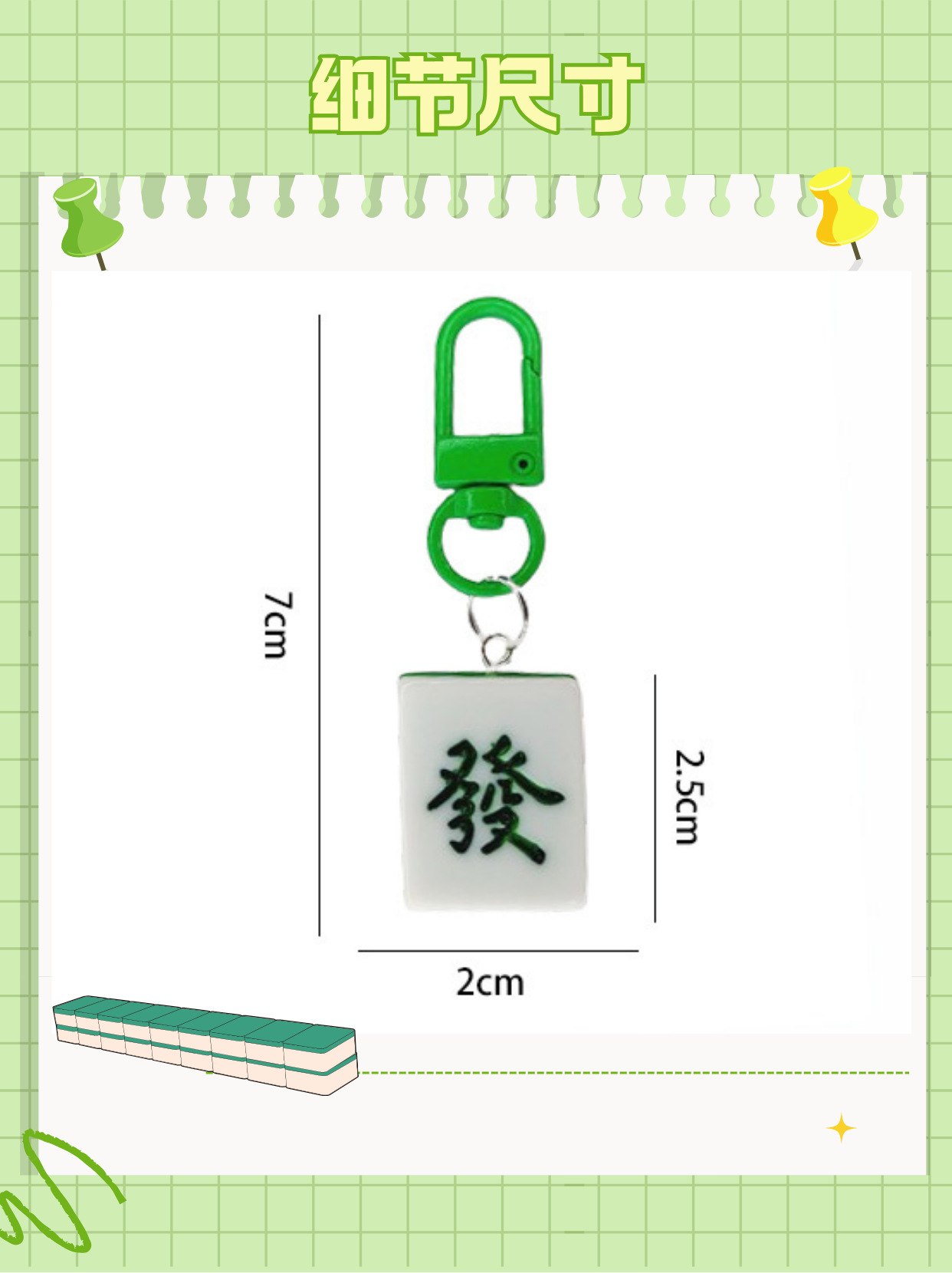 创意树脂麻将钥匙扣立体红中发财牌挂件卡包挂饰diy配件小礼品