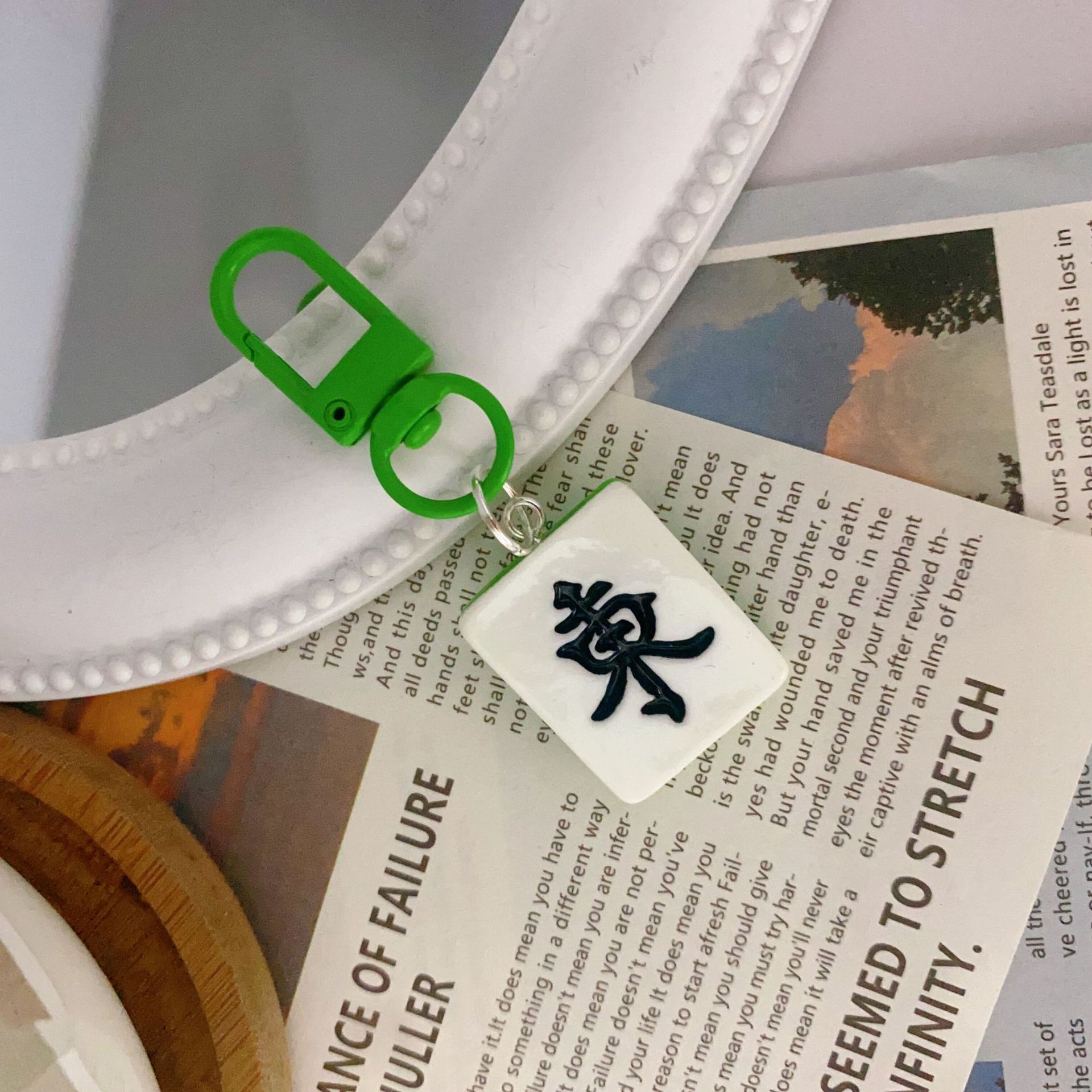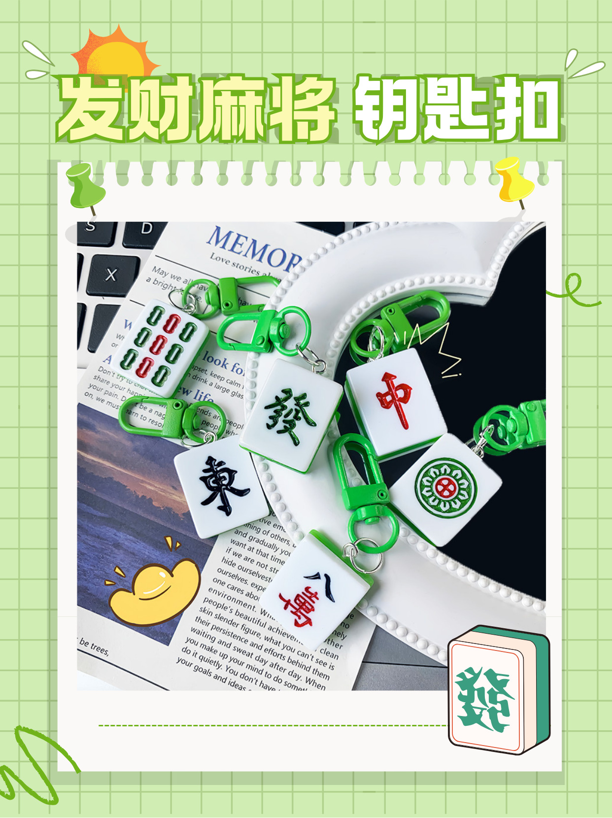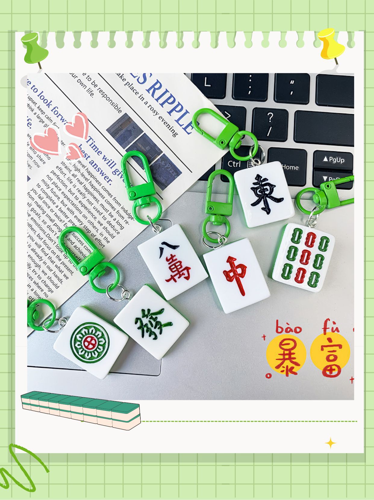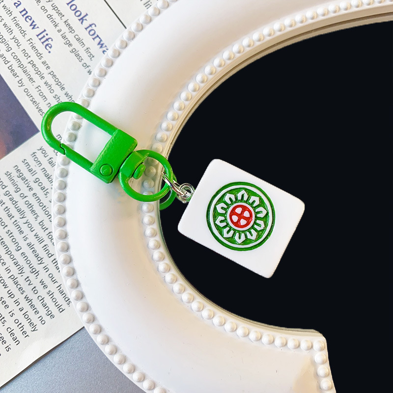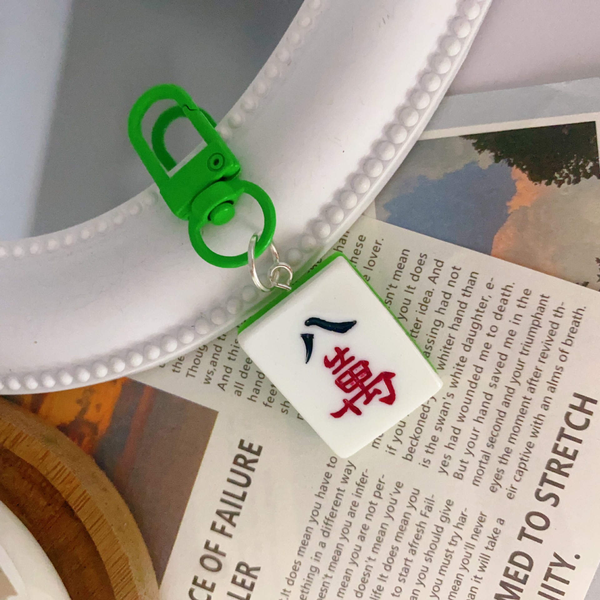 创意树脂麻将钥匙扣立体红中发财牌挂件卡包挂饰diy配件小礼品