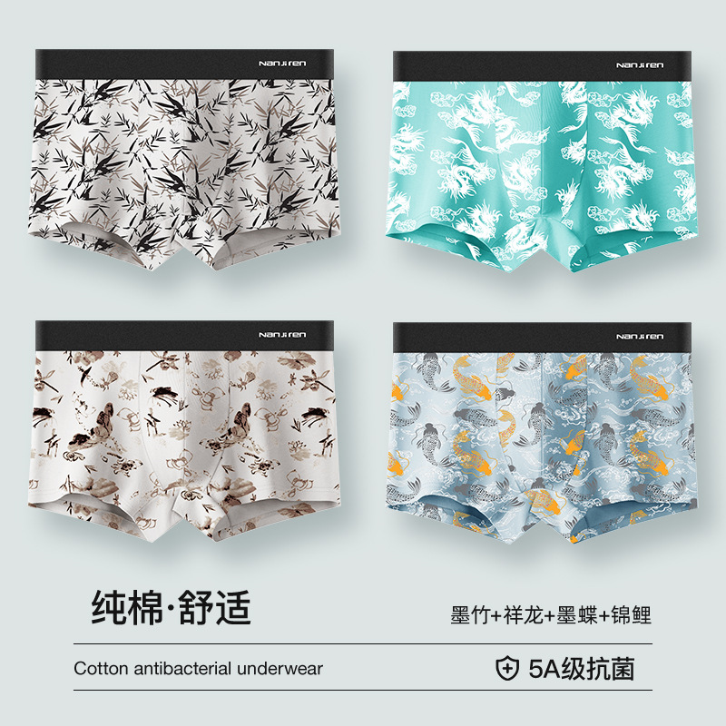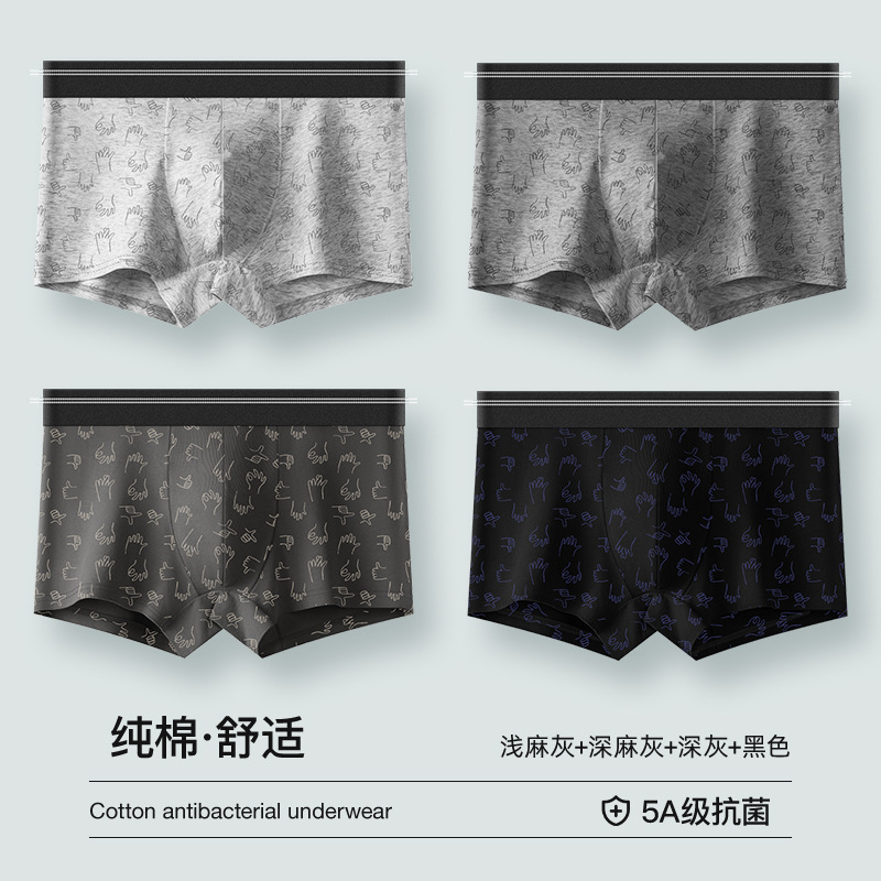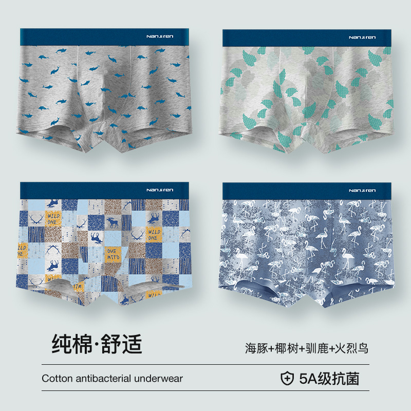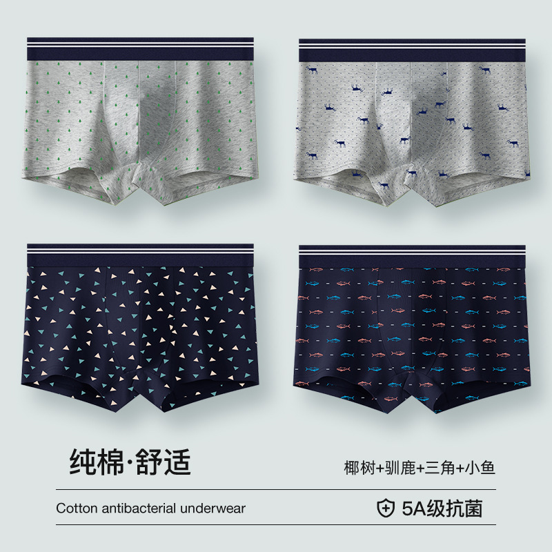 男士内裤男纯棉平角裤透气印花夏季大码短裤衩潮流四角裤头