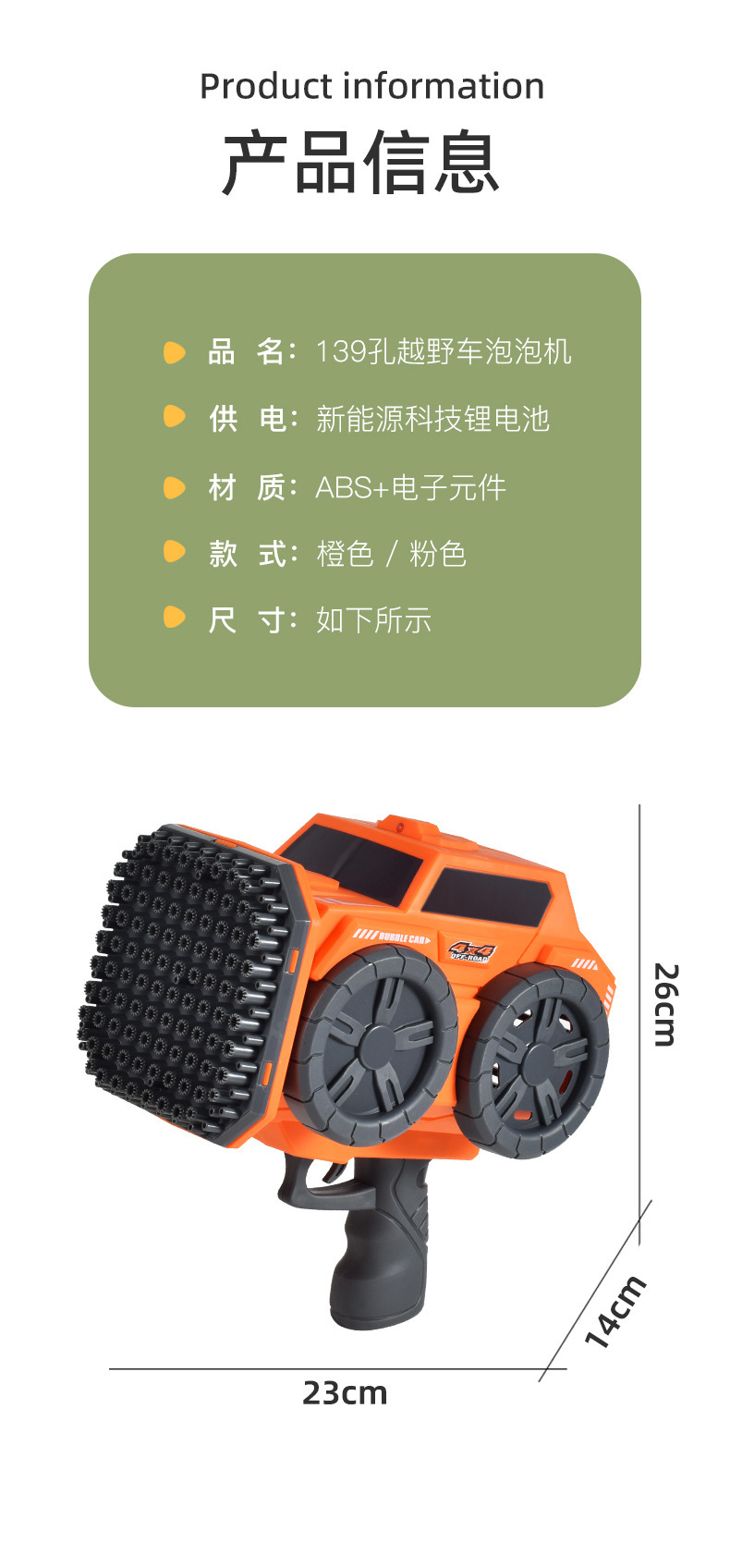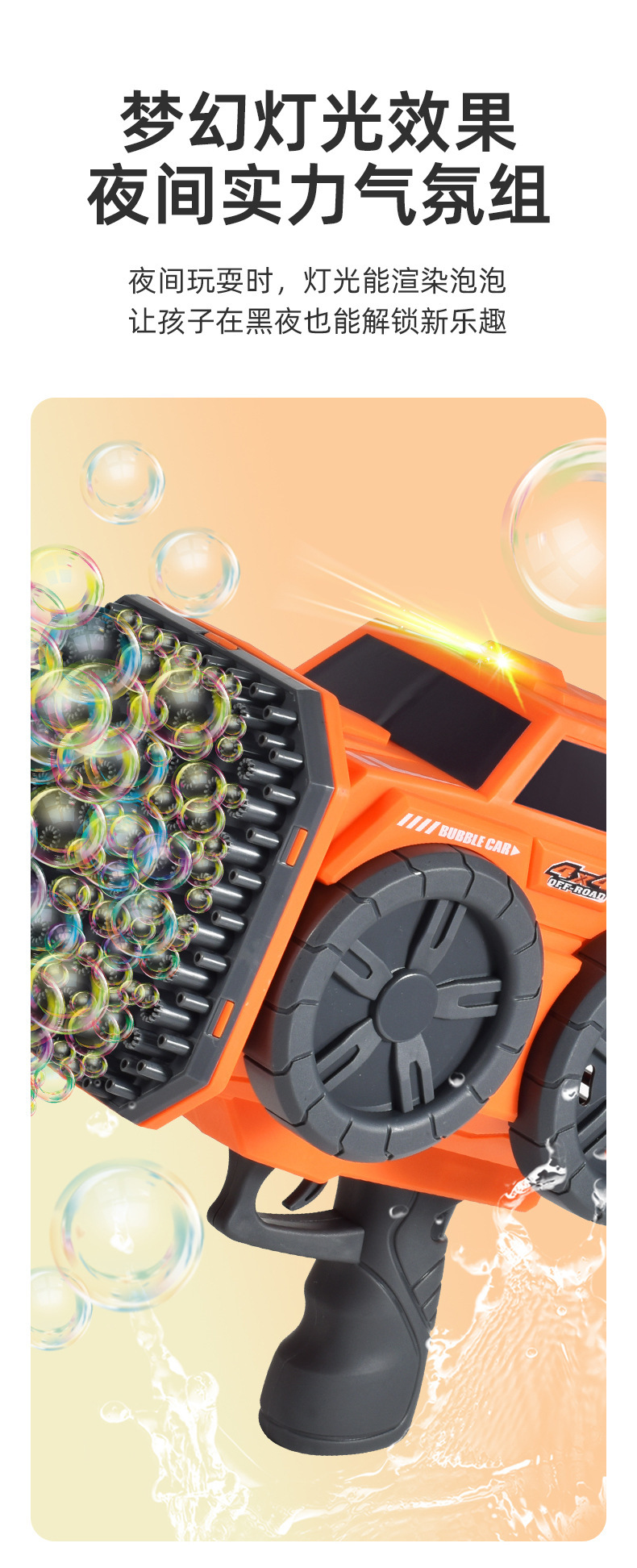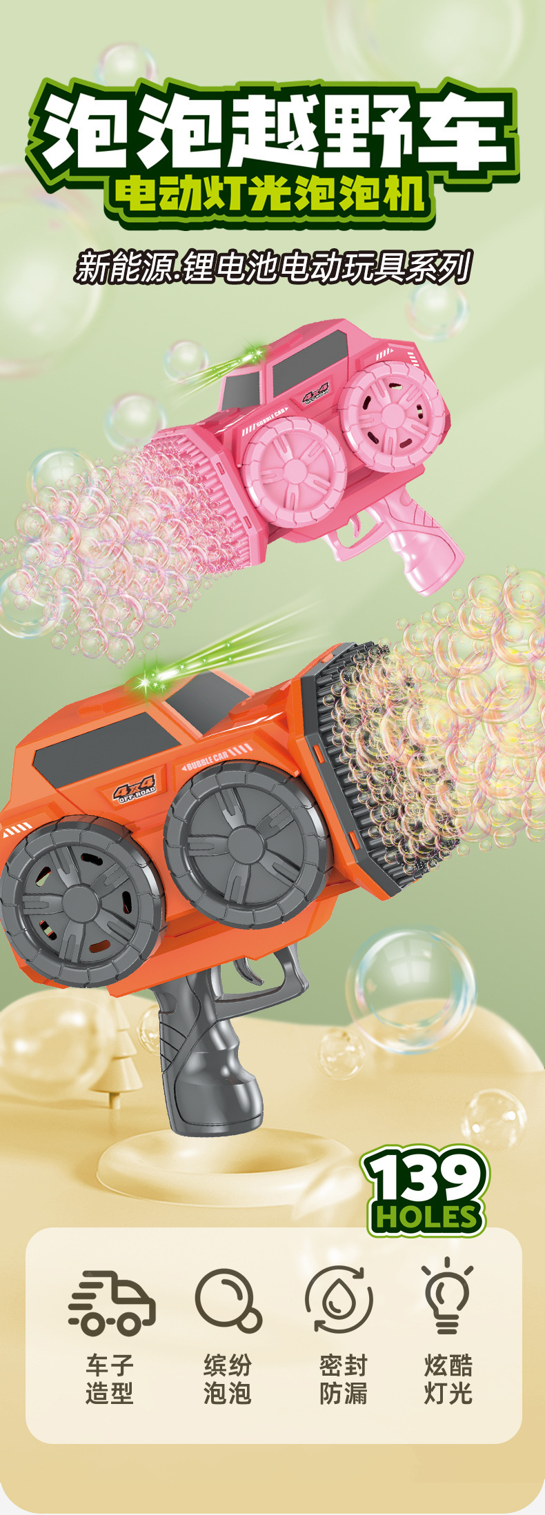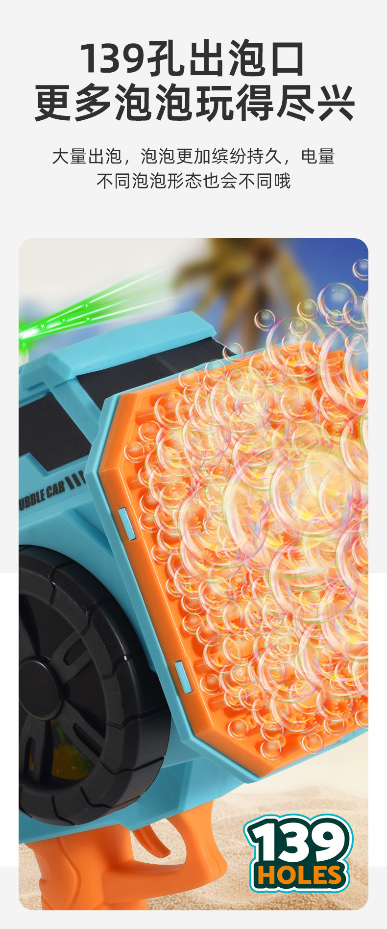 跨境新款139孔越野车电动泡泡机带灯光烟花手持泡泡机摆摊礼品
