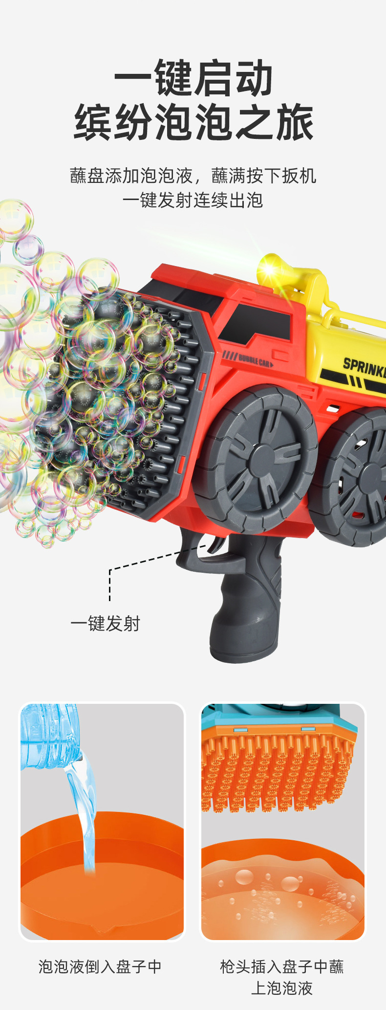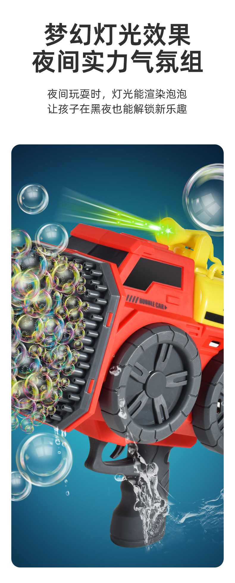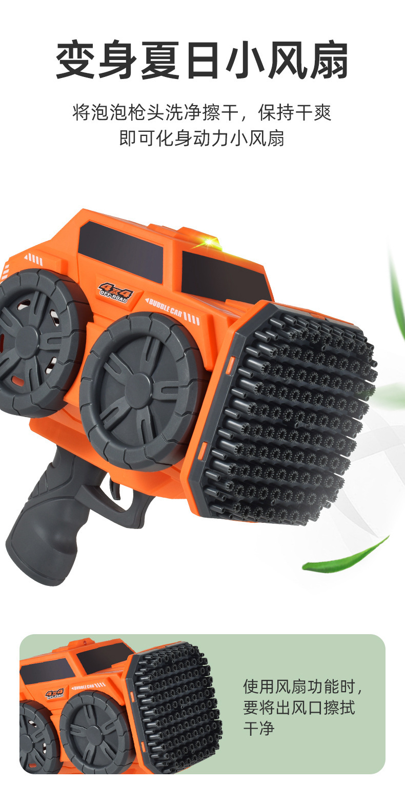 跨境新款139孔越野车电动泡泡机带灯光烟花手持泡泡机摆摊礼品
