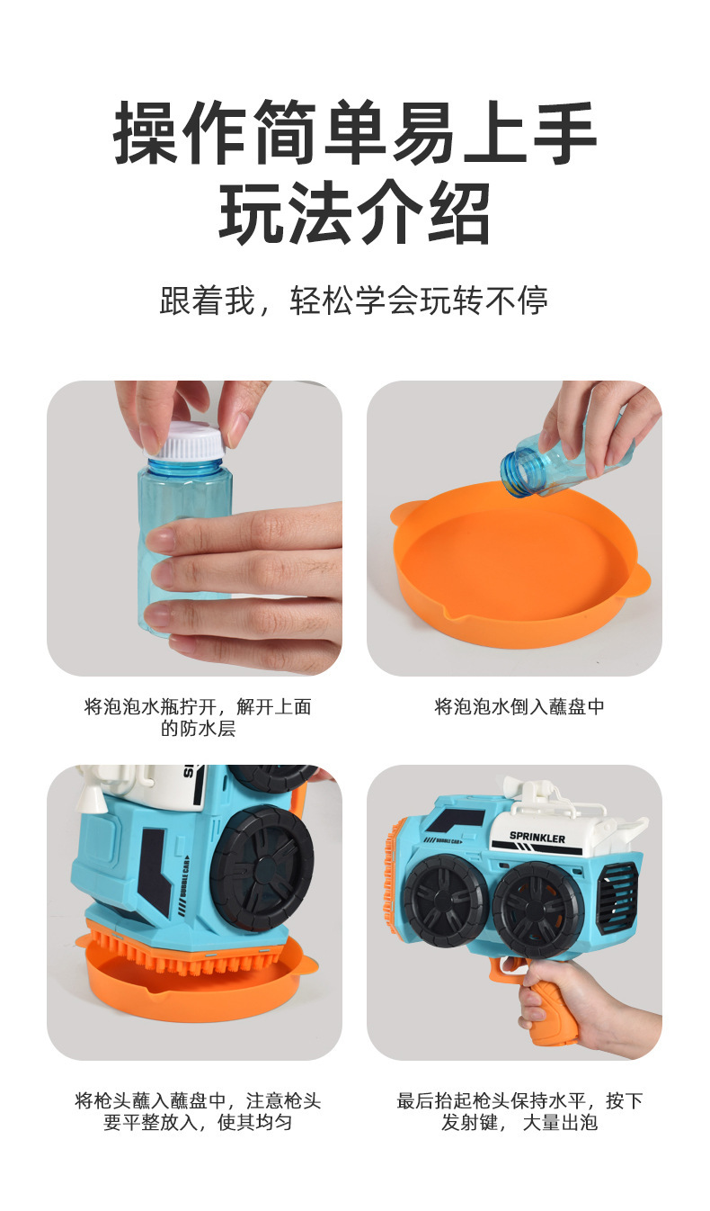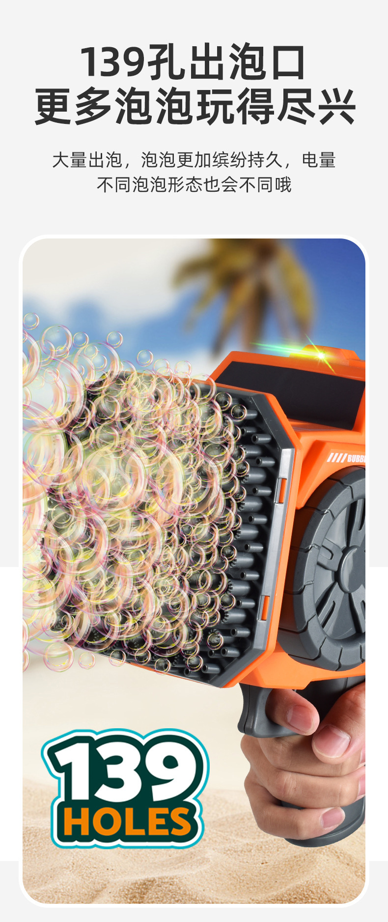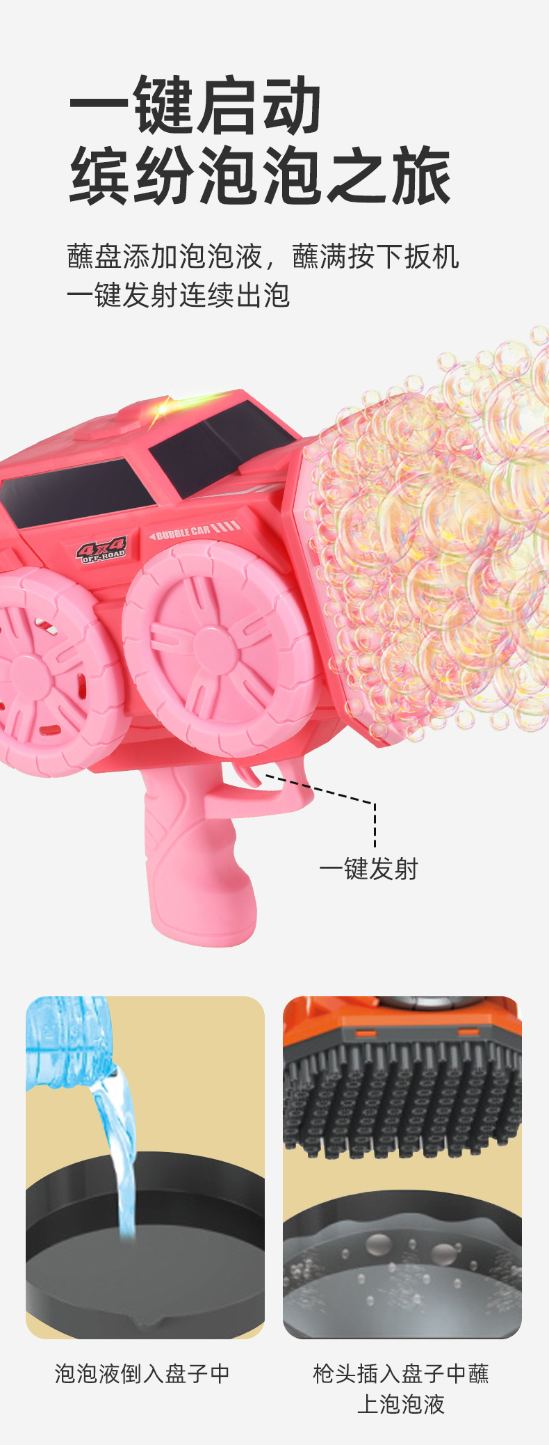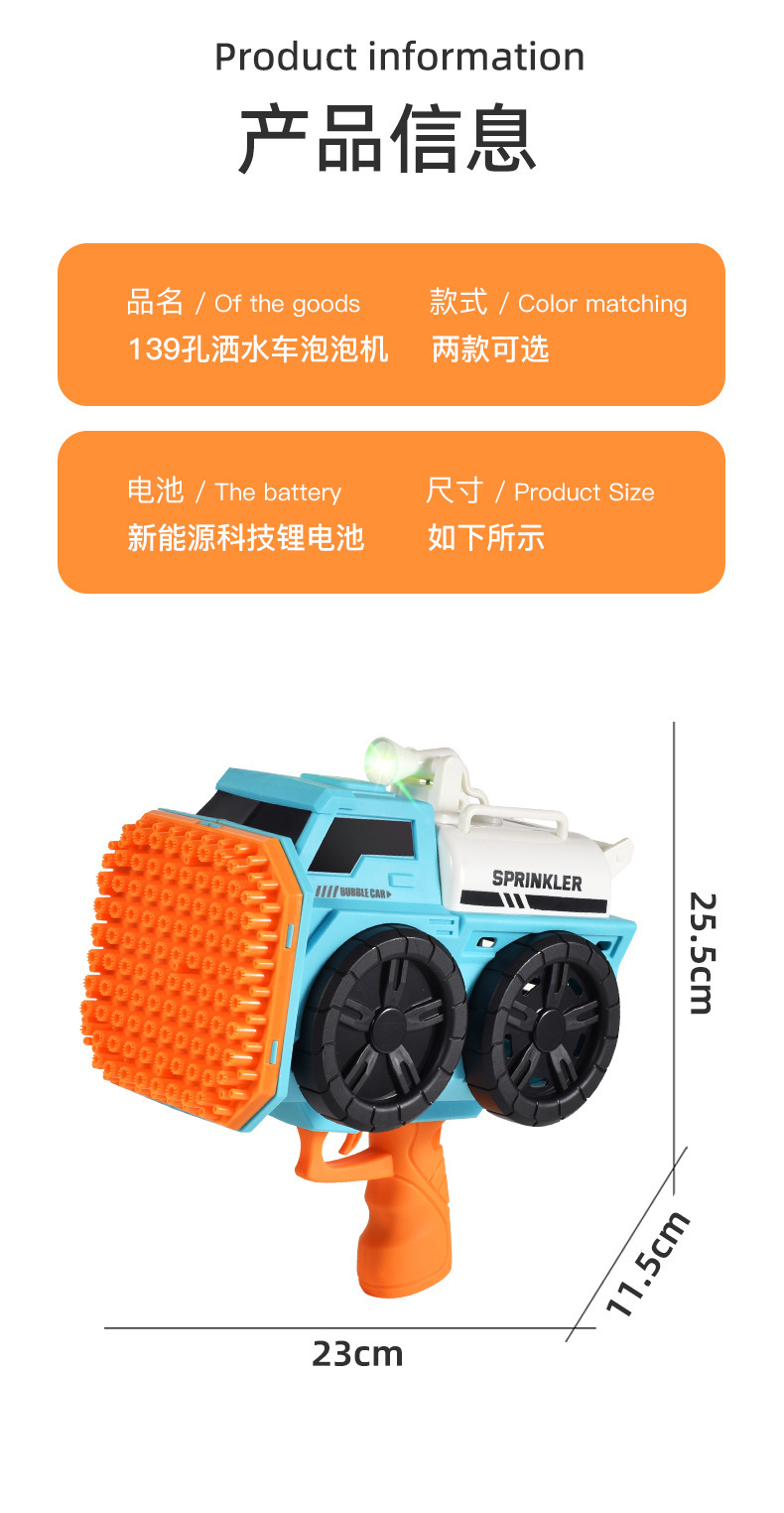 跨境新款139孔越野车电动泡泡机带灯光烟花手持泡泡机摆摊礼品