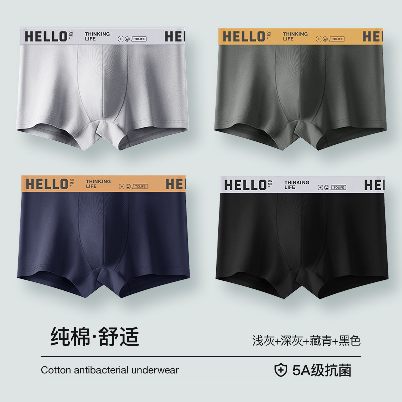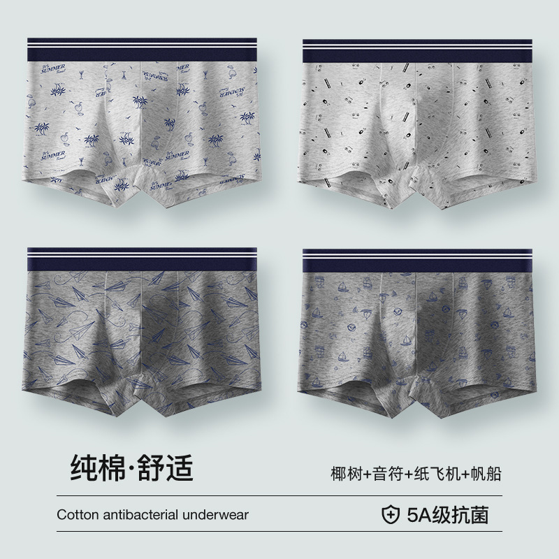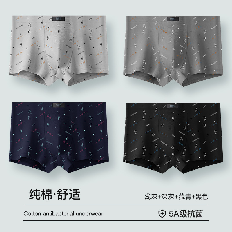 男士纯棉内裤平角裤透气夏季大码短裤衩潮流四角裤头代发
