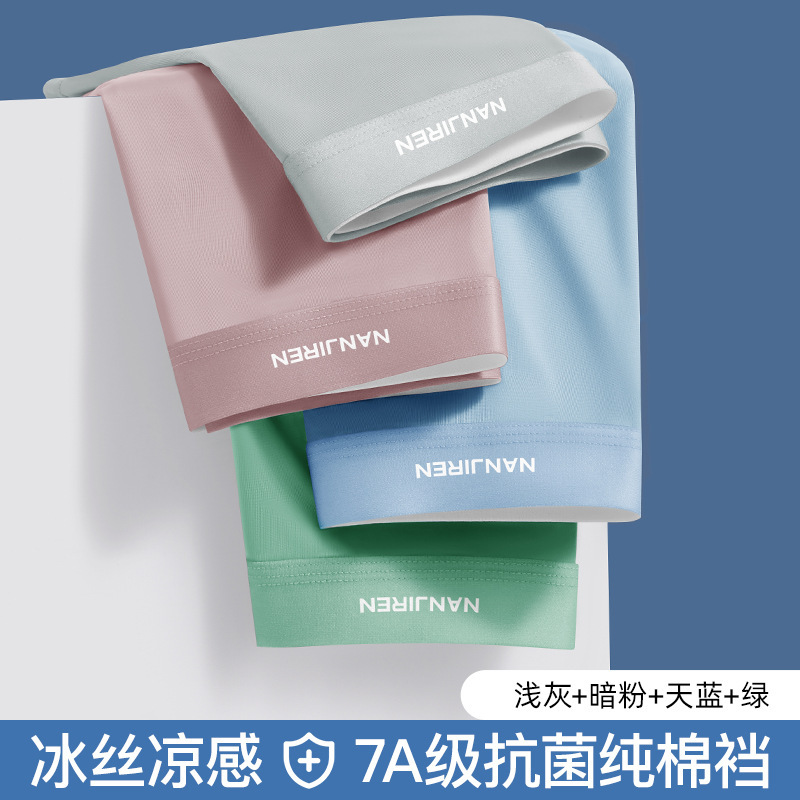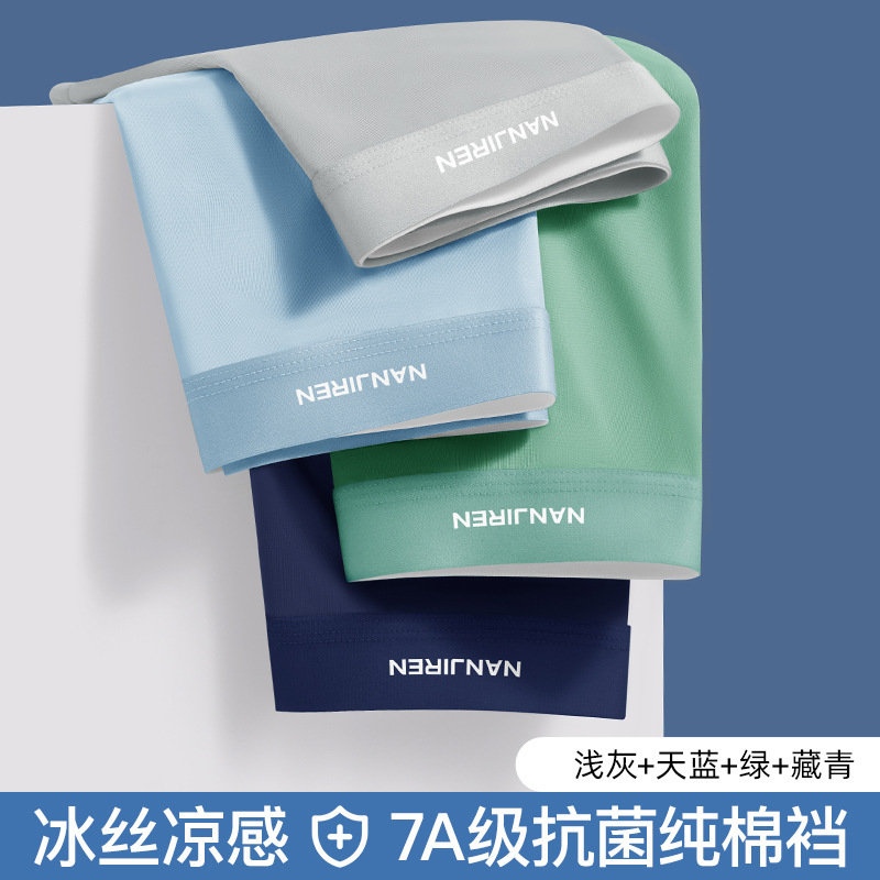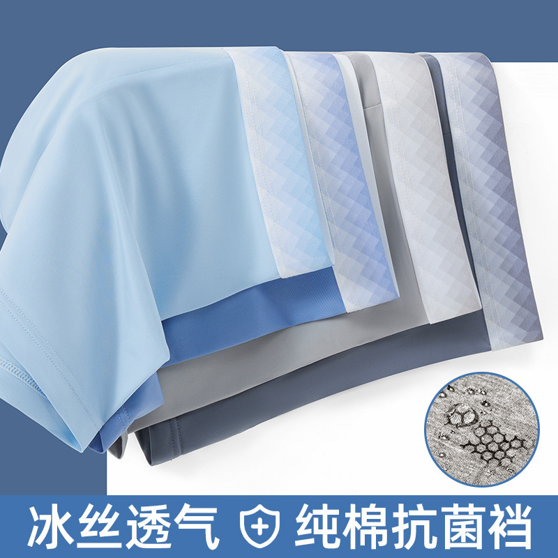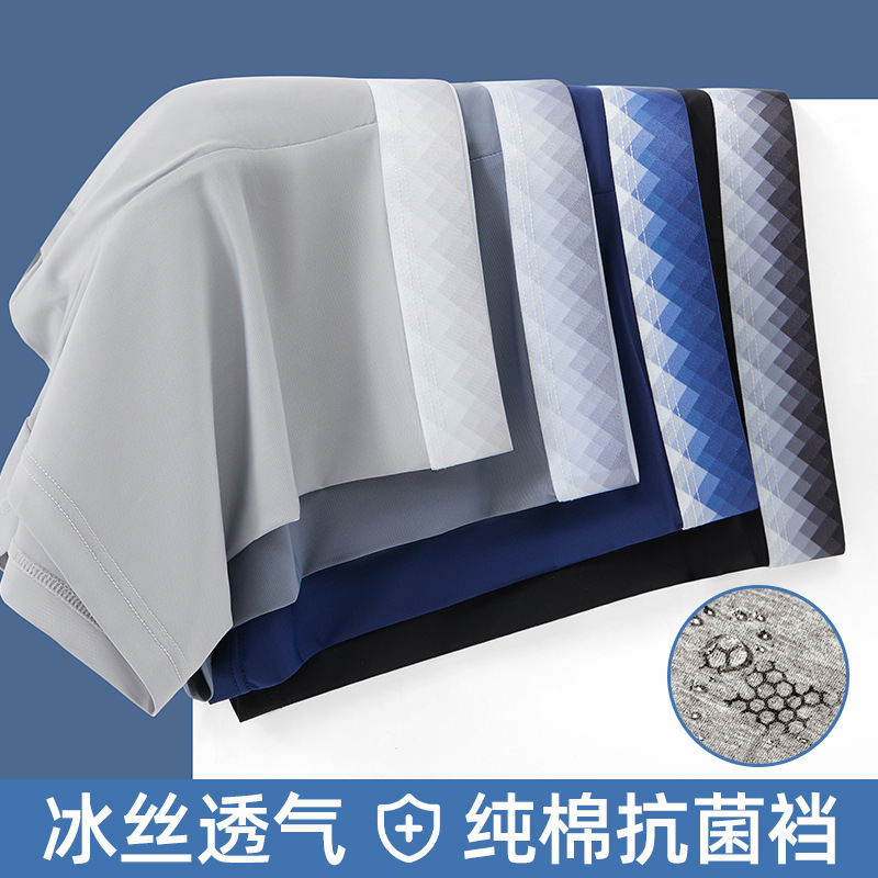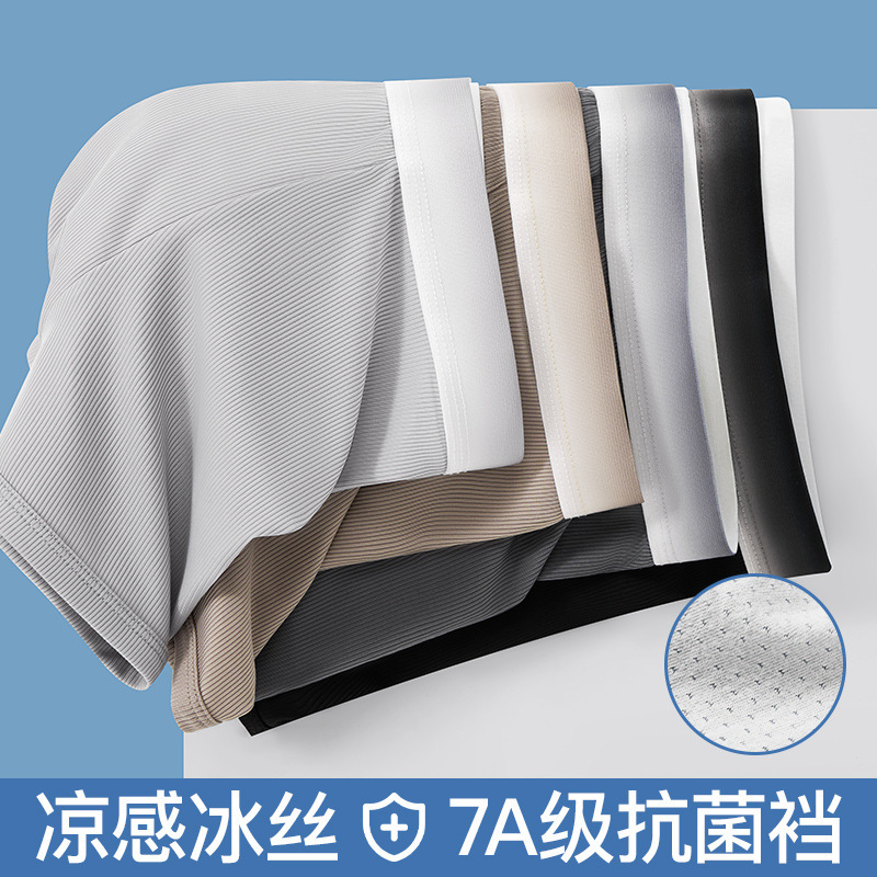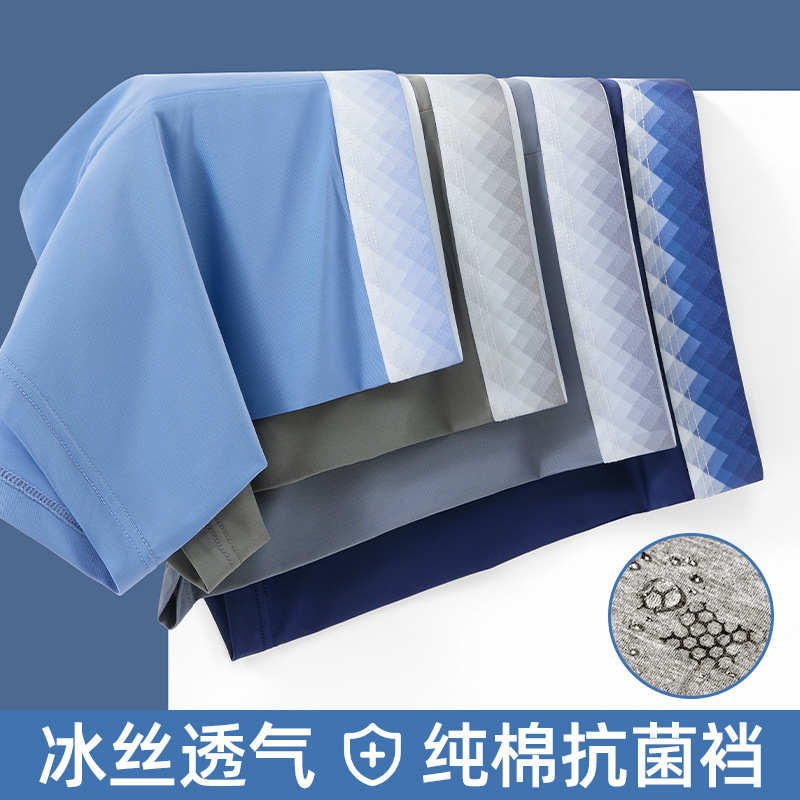 冰丝凉感内裤男1菌无痕夏季薄款透气平角无侧缝四角短裤头