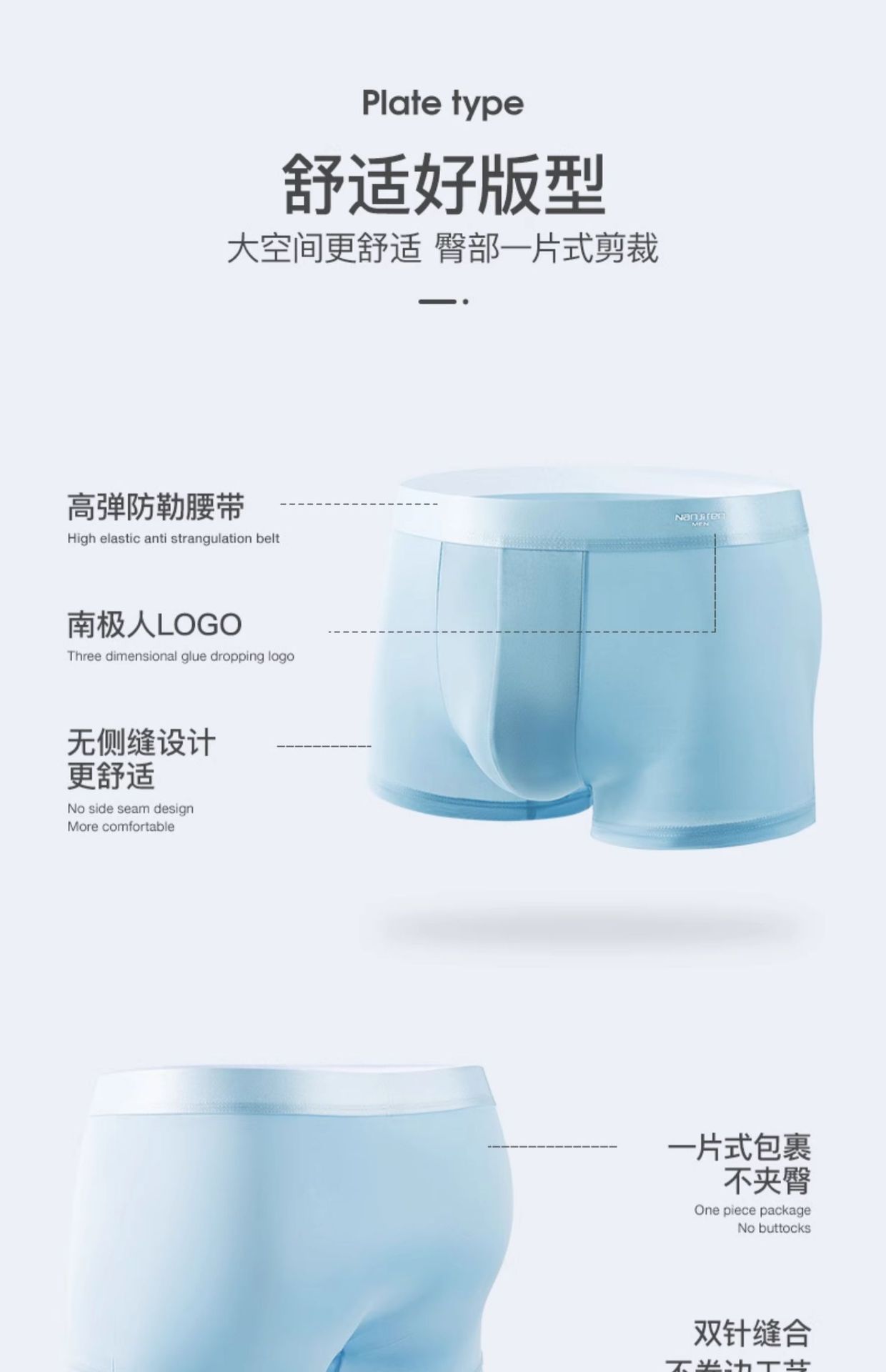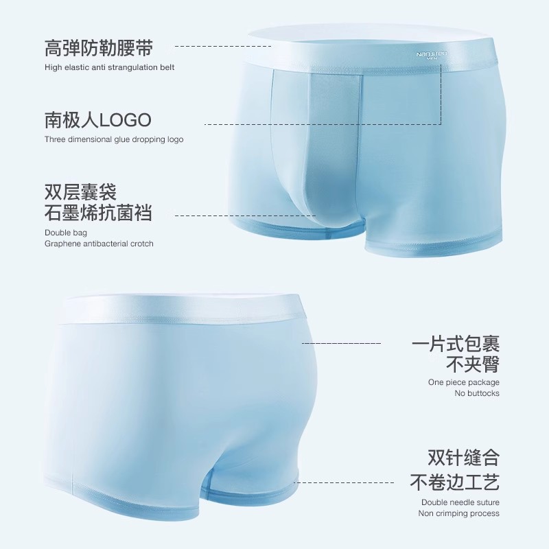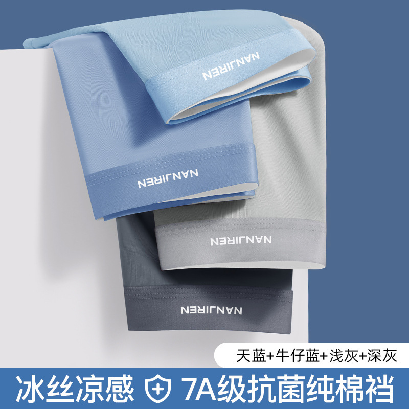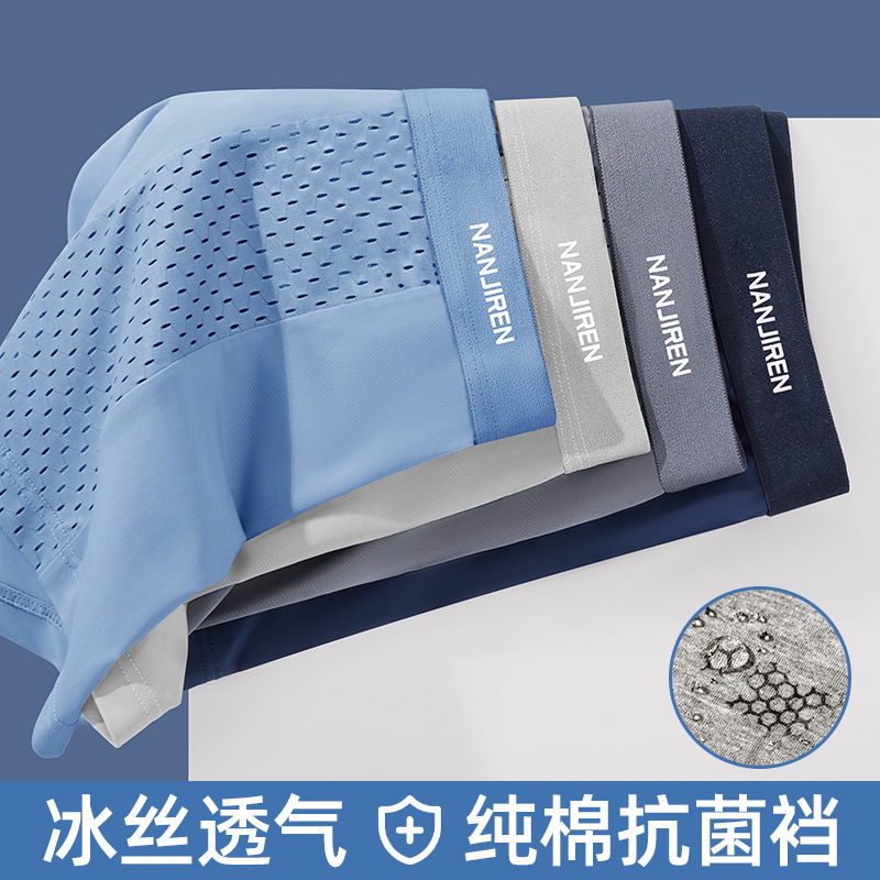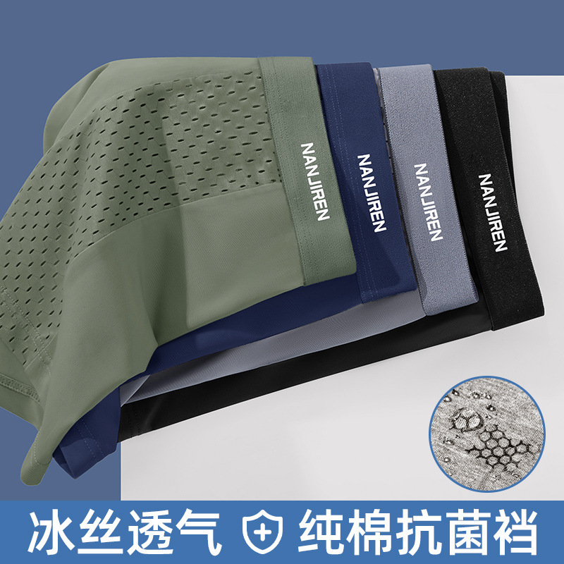 冰丝凉感内裤男1菌无痕夏季薄款透气平角无侧缝四角短裤头