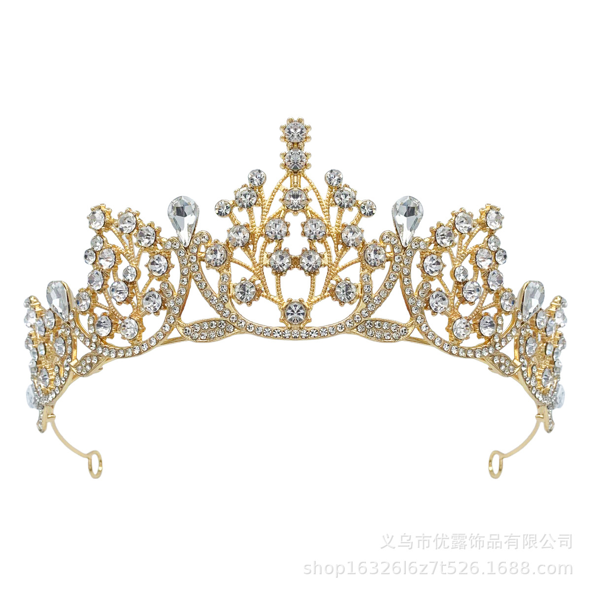 跨境新娘皇冠头饰水滴钻女十八岁成人公主选美王冠结婚纱发饰新款