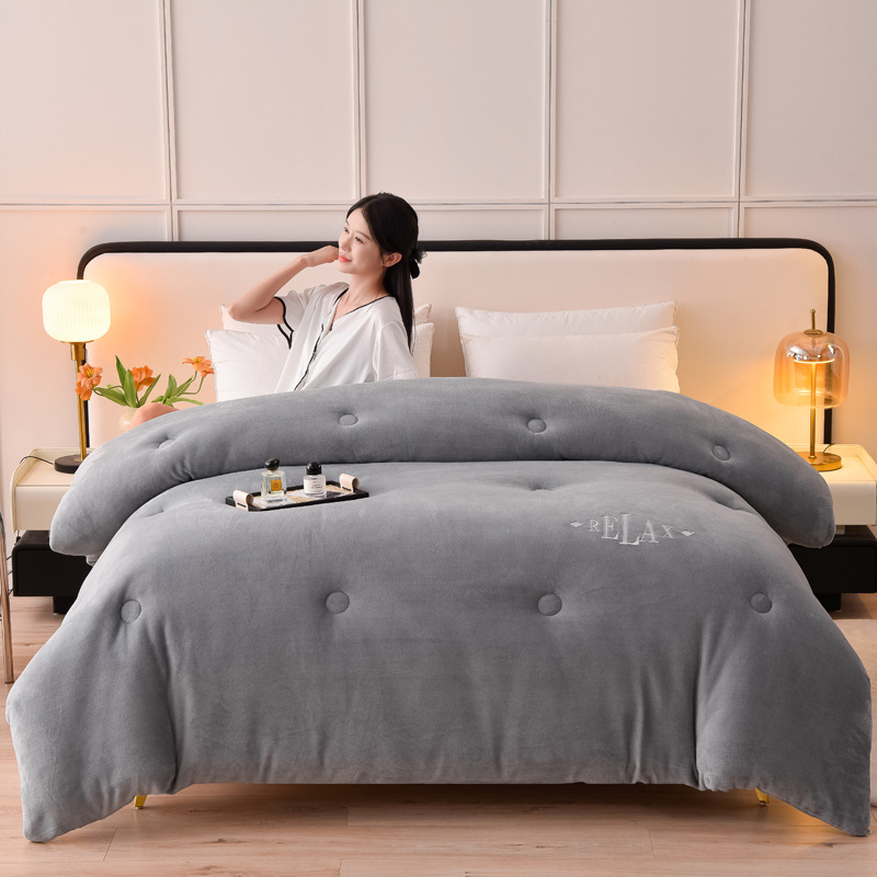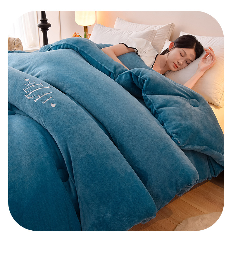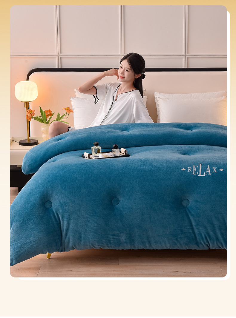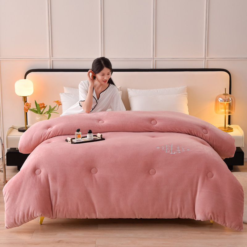冬季加厚保暖牛奶绒冬被高端双面绒刺绣棉被被芯宿舍单人双人被子
