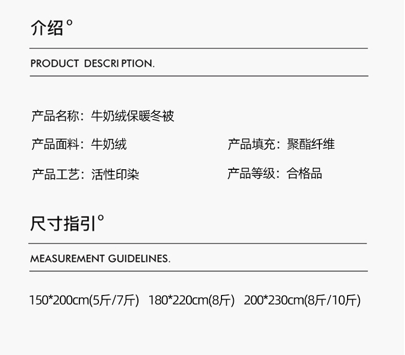 | 200 * 230cm about 4.00kg extra thick winter quilt(200*230cm约 8斤加厚冬被) | USD $19.78 | 8910 bed available |