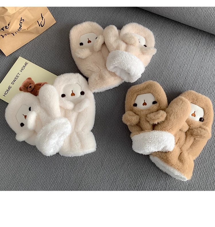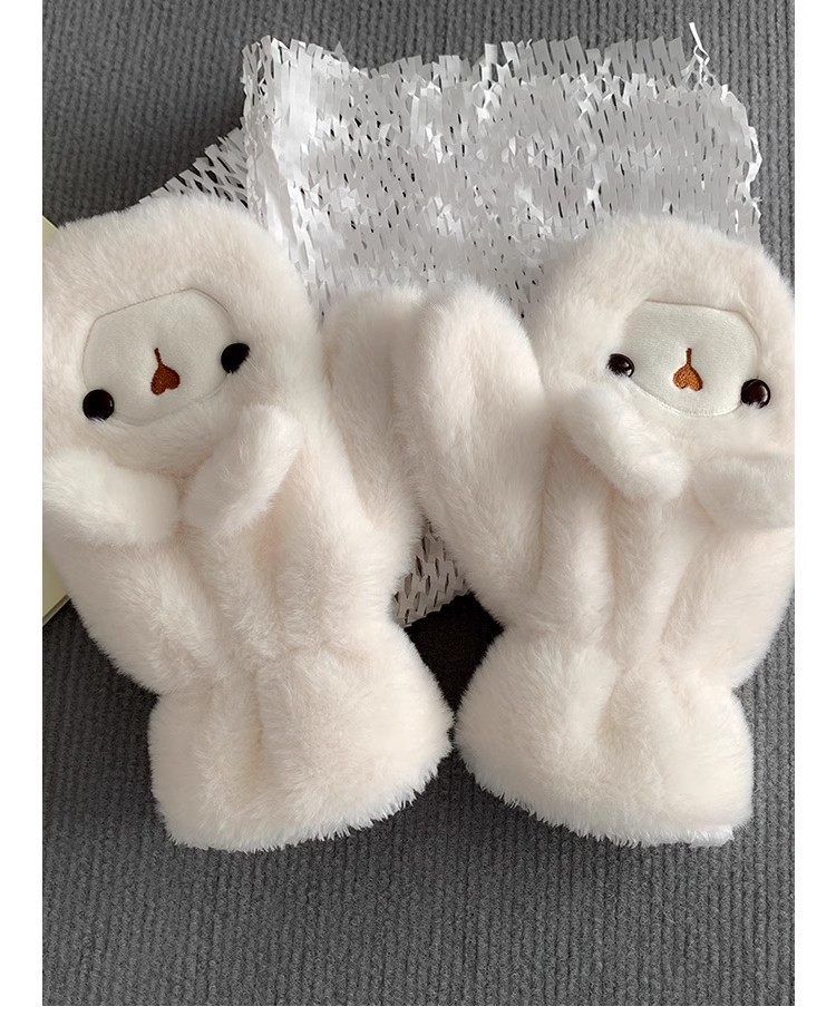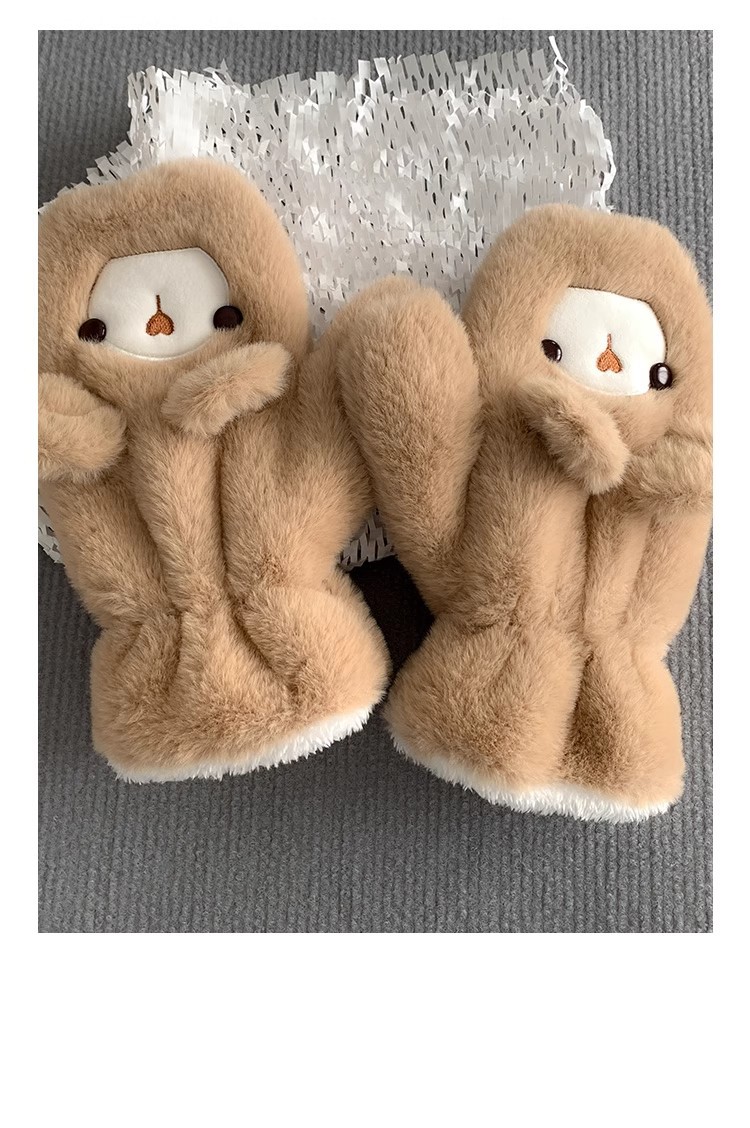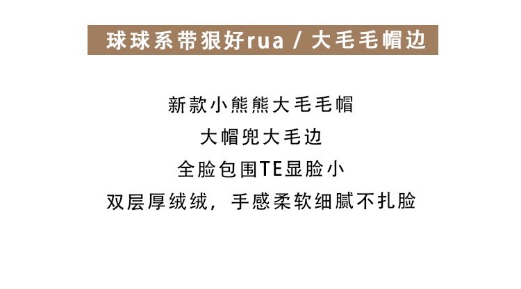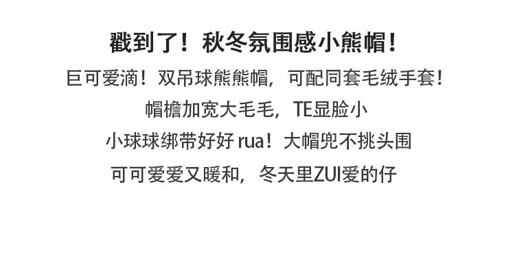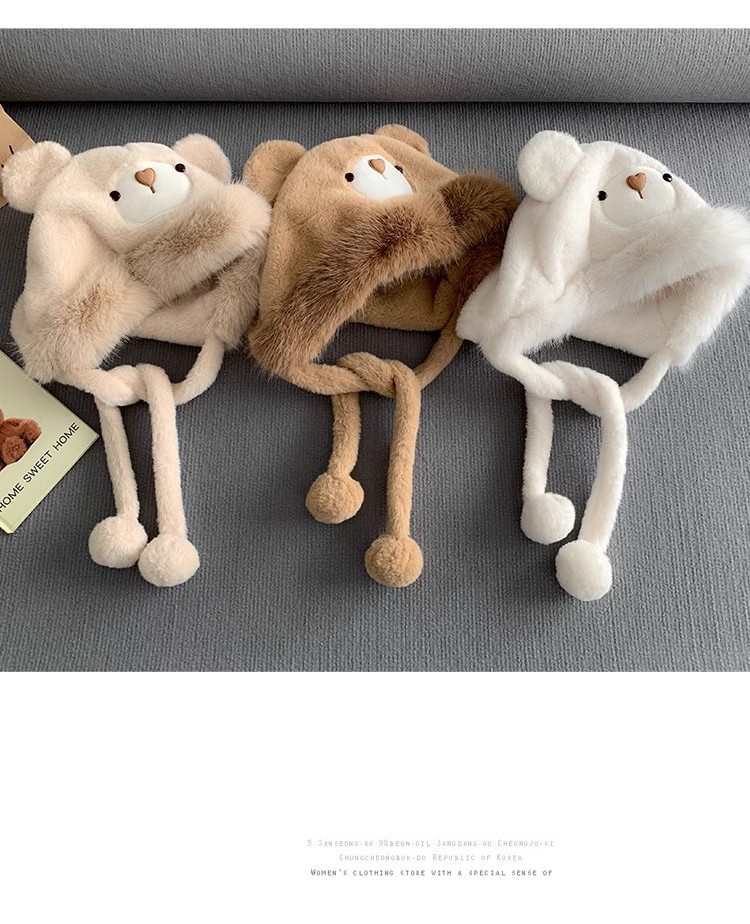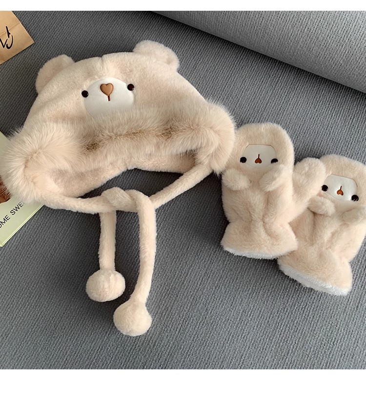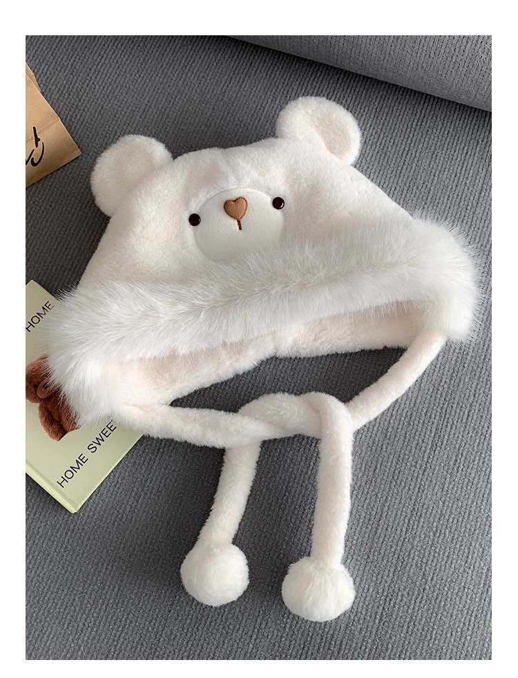 毛绒小熊耳朵帽子女秋冬季加厚保暖护耳套头帽可爱雷锋帽骑车手套