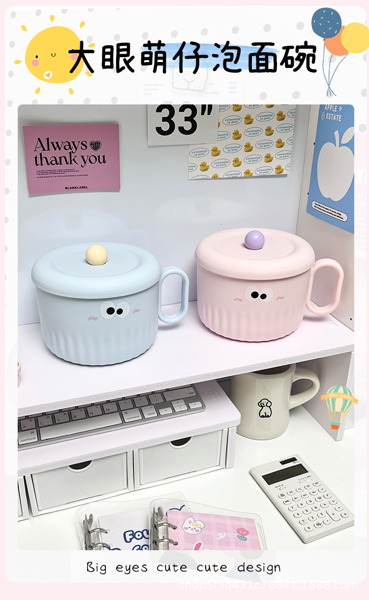 大眼仔可爱304不锈钢泡面碗带盖保温便携学生快餐杯餐具饭盒批发