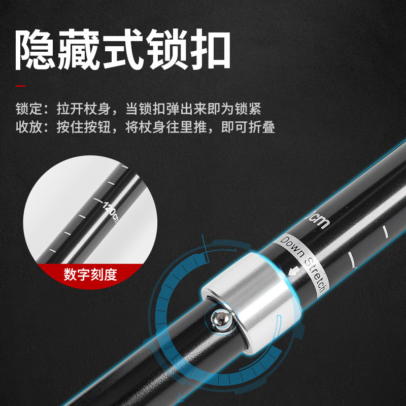 户外登山杖铝合金折叠超轻超短伸缩户外手扙徒步爬山拐棍行山杖