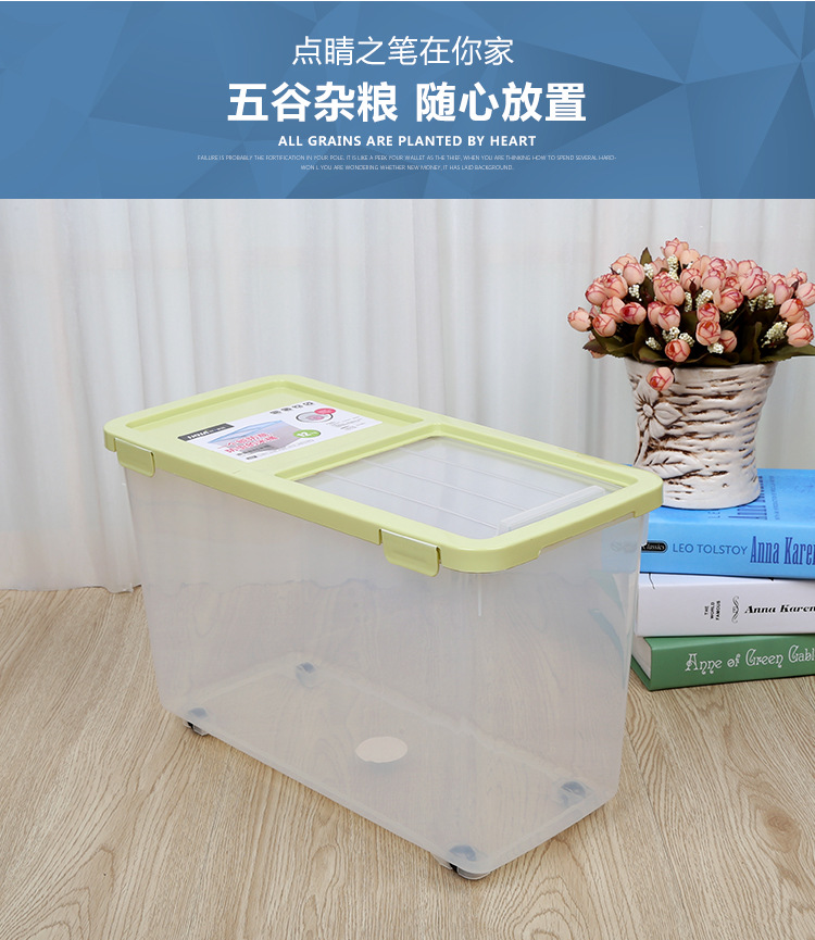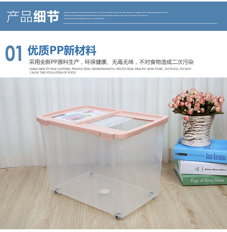 批发家用厨房透明防潮防虫密封滑盖推拉食品级PP储米箱杂粮米桶