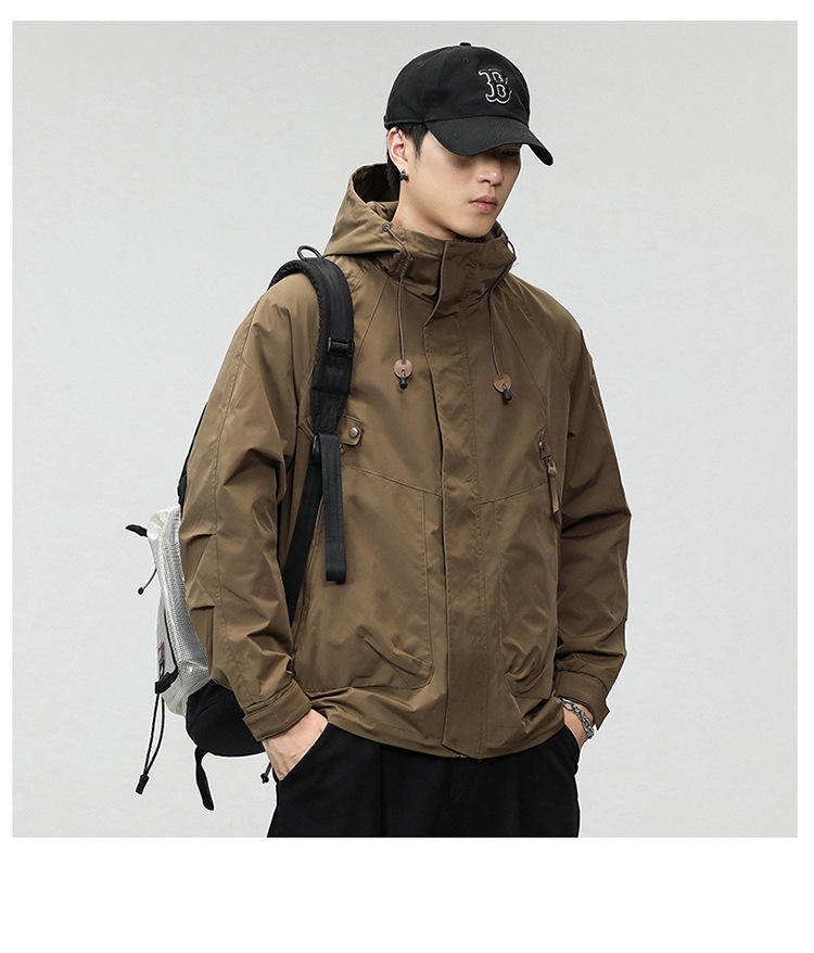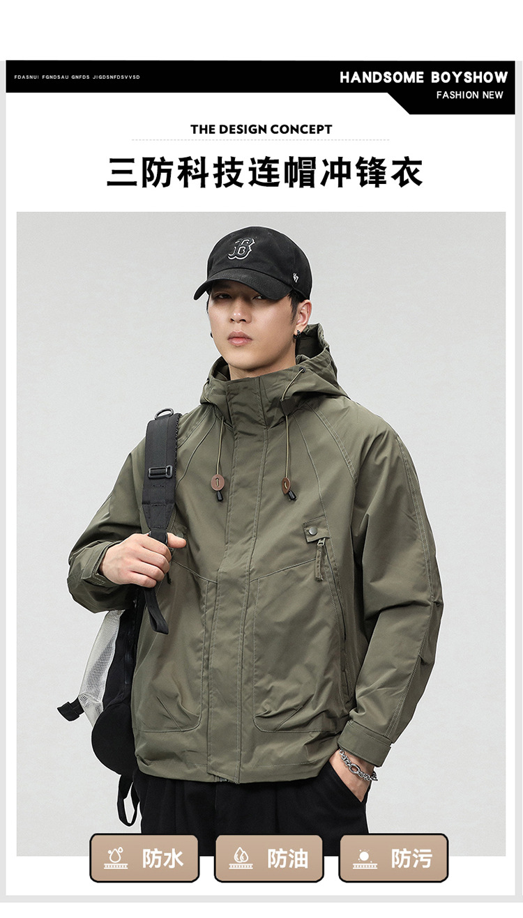 连帽冲锋衣夹克外套男户外防水风衣春秋季2024新款潮牌工装机车服