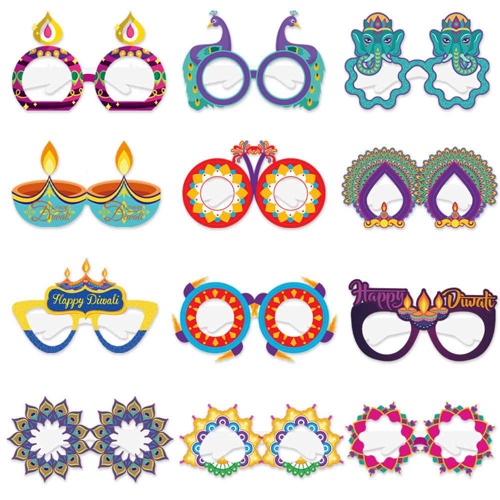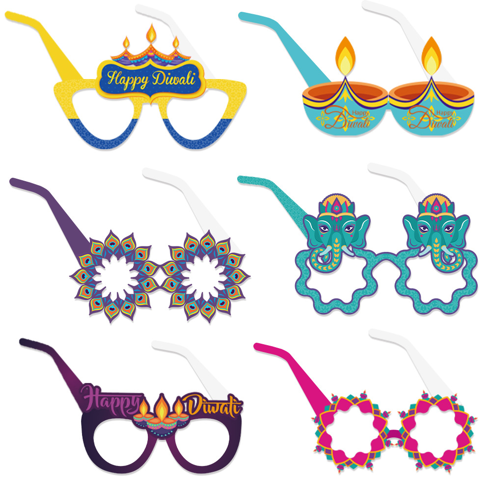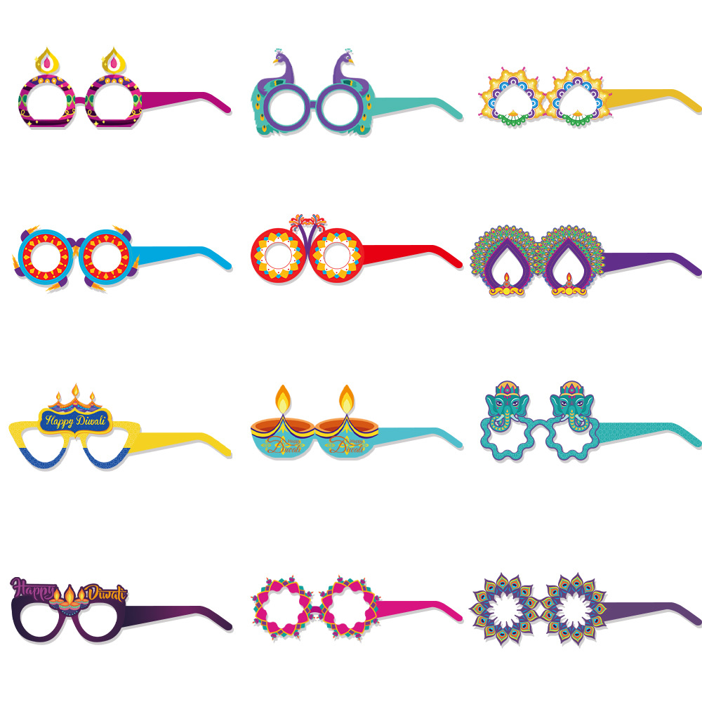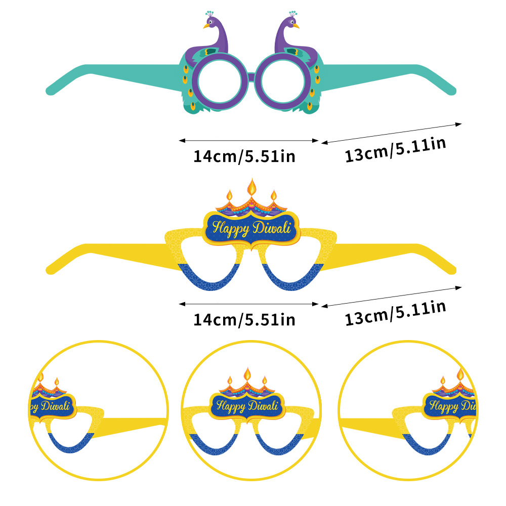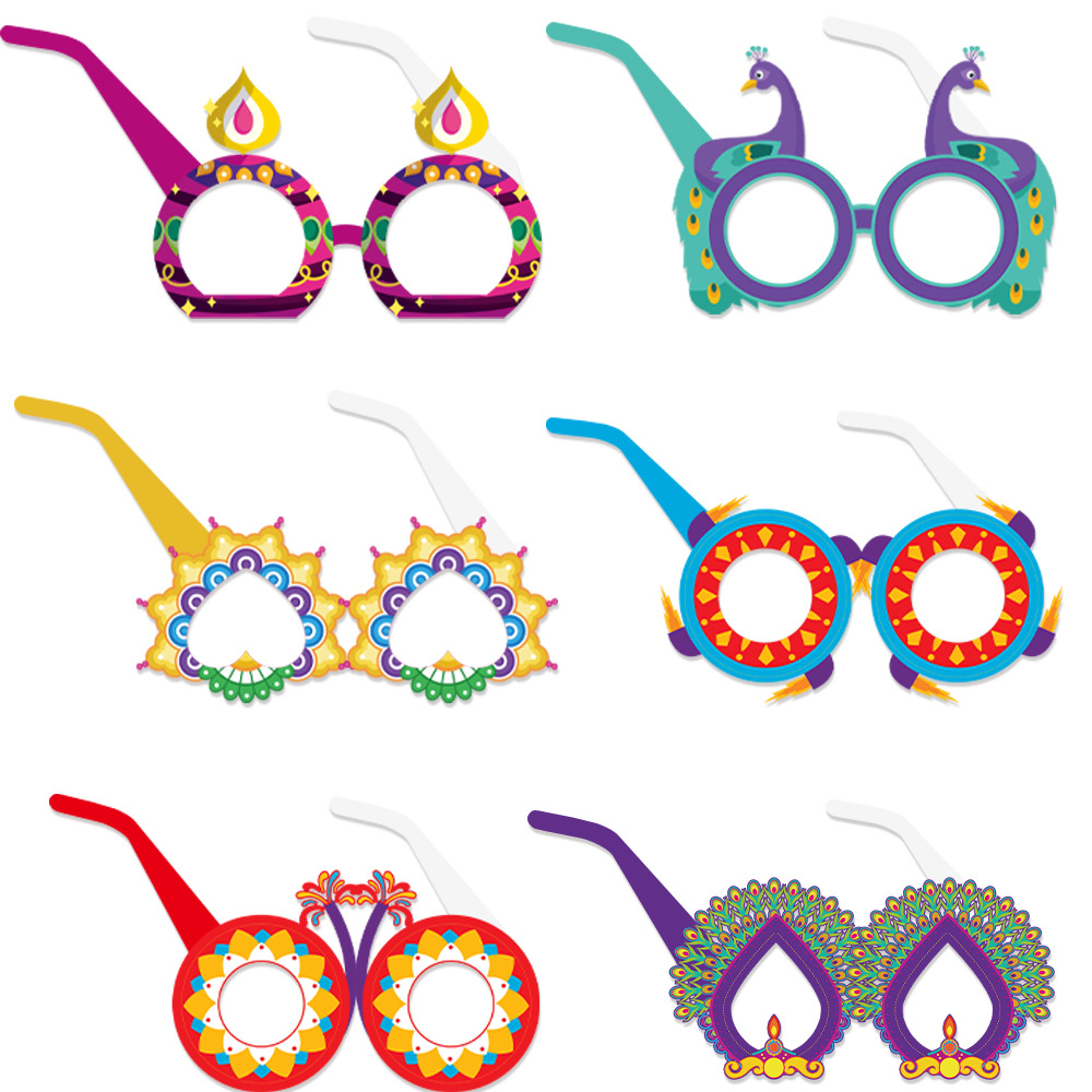 排灯节装饰纸质眼镜儿童大人印度万灯节拍照道具派对用品