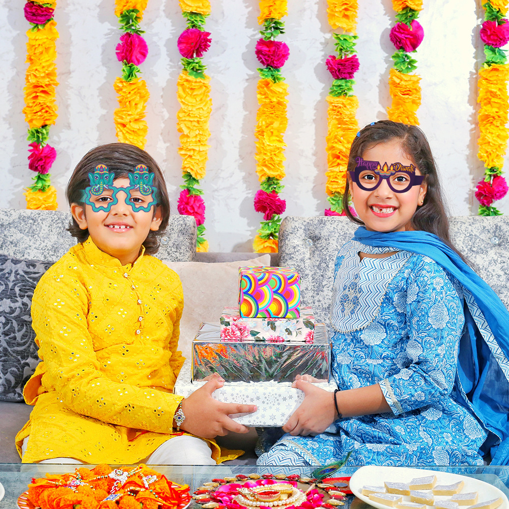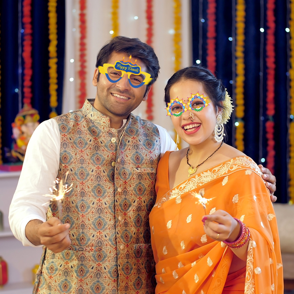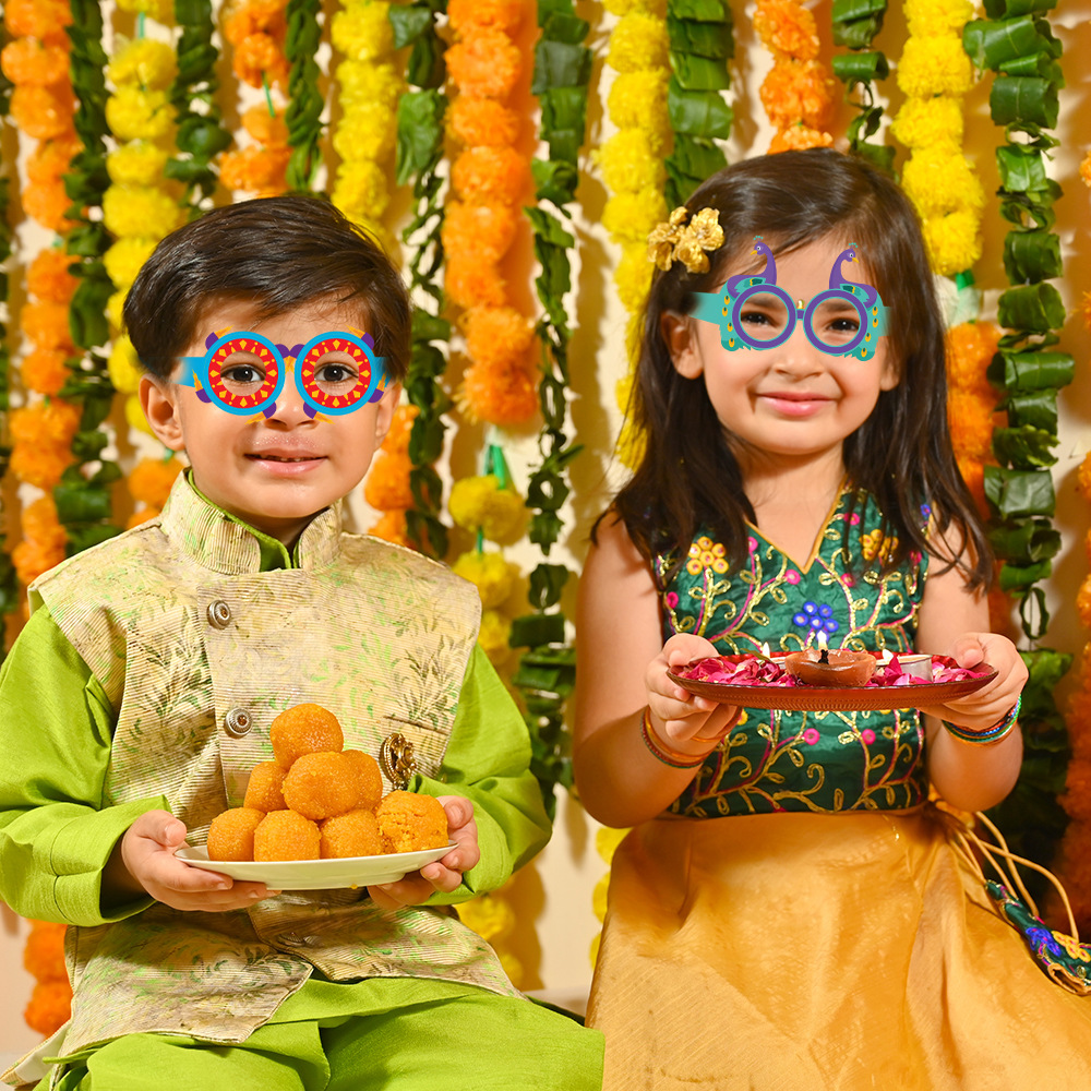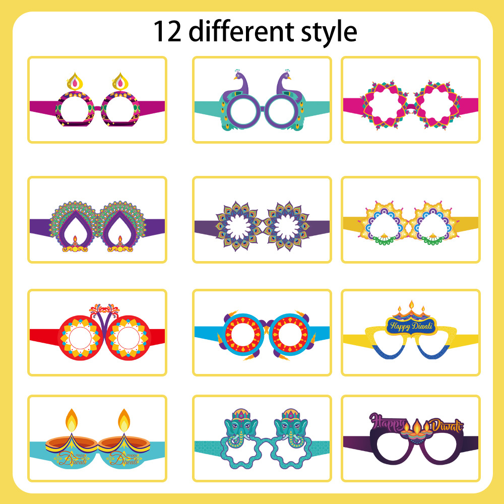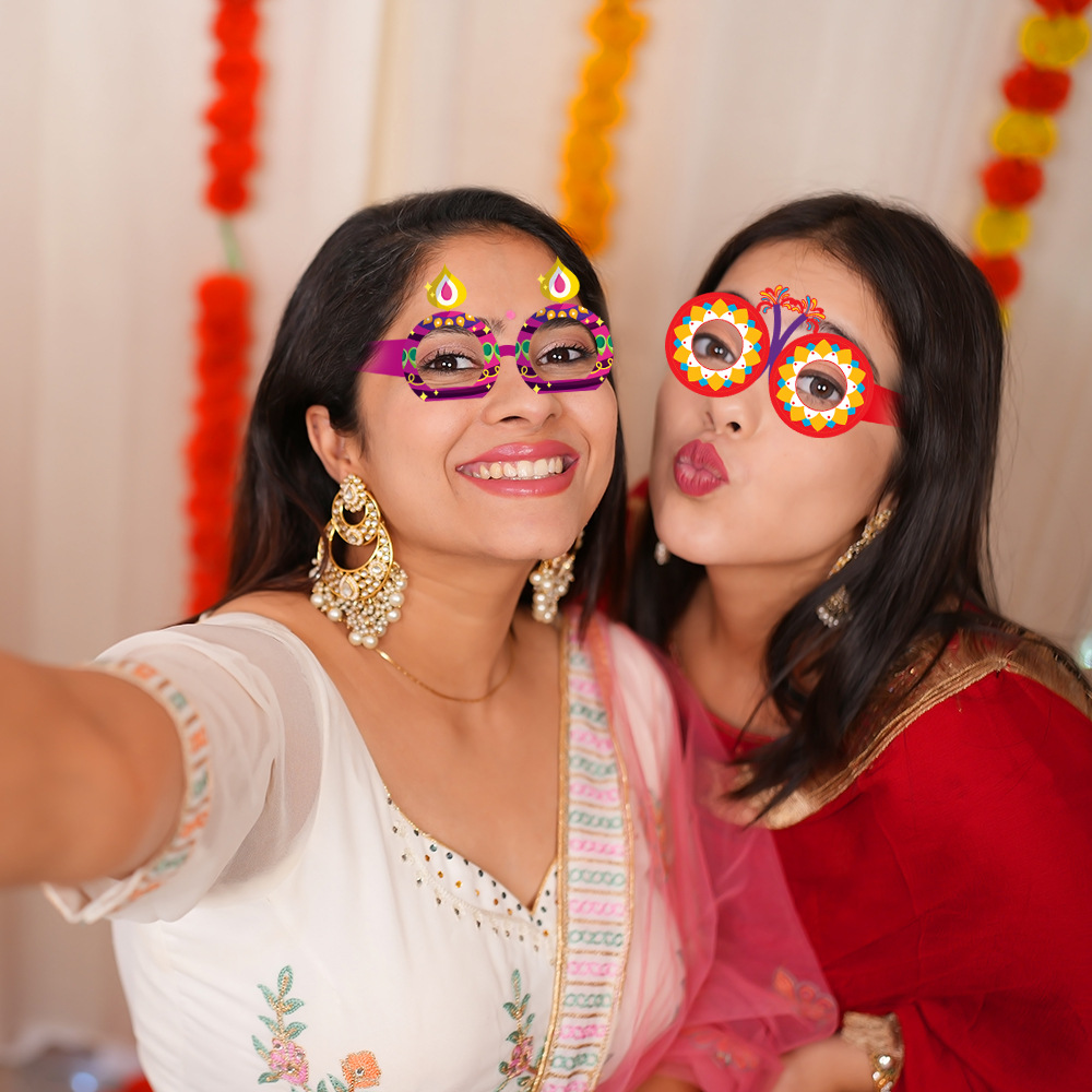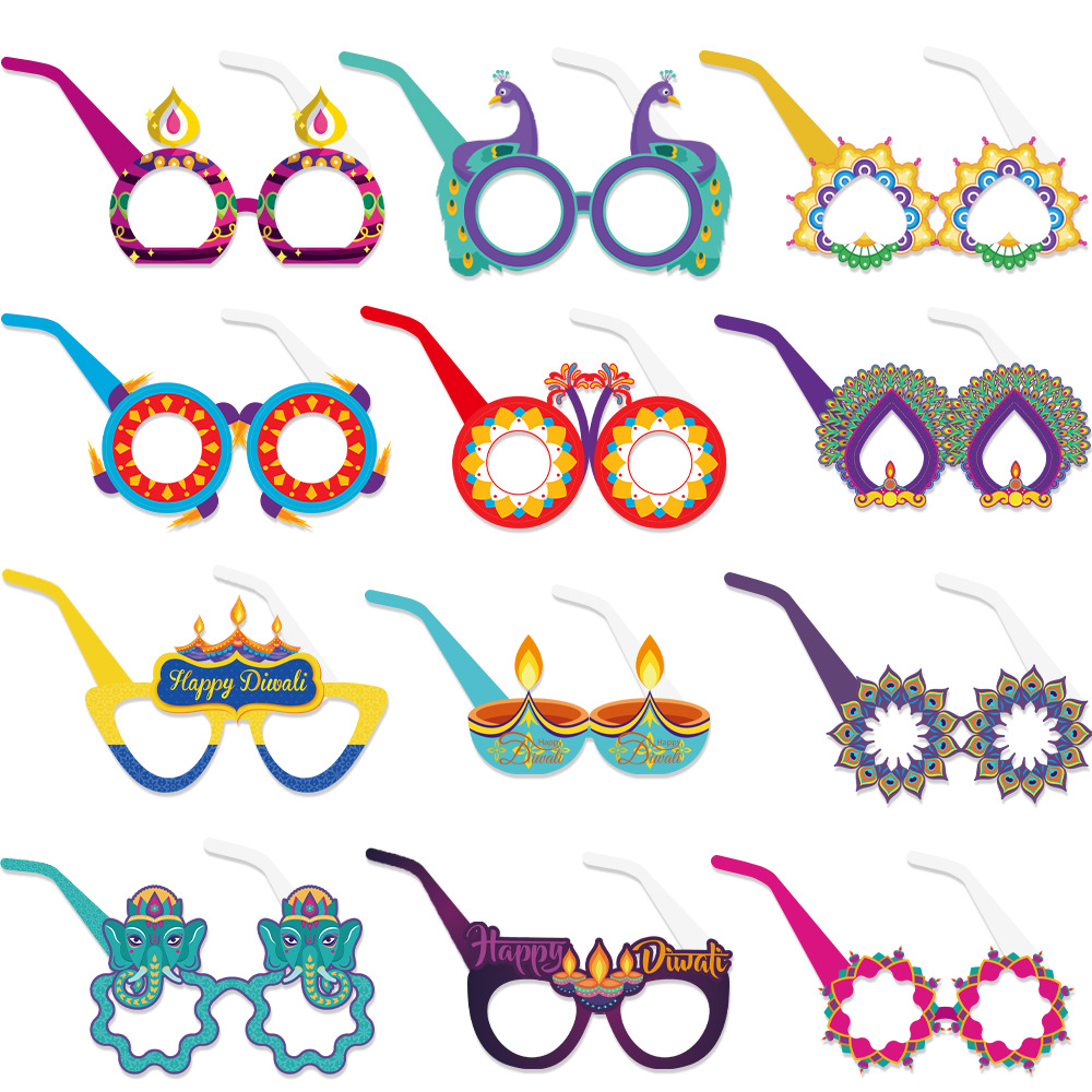 排灯节装饰纸质眼镜儿童大人印度万灯节拍照道具派对用品