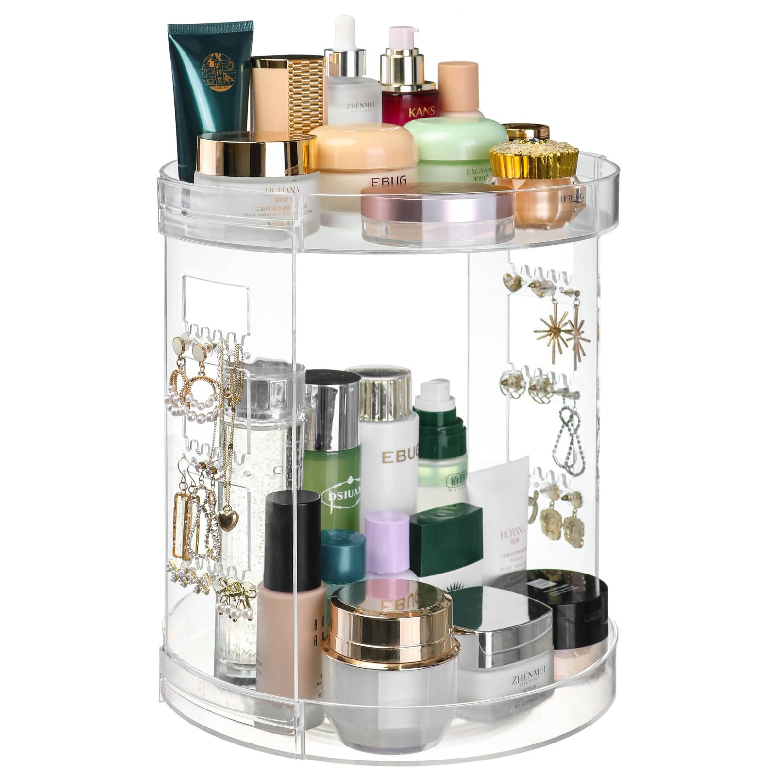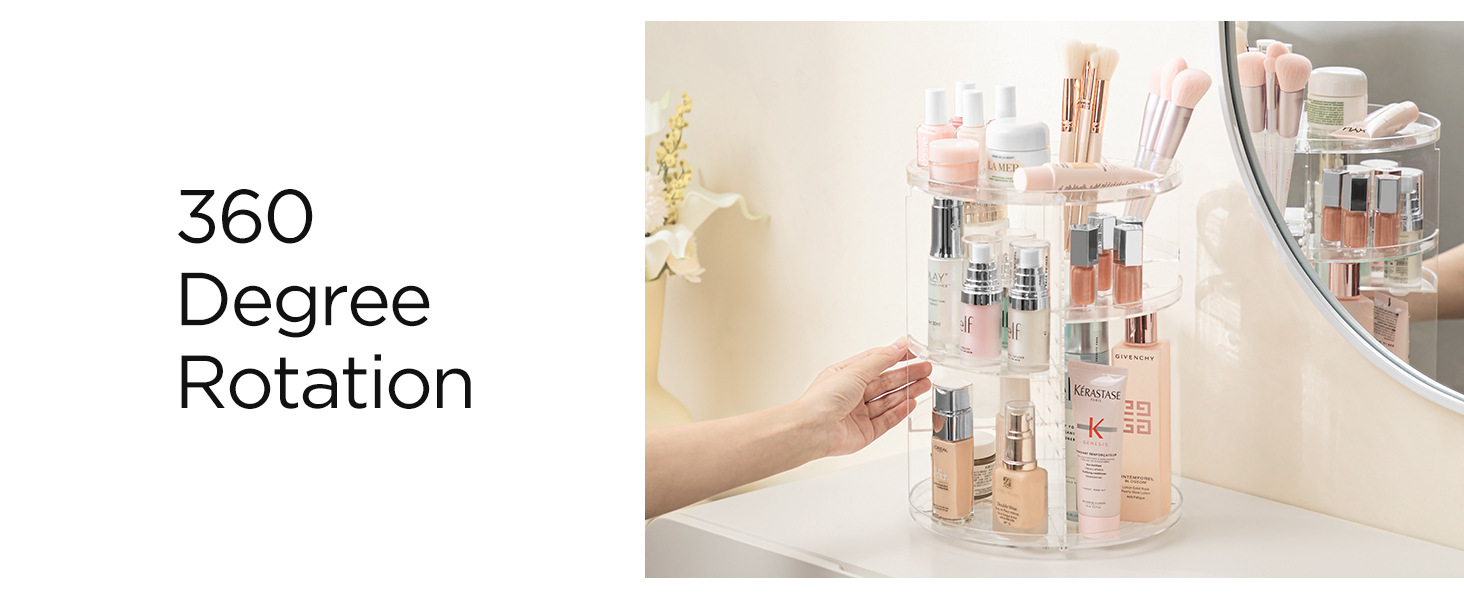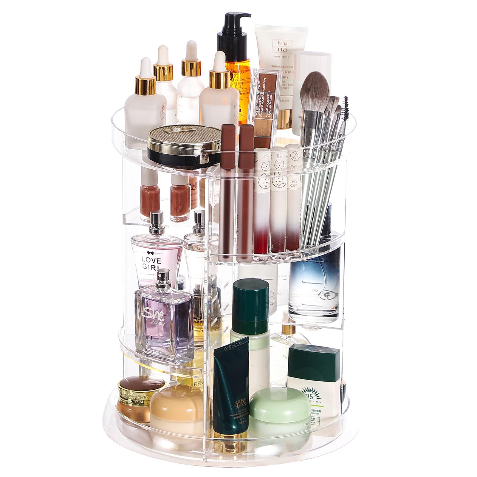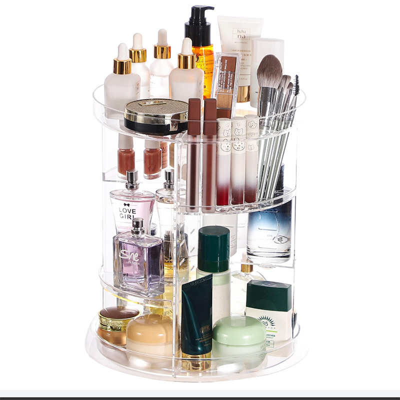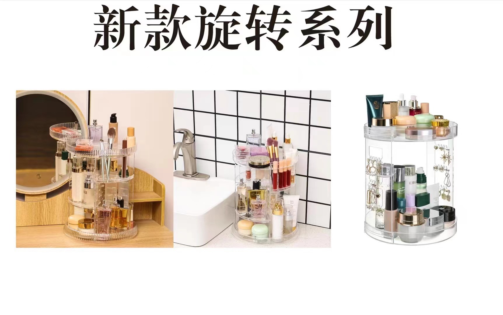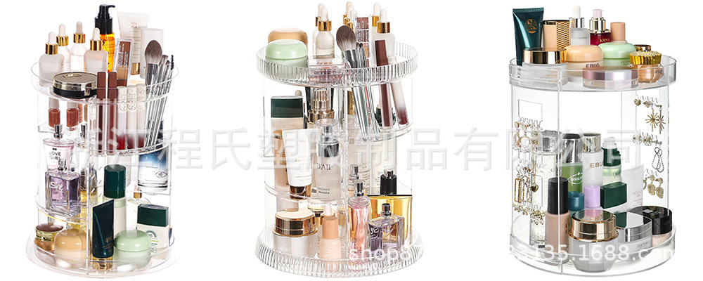 跨境热销360旋转收纳架透明桌面梳妆台化妆刷护肤品护肤品分类盒