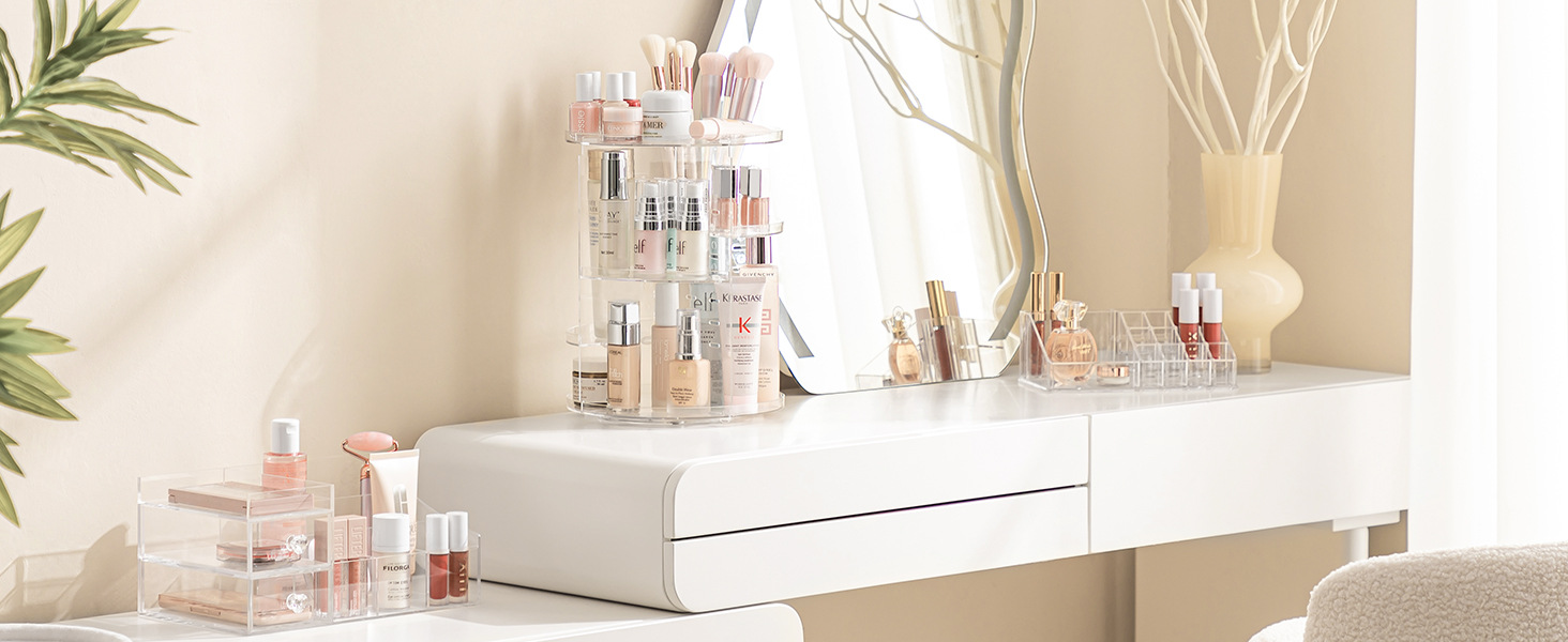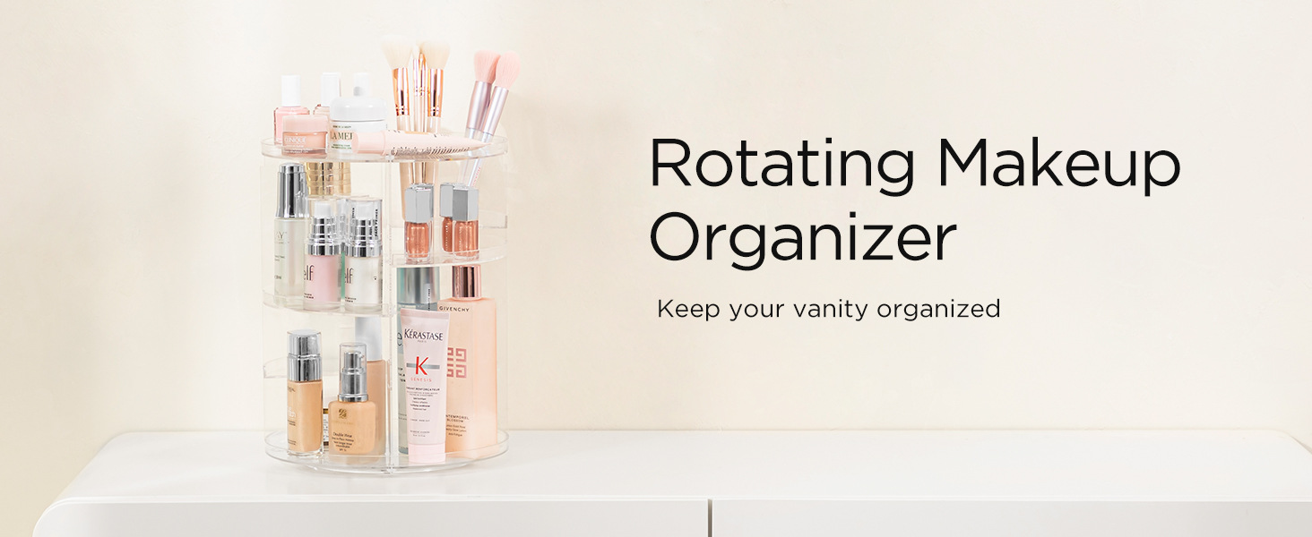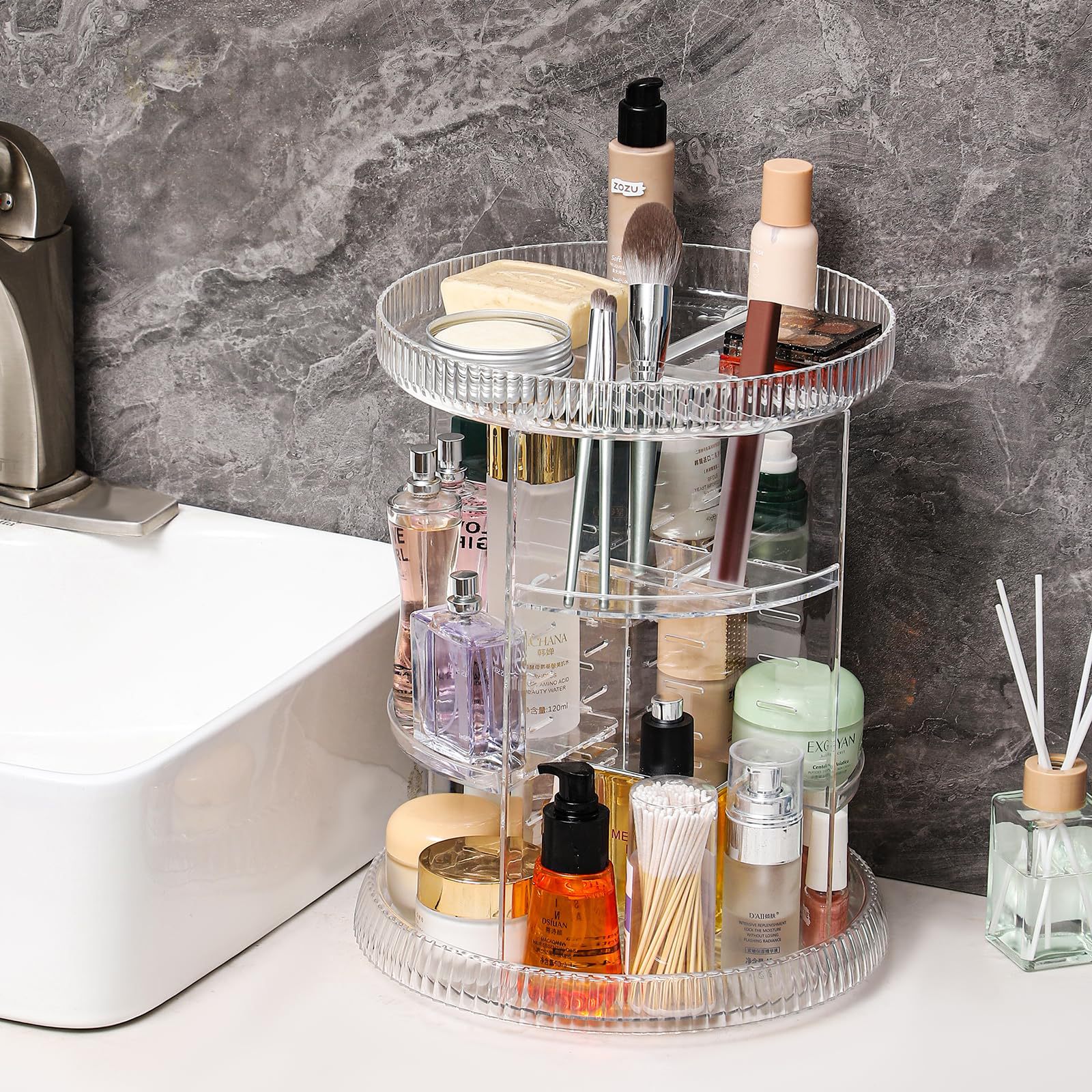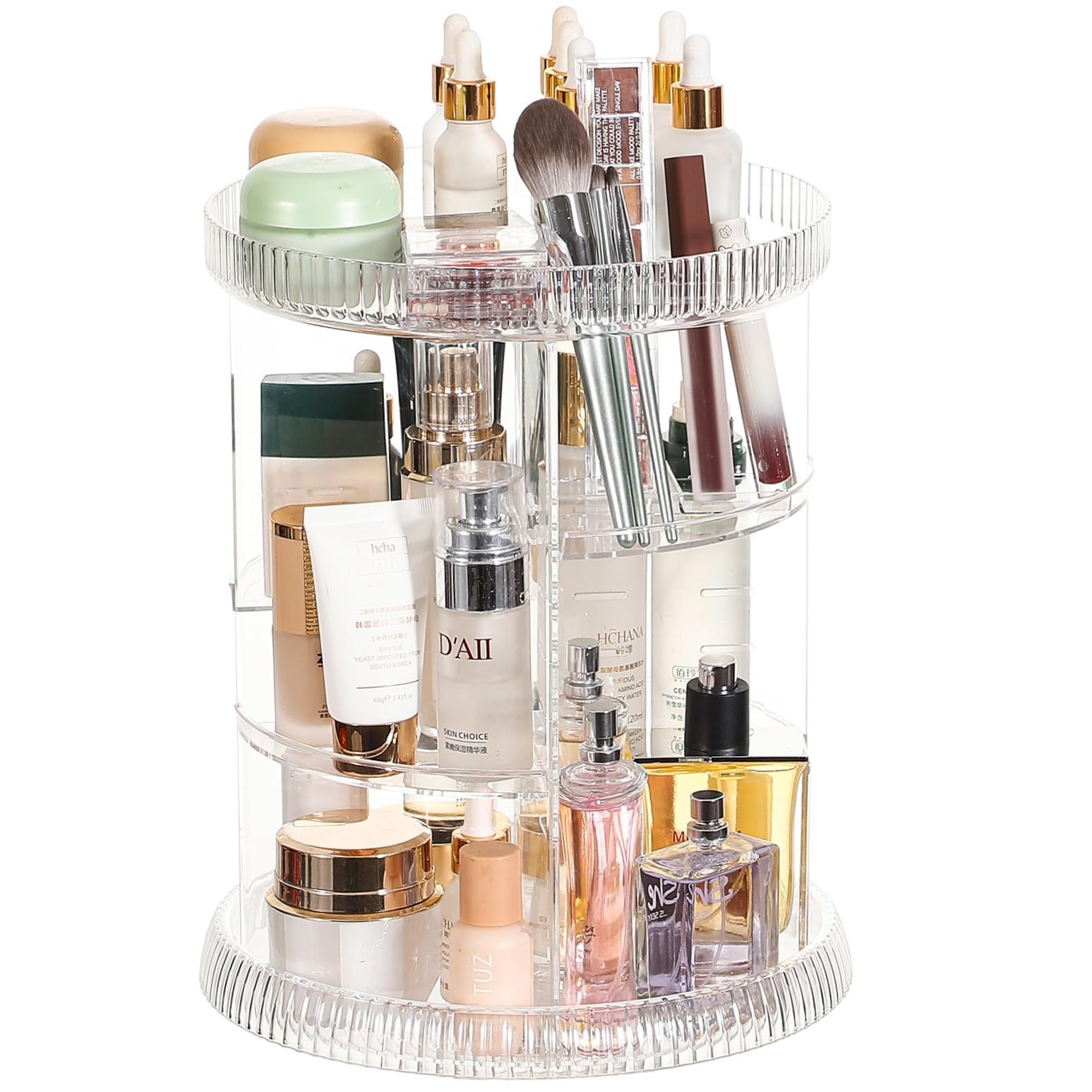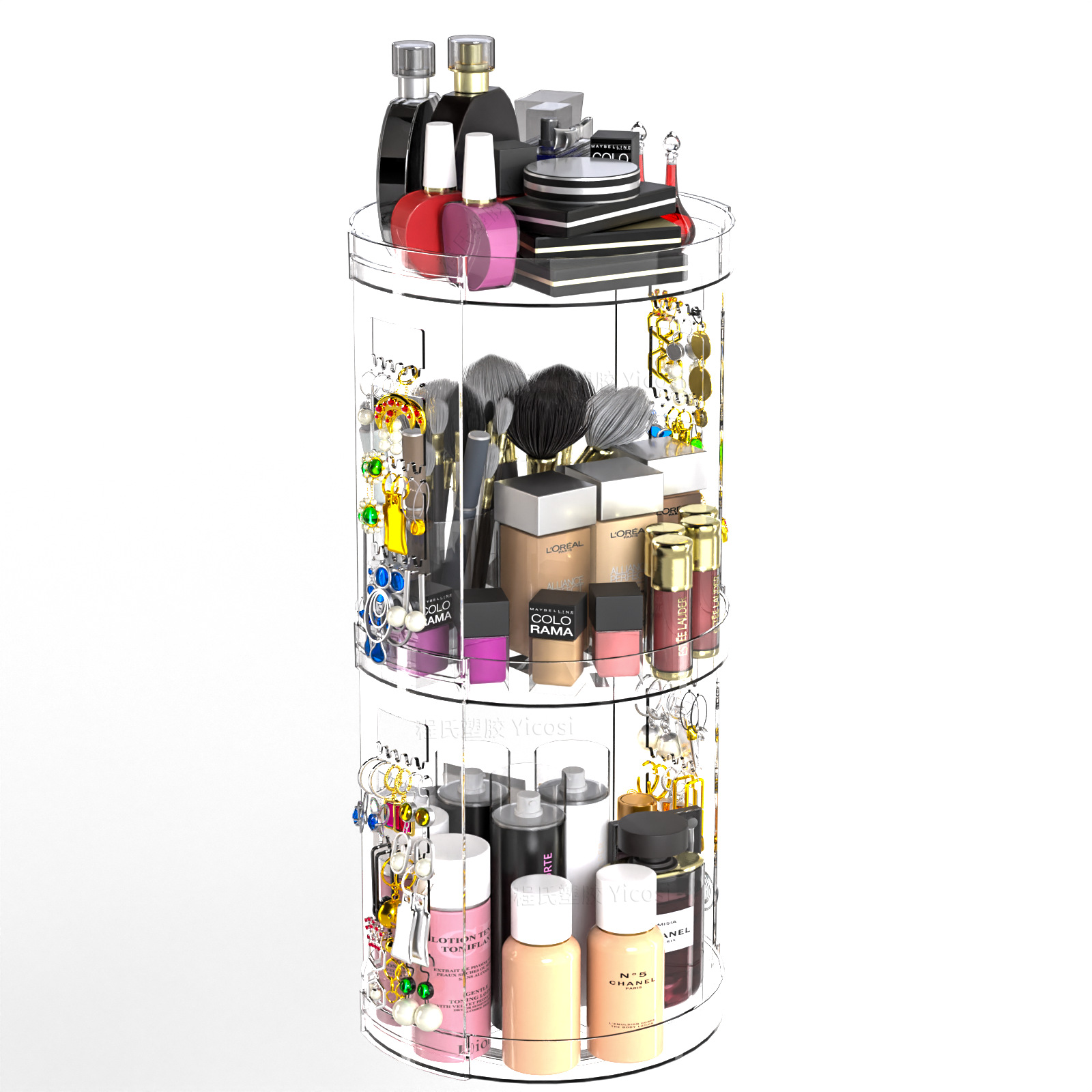 跨境热销360旋转收纳架透明桌面梳妆台化妆刷护肤品护肤品分类盒