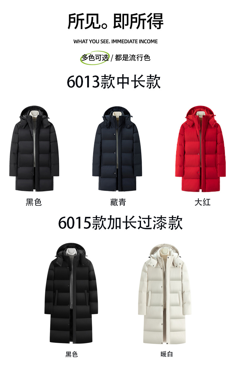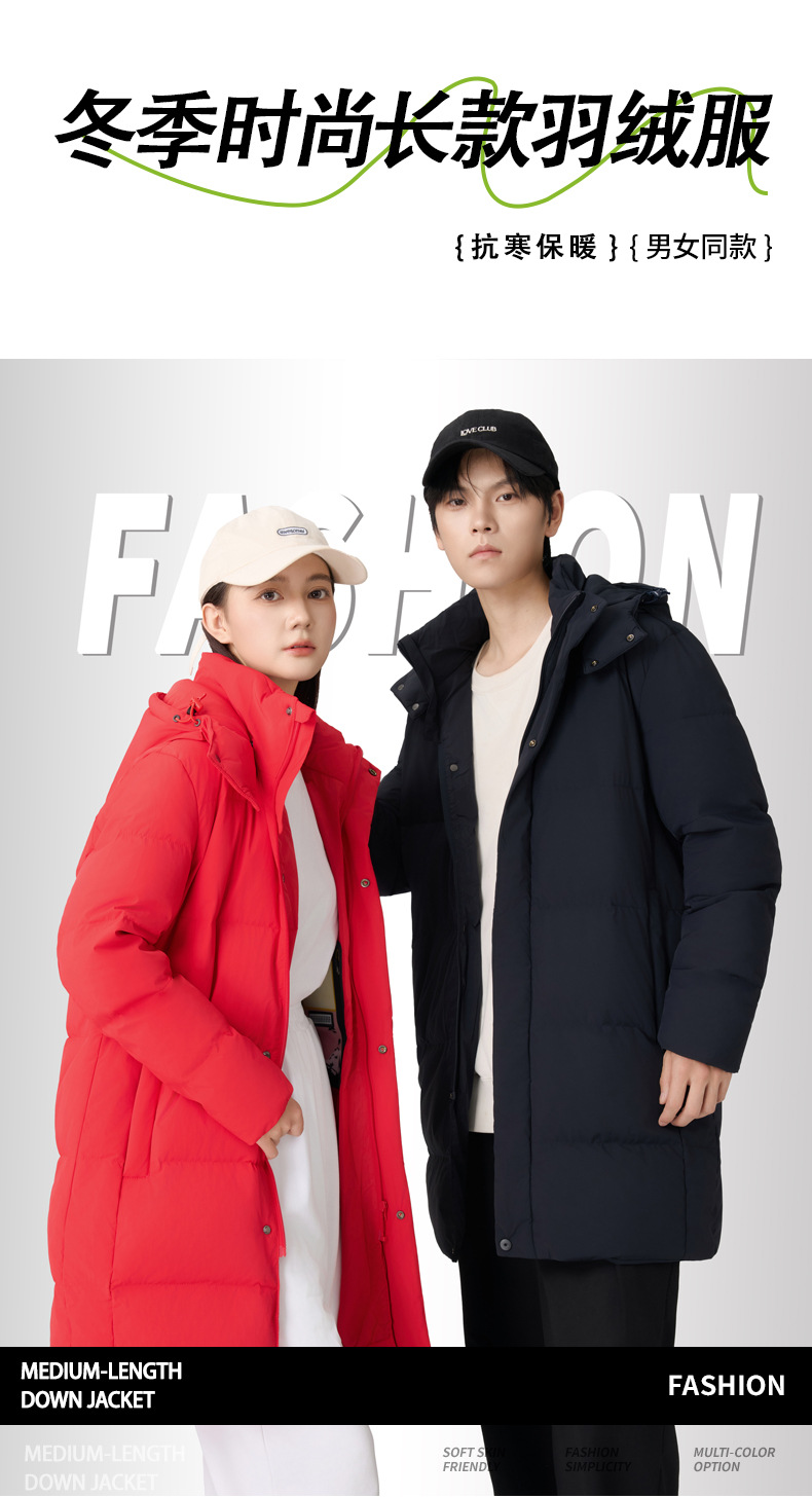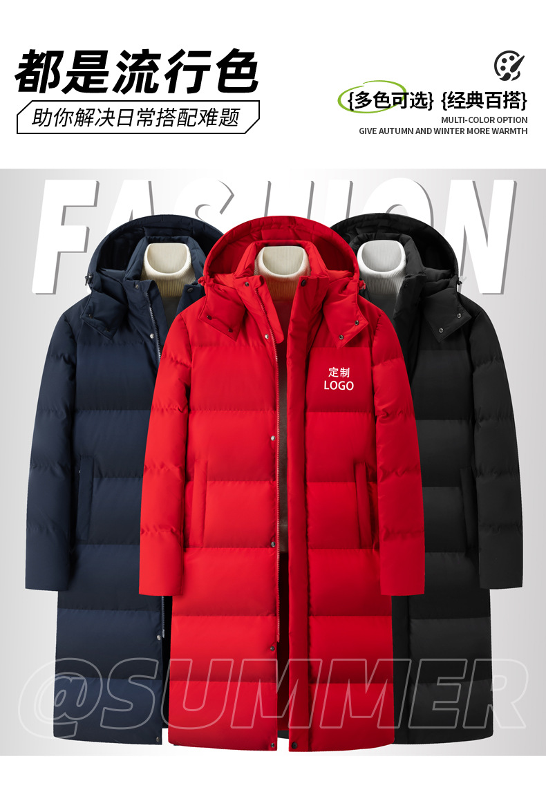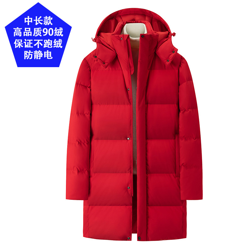 中长款羽绒服定制LOGO鸭绒保暖过膝不跑绒加厚冬训中戏长款羽绒服